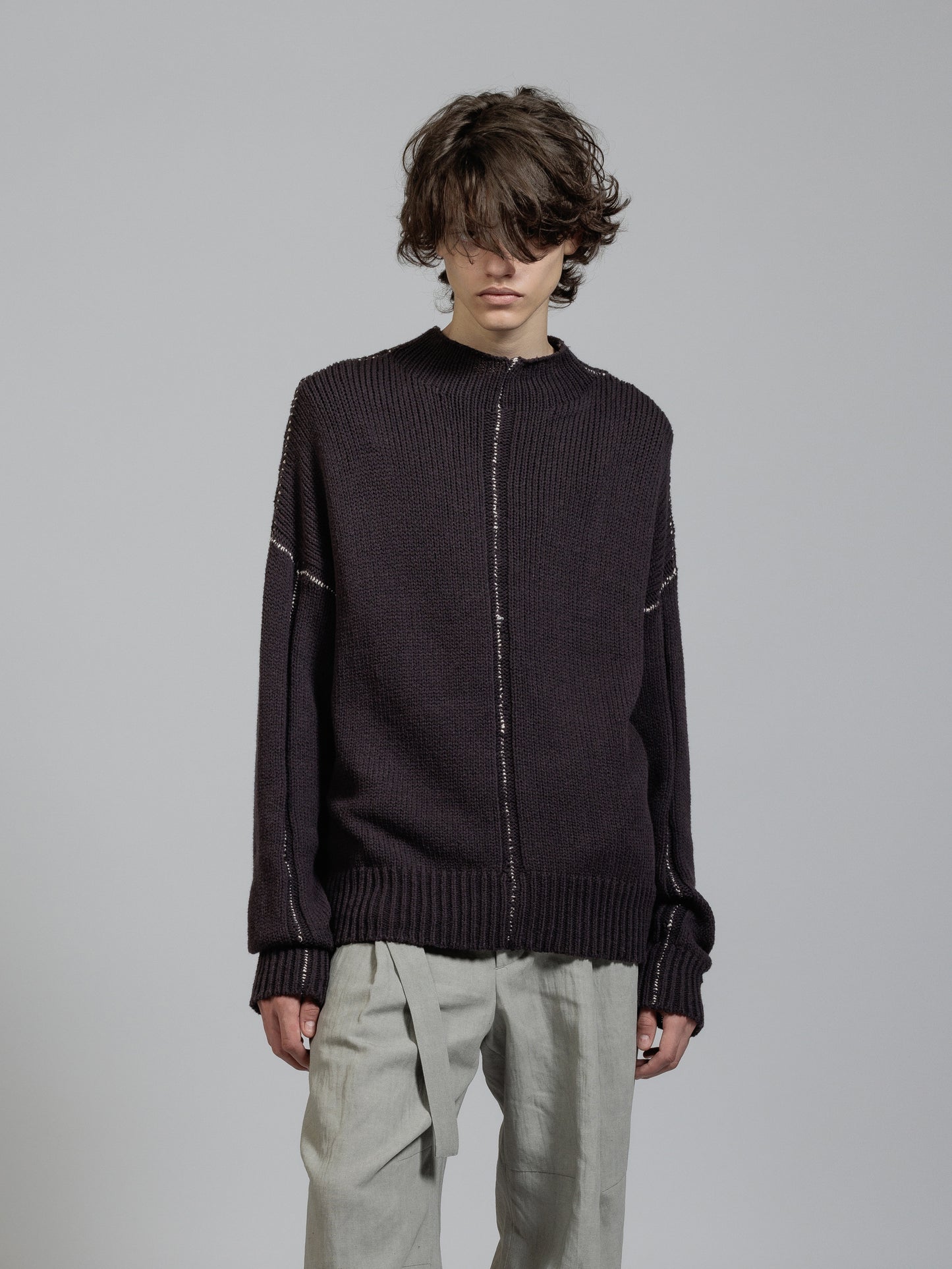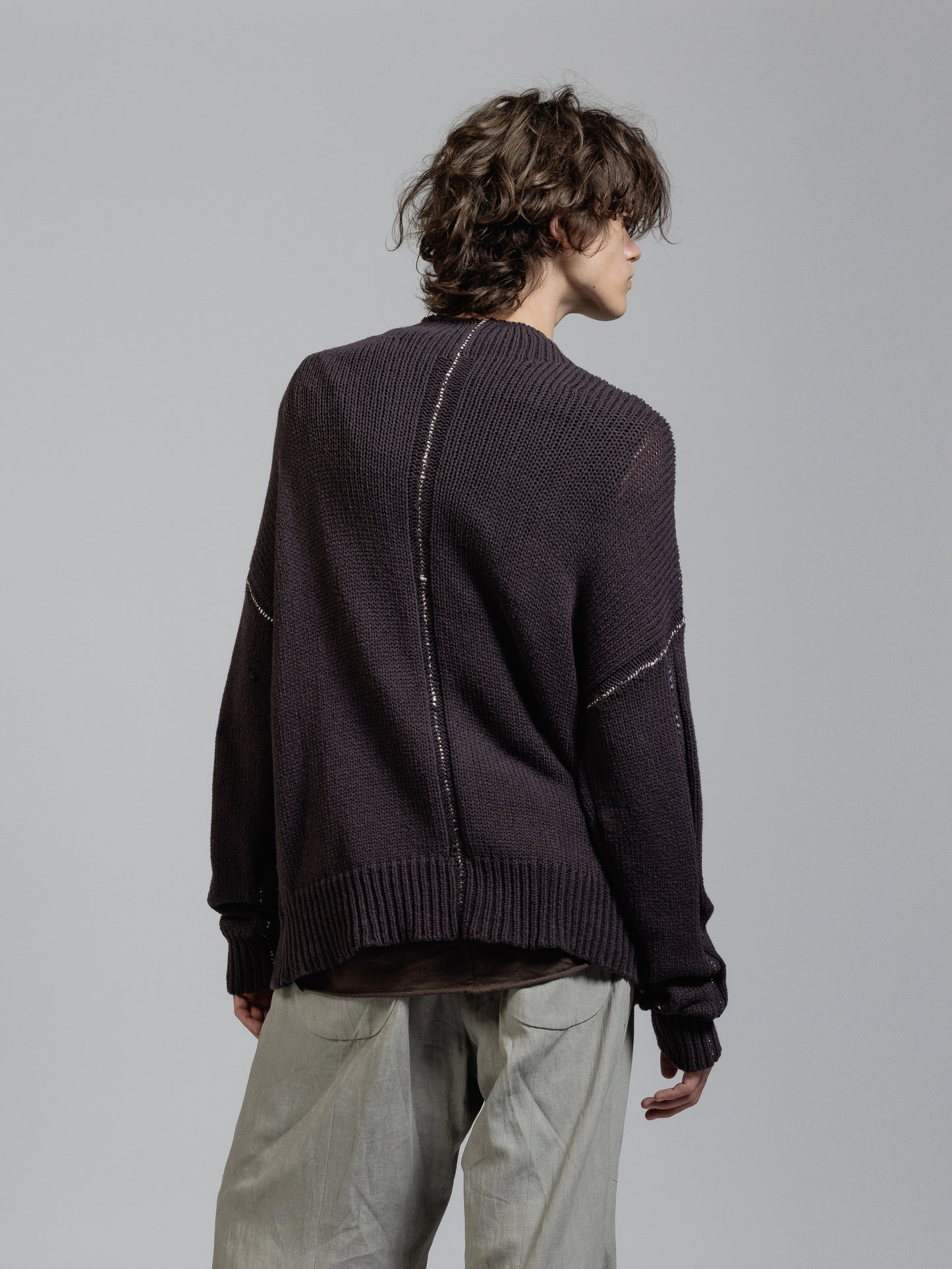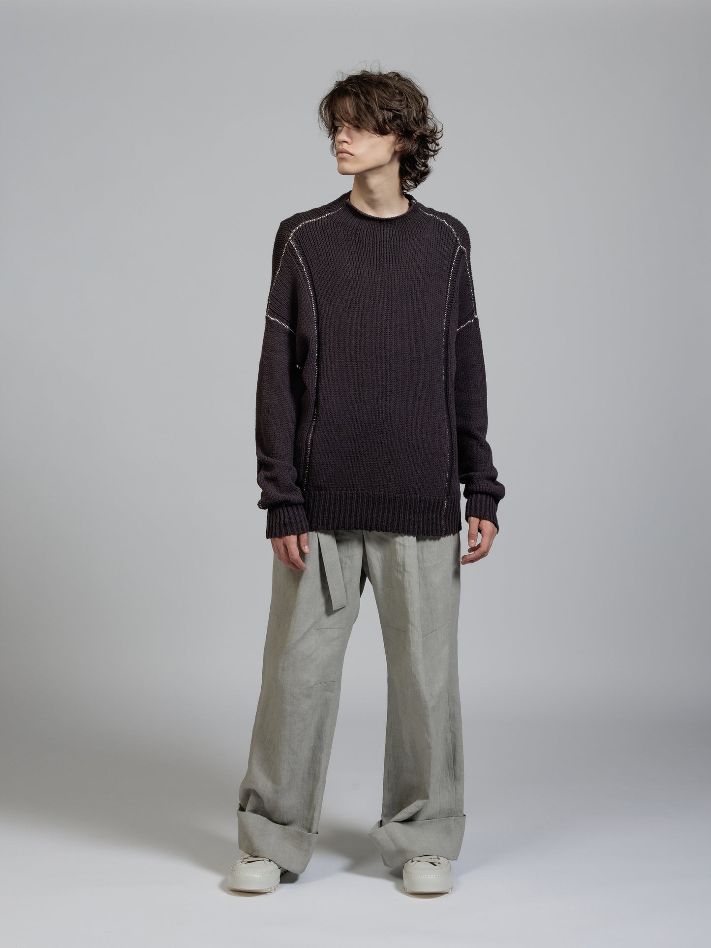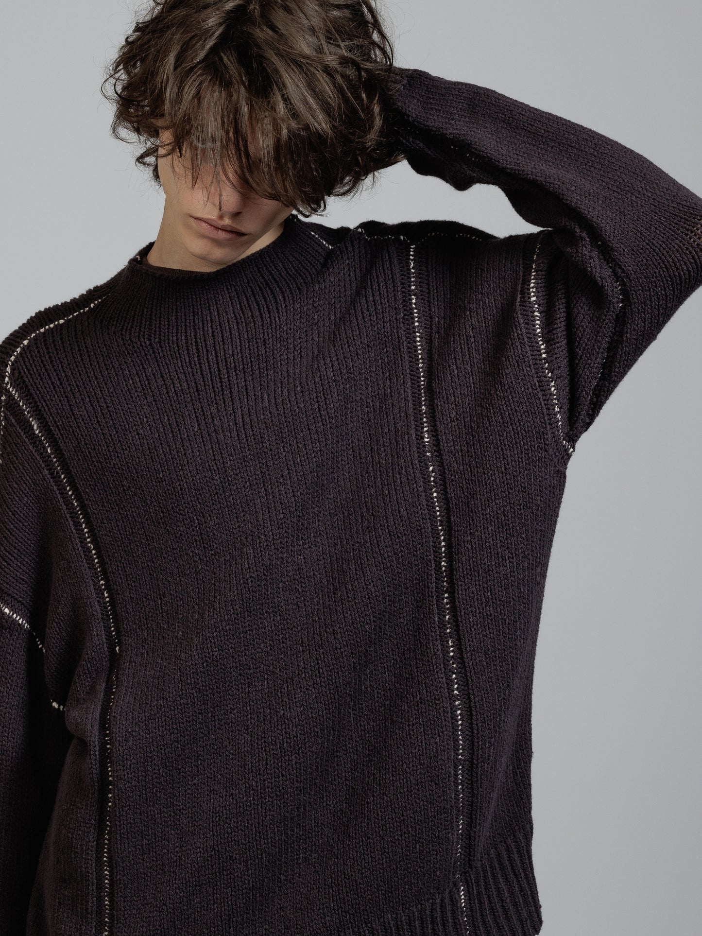 ややゆるめに編まれたコットンナイロンのプルオーバーニット。