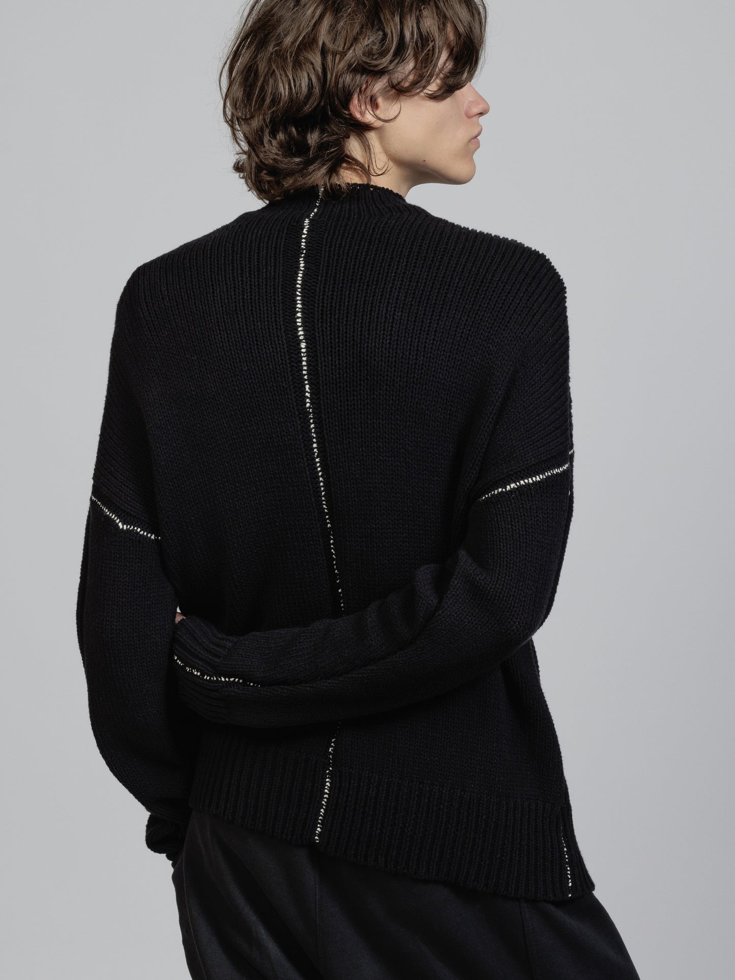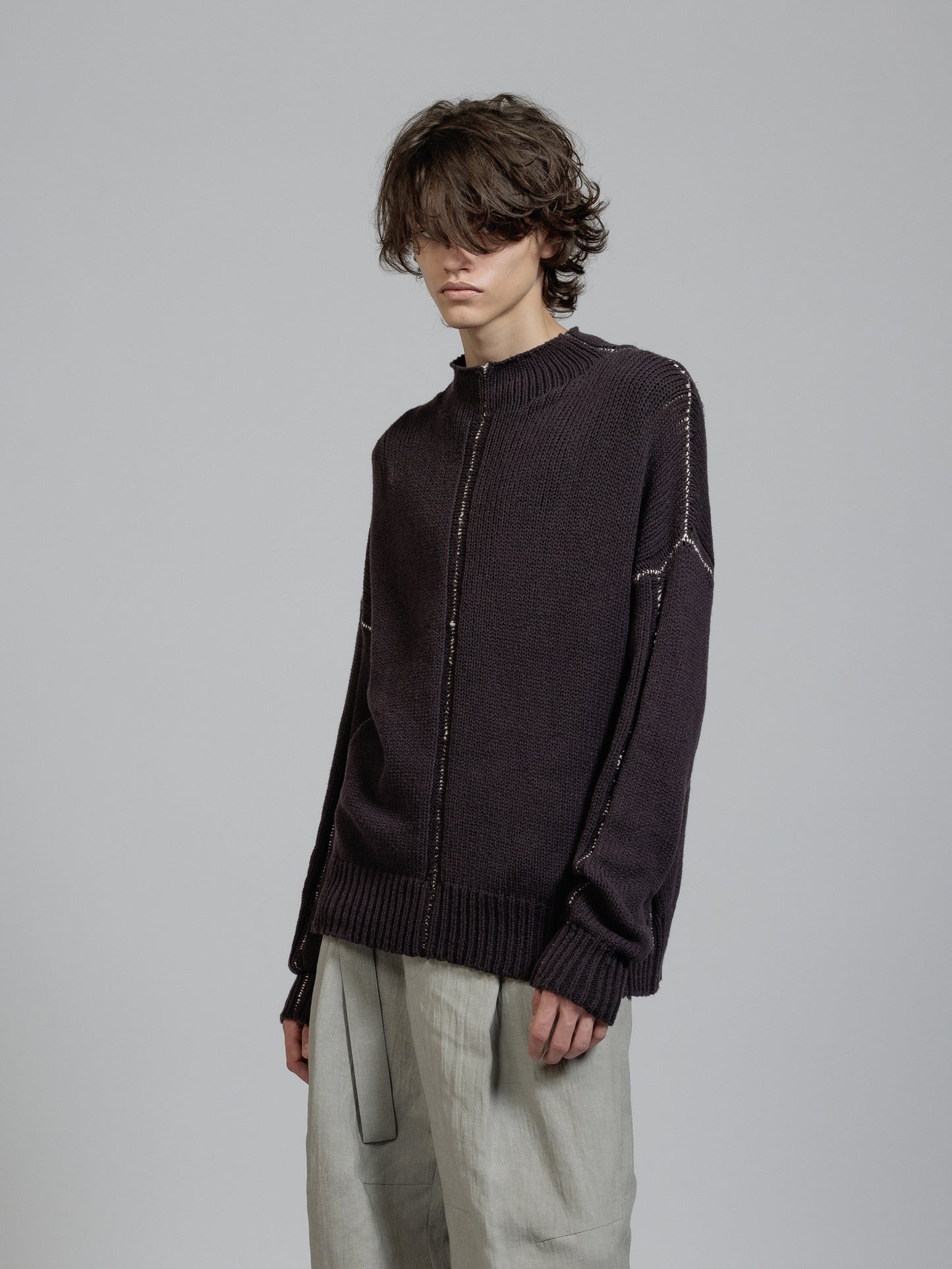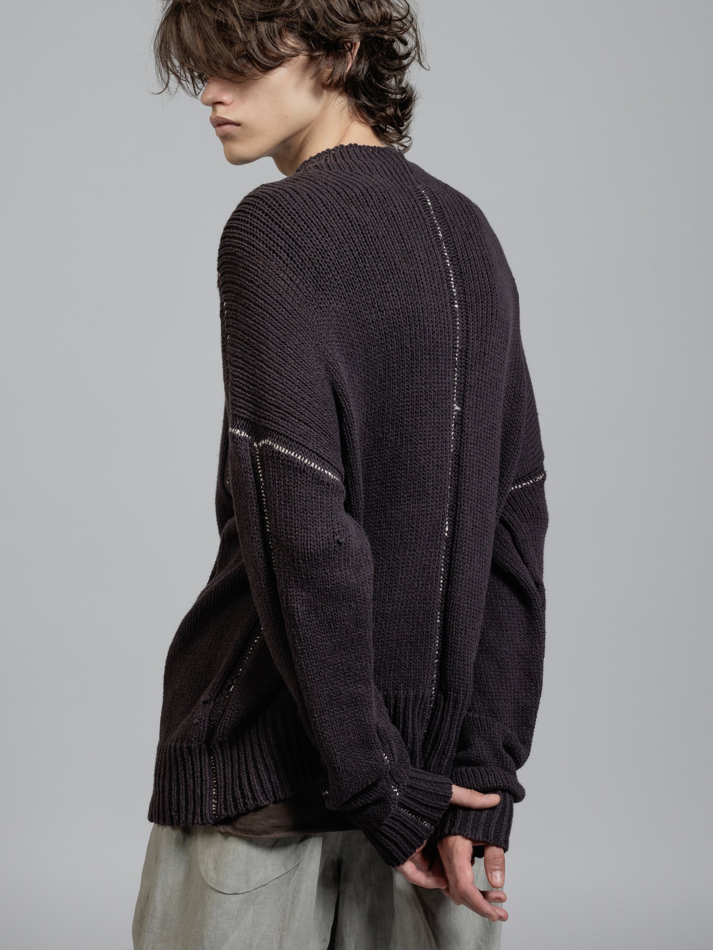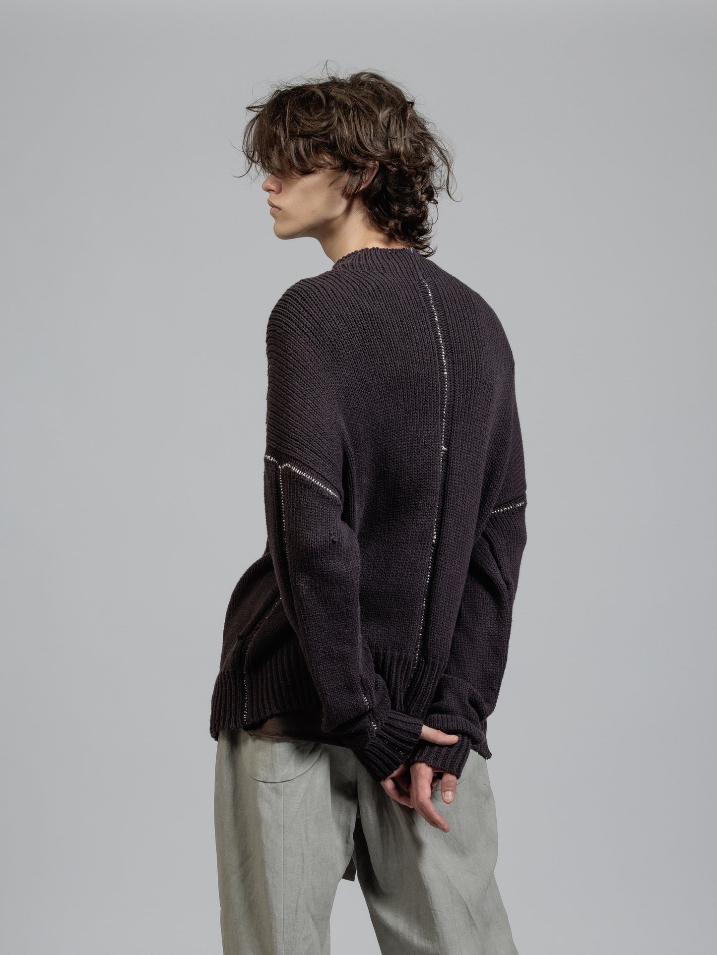 ややゆるめに編まれたコットンナイロンのプルオーバーニット。