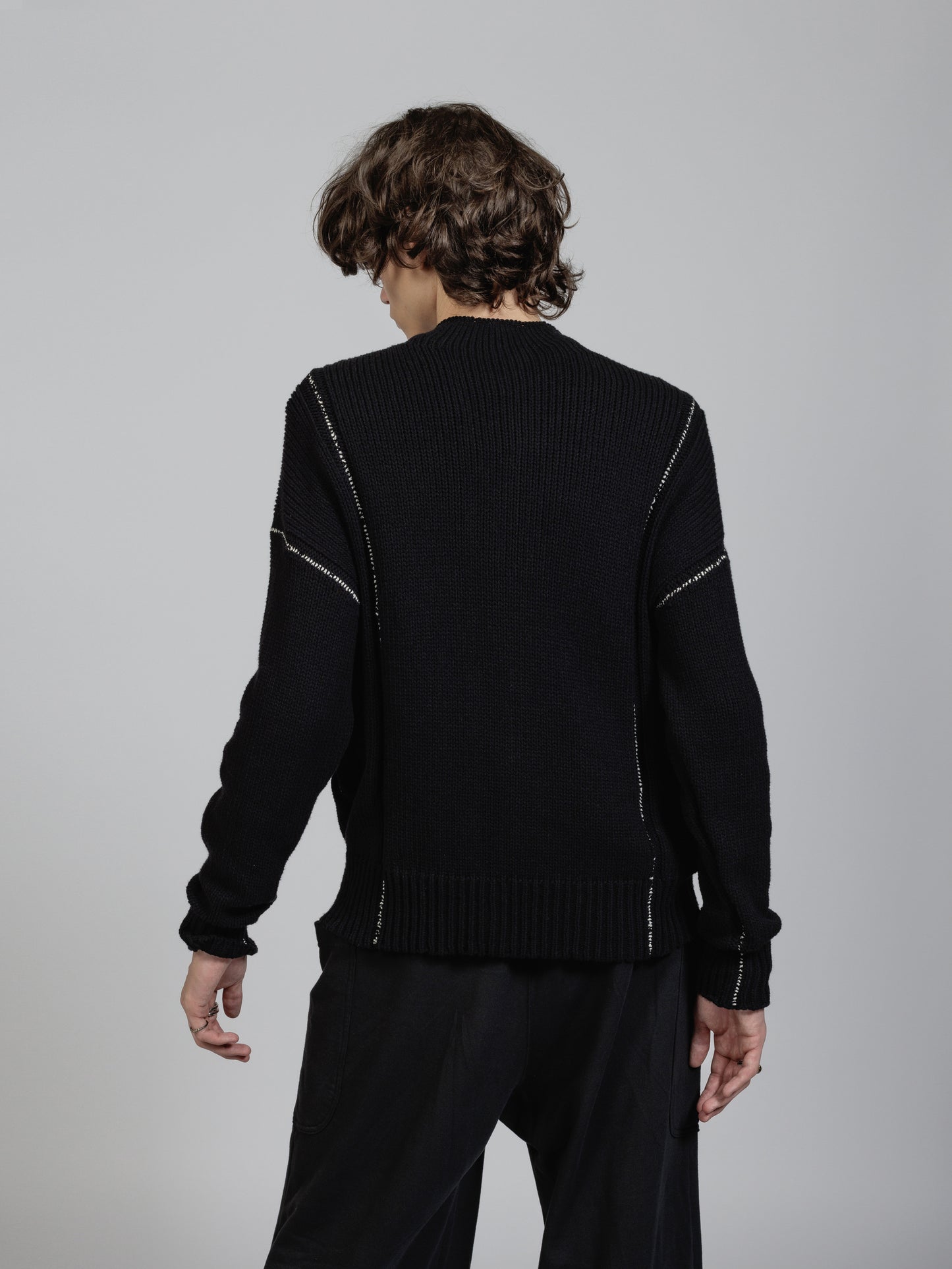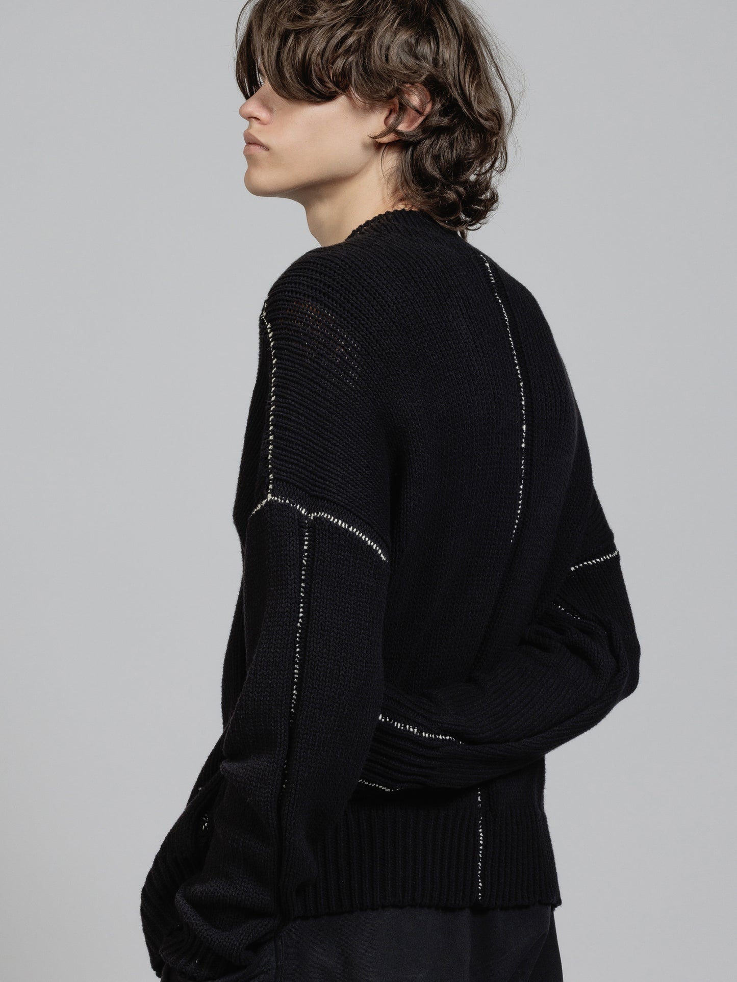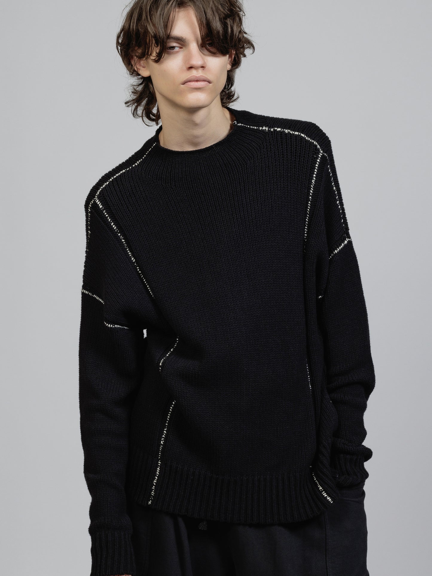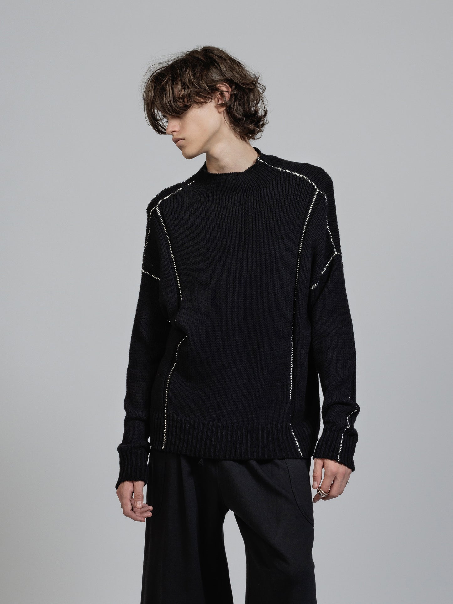 ややゆるめに編まれたコットンナイロンのプルオーバーニット。