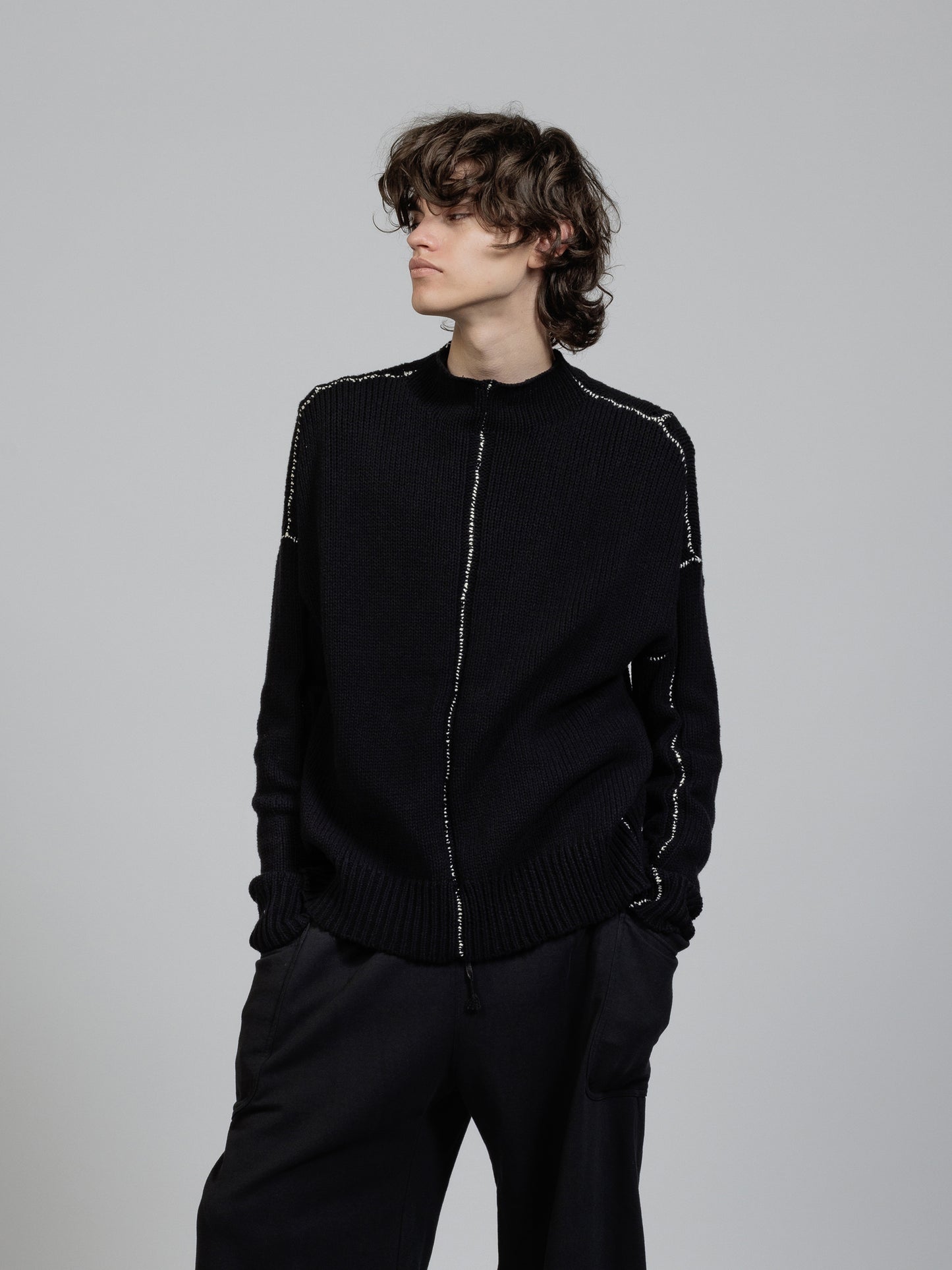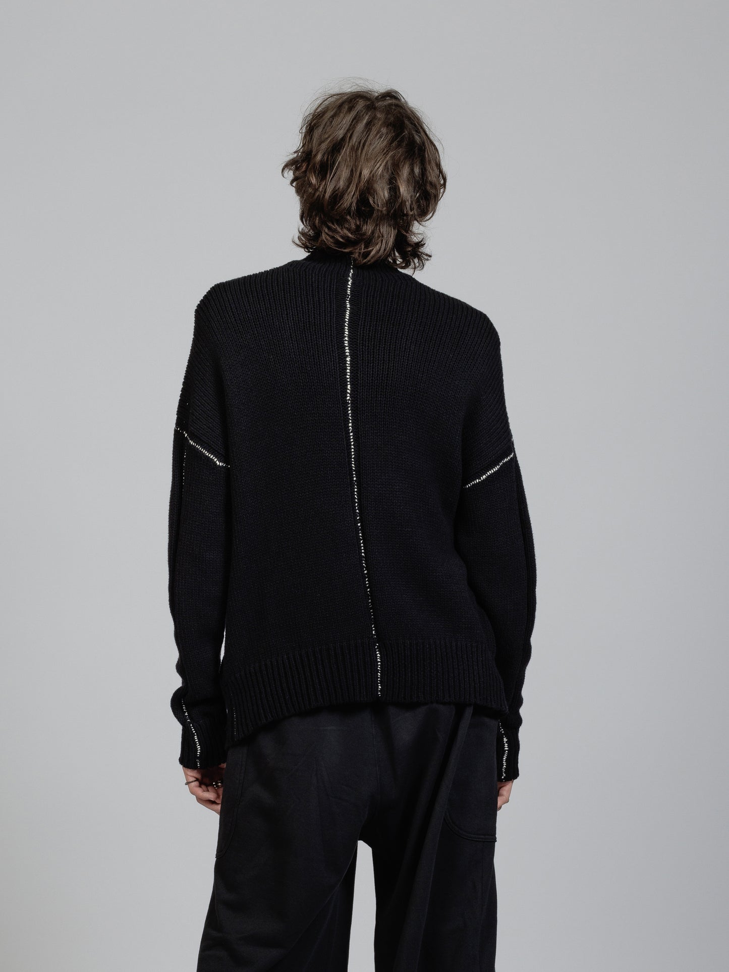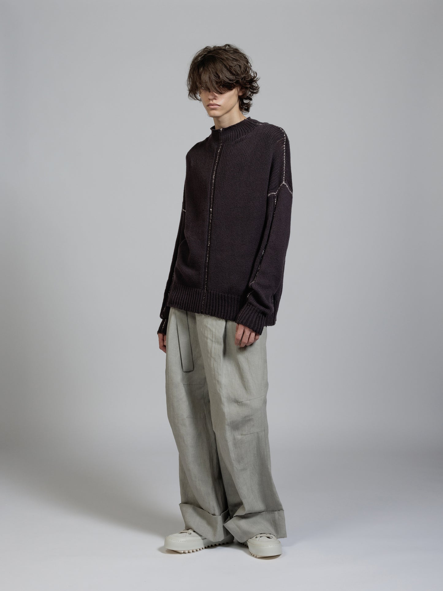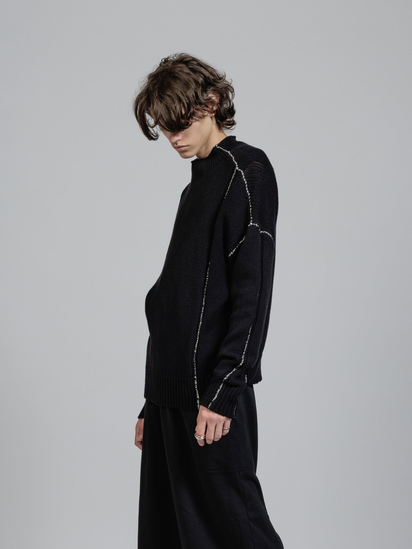 ややゆるめに編まれたコットンナイロンのプルオーバーニット。