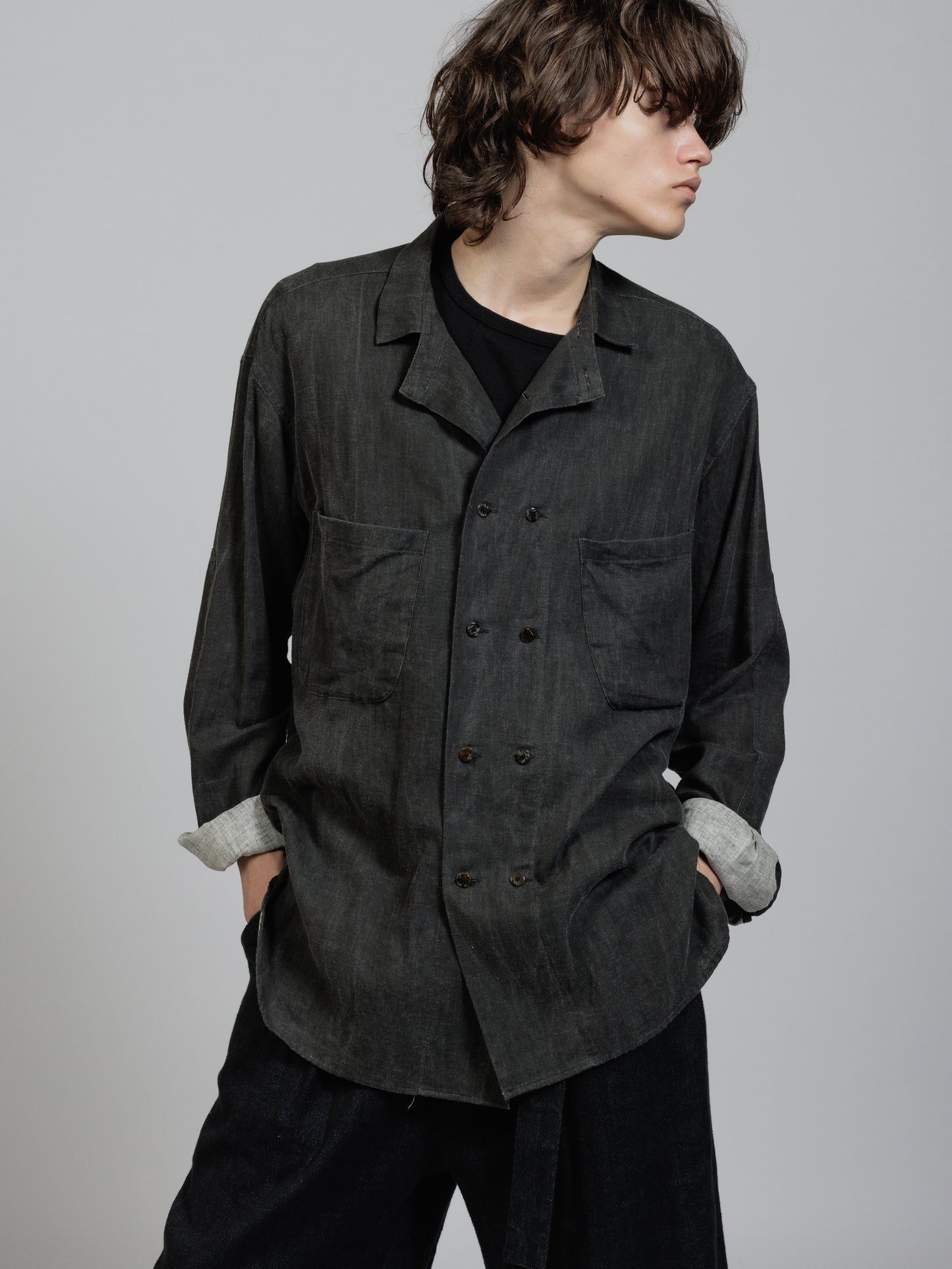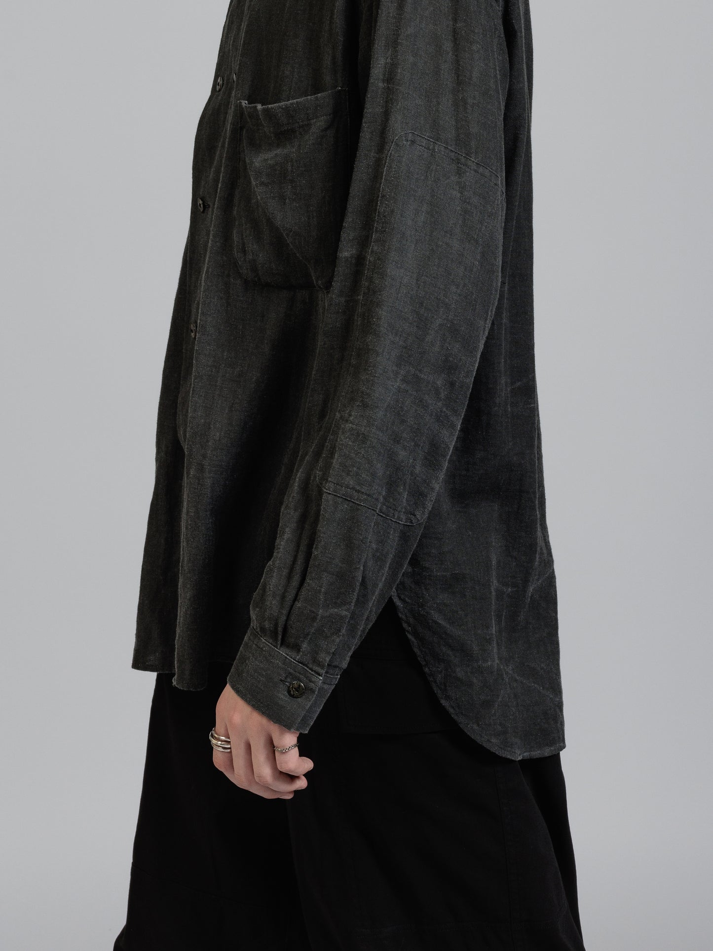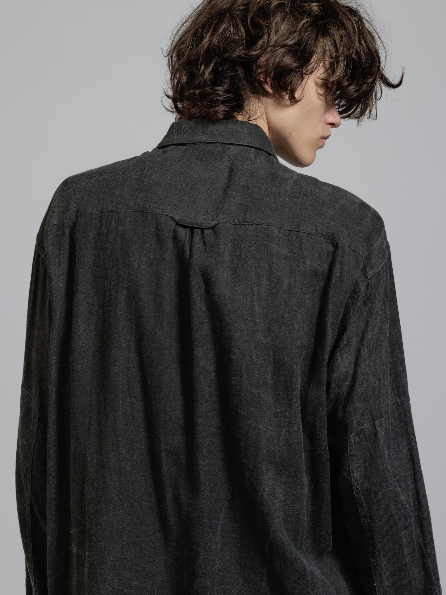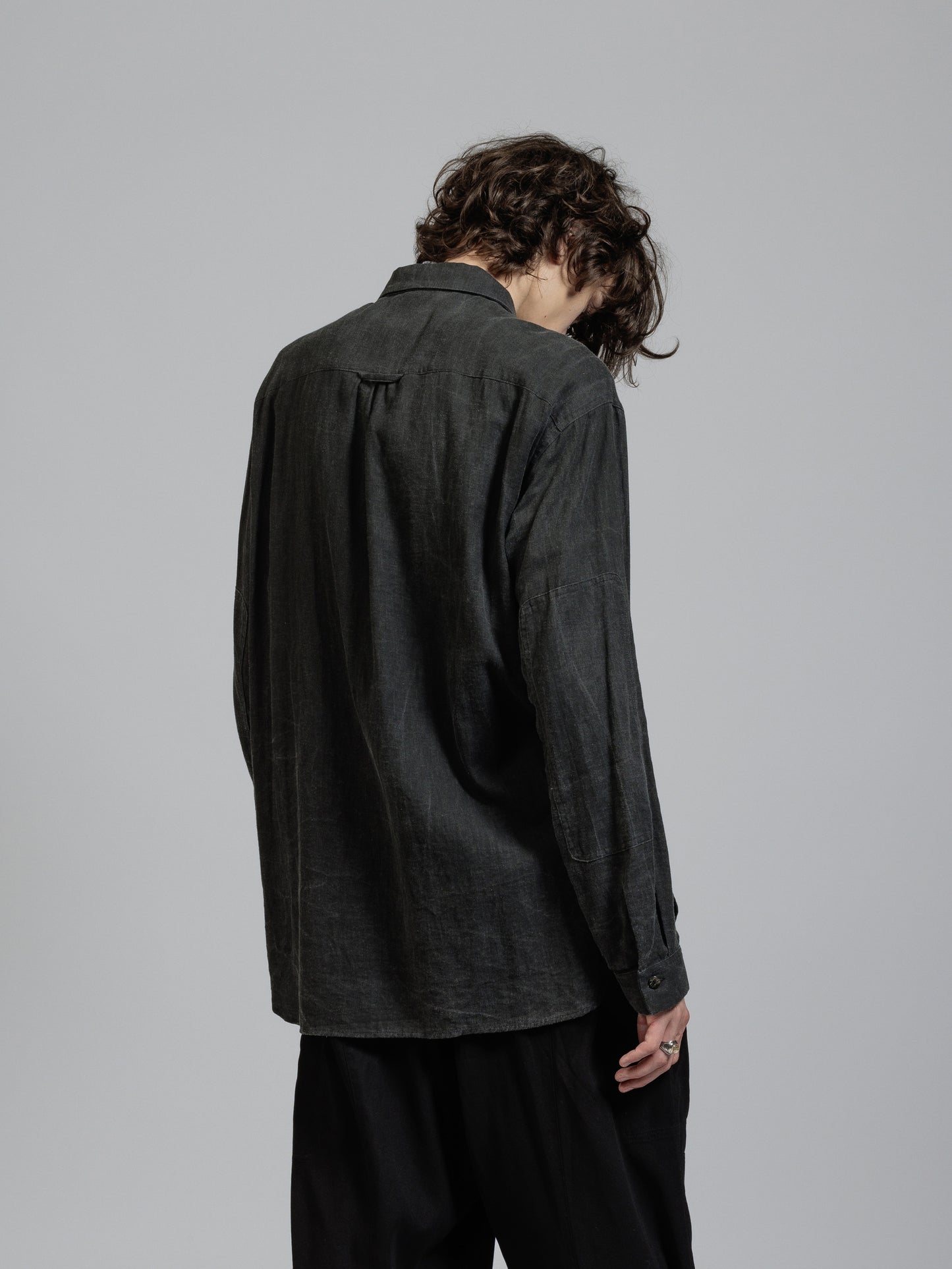 ピグメントプリントを施したコットンリネン生地を使用した長袖シャツ。