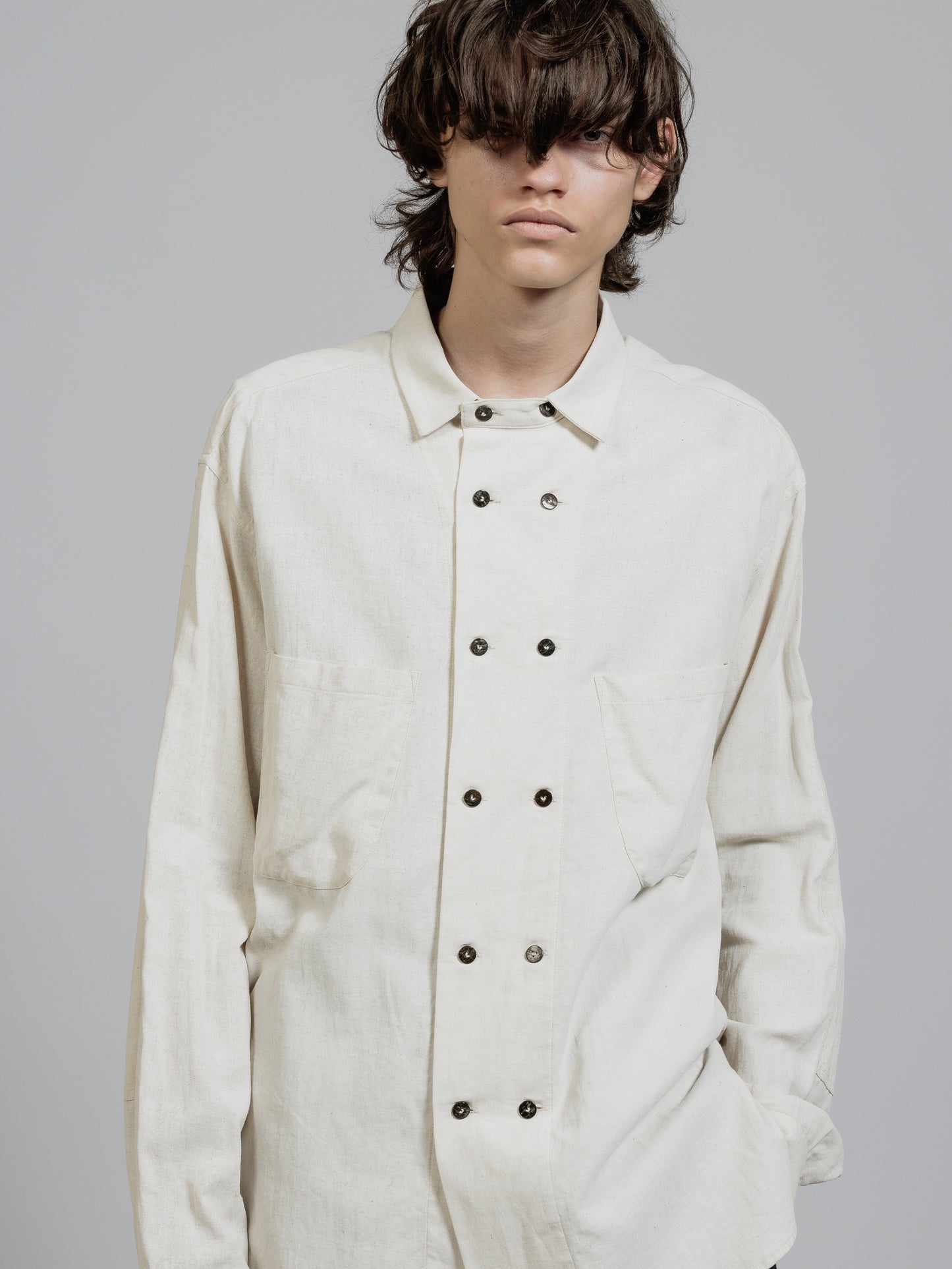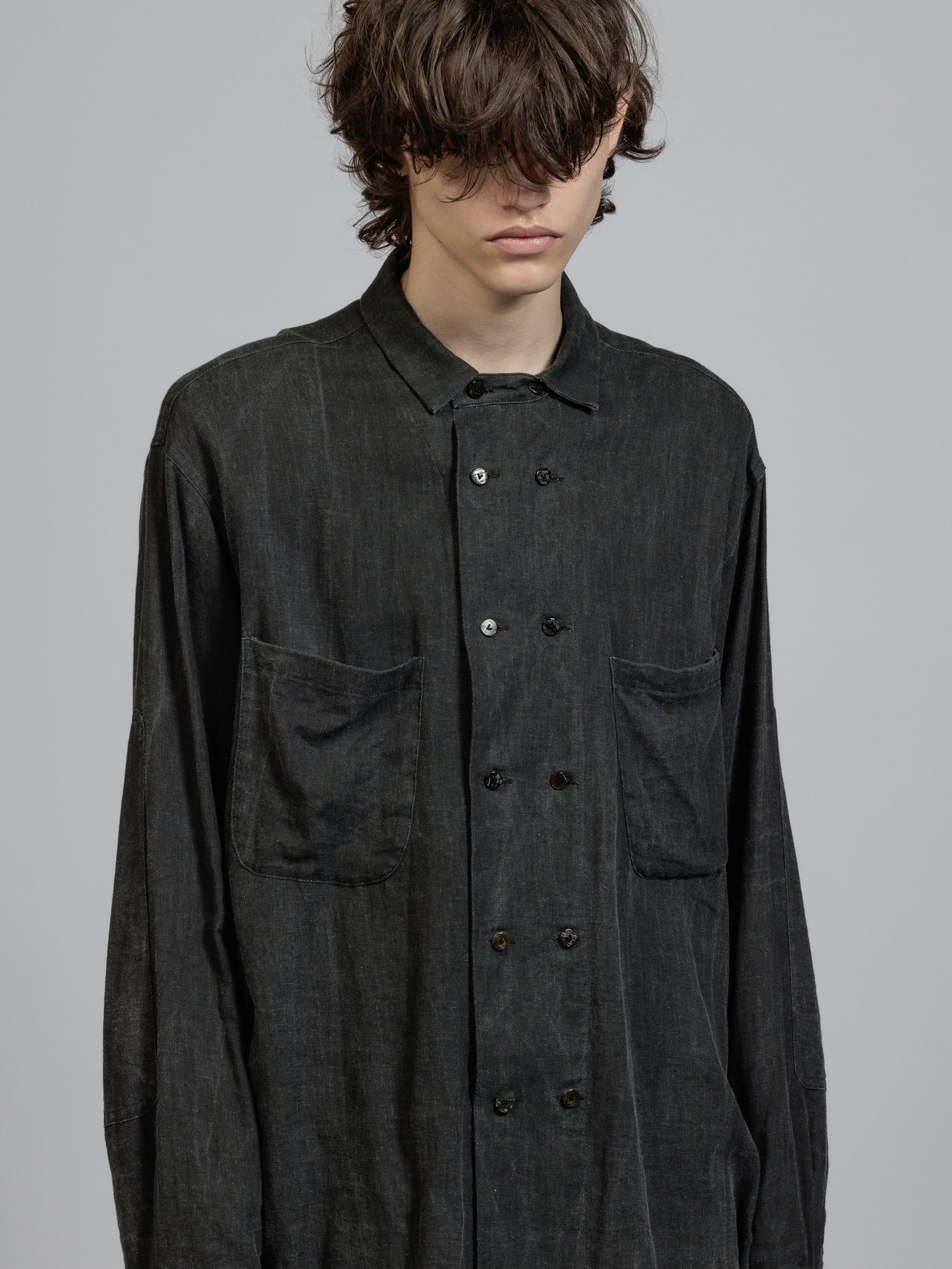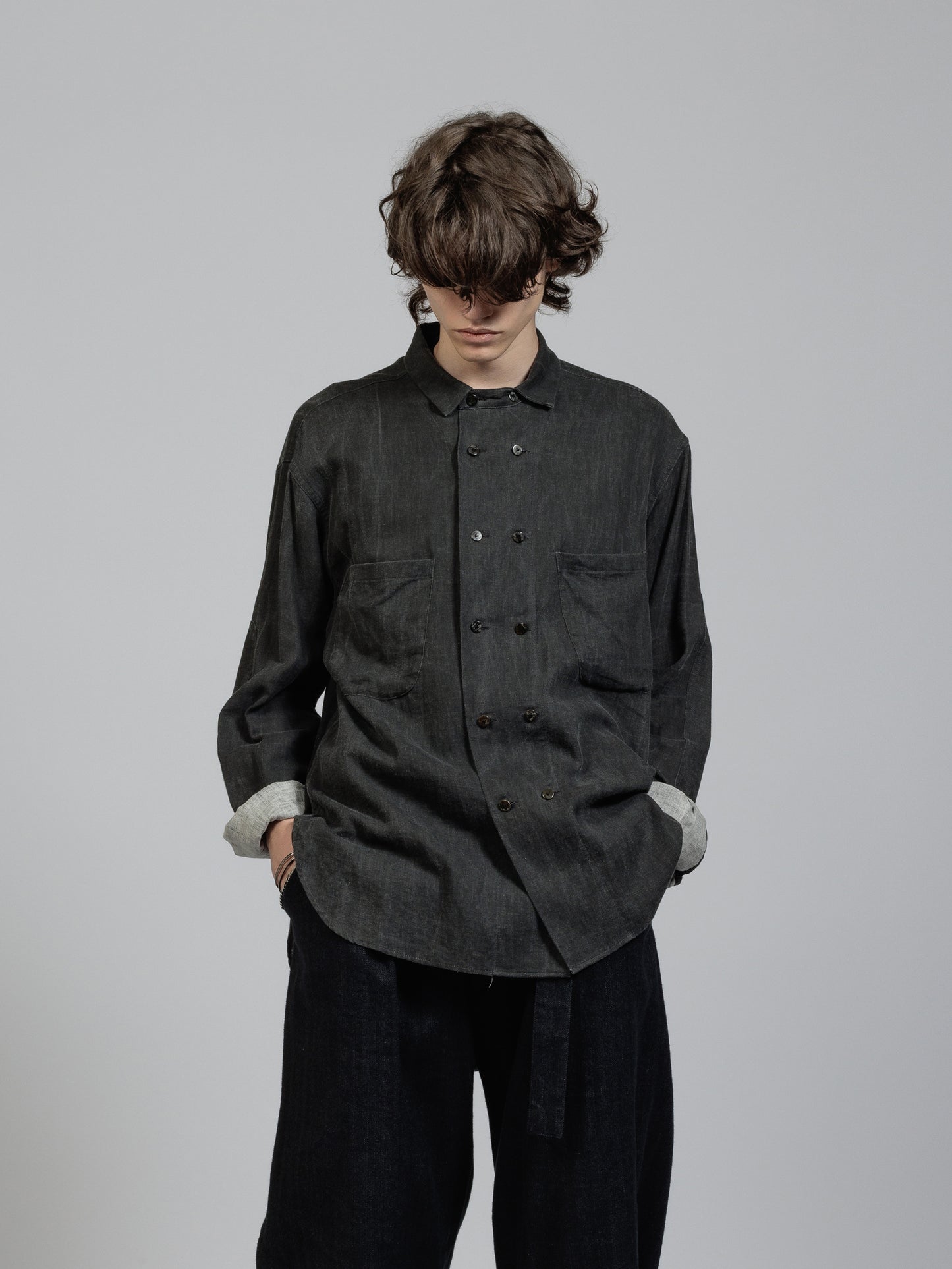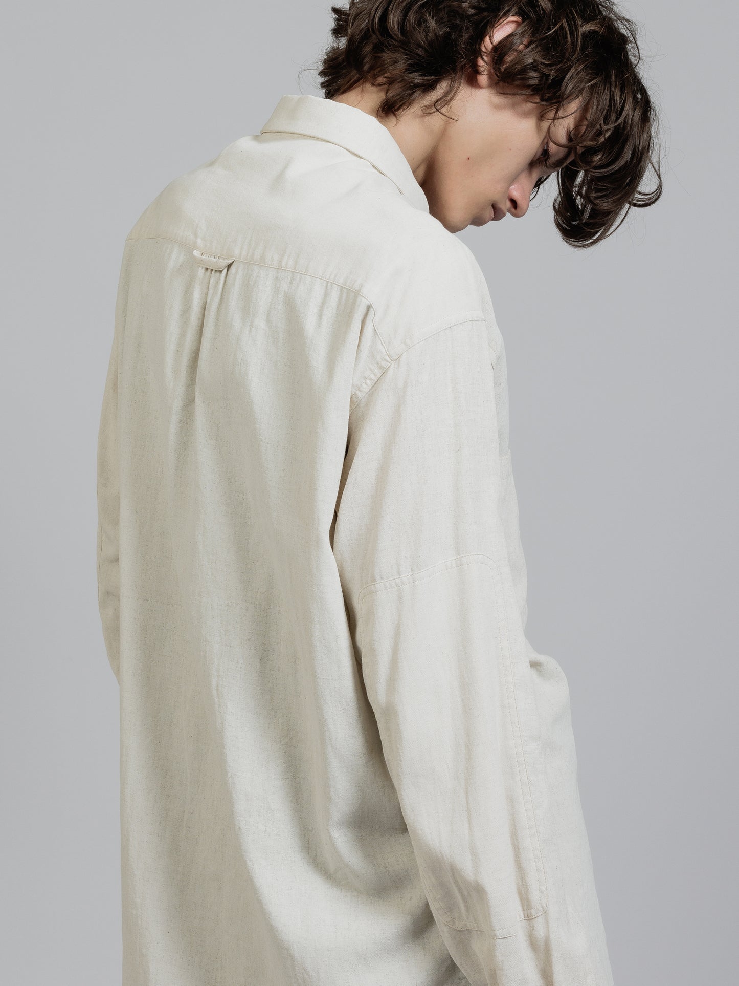 ピグメントプリントを施したコットンリネン生地を使用した長袖シャツ。
