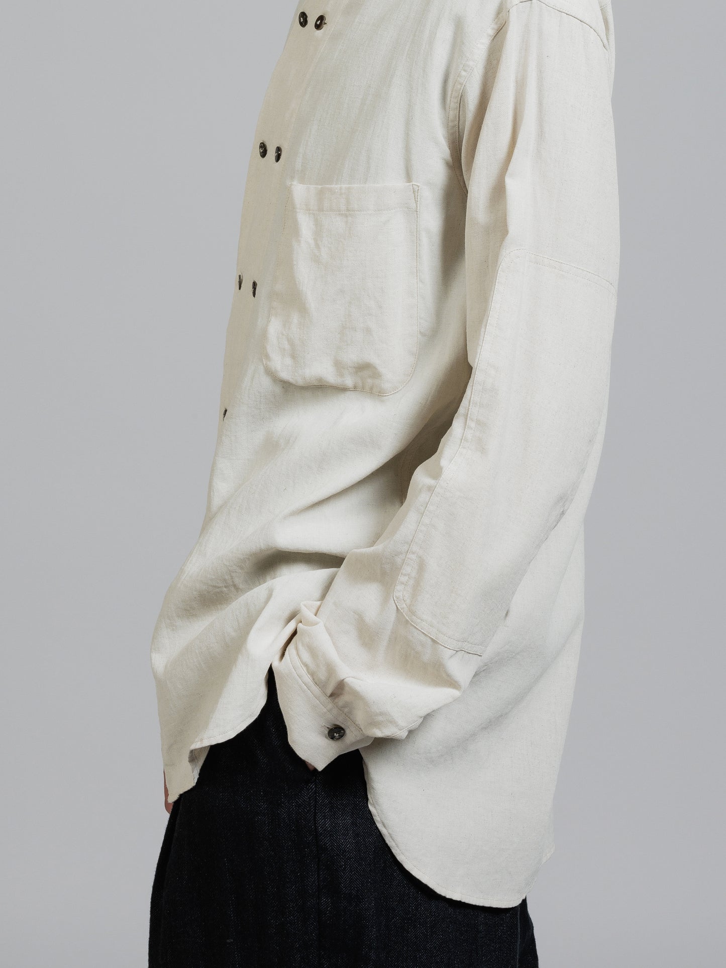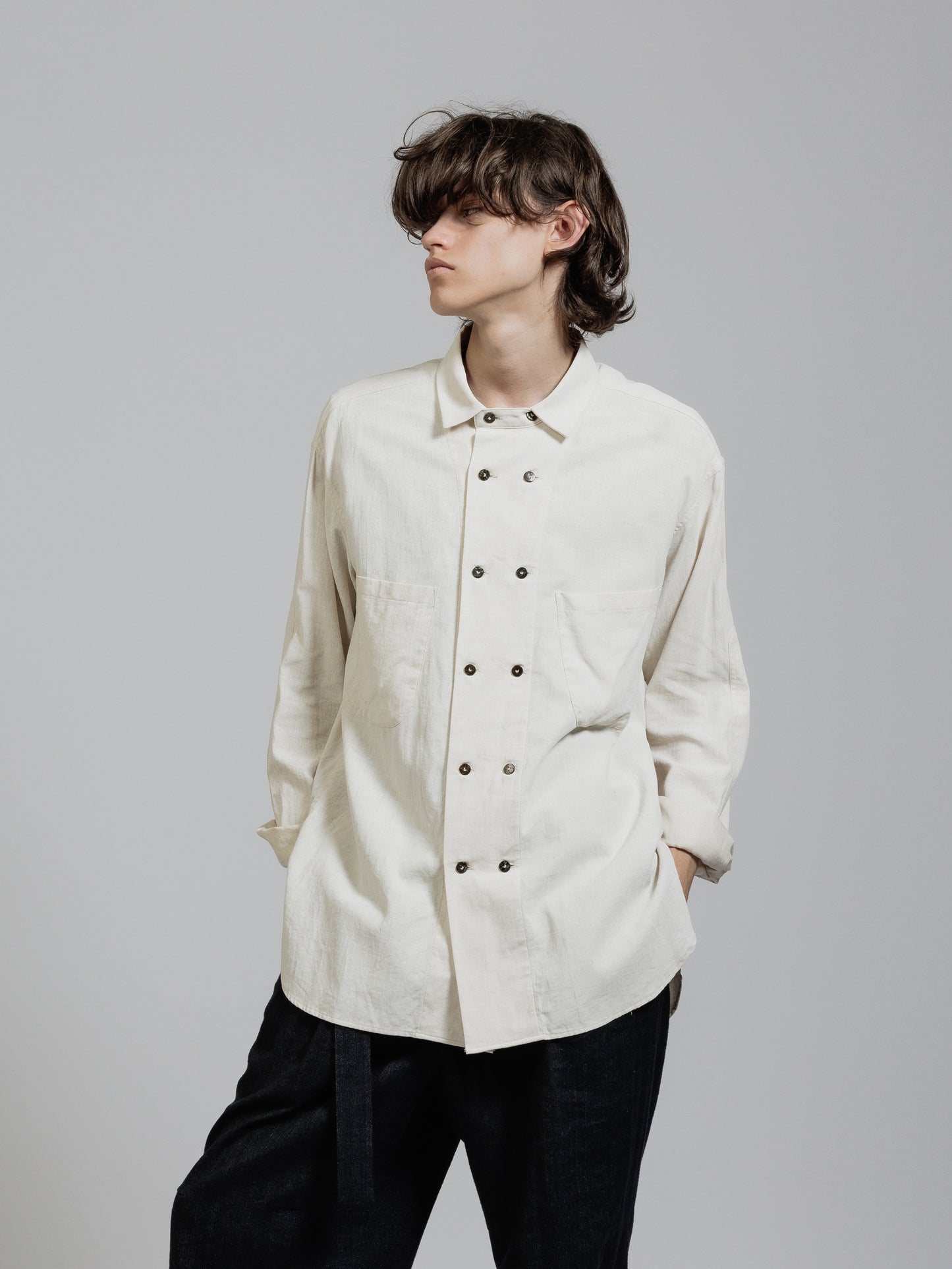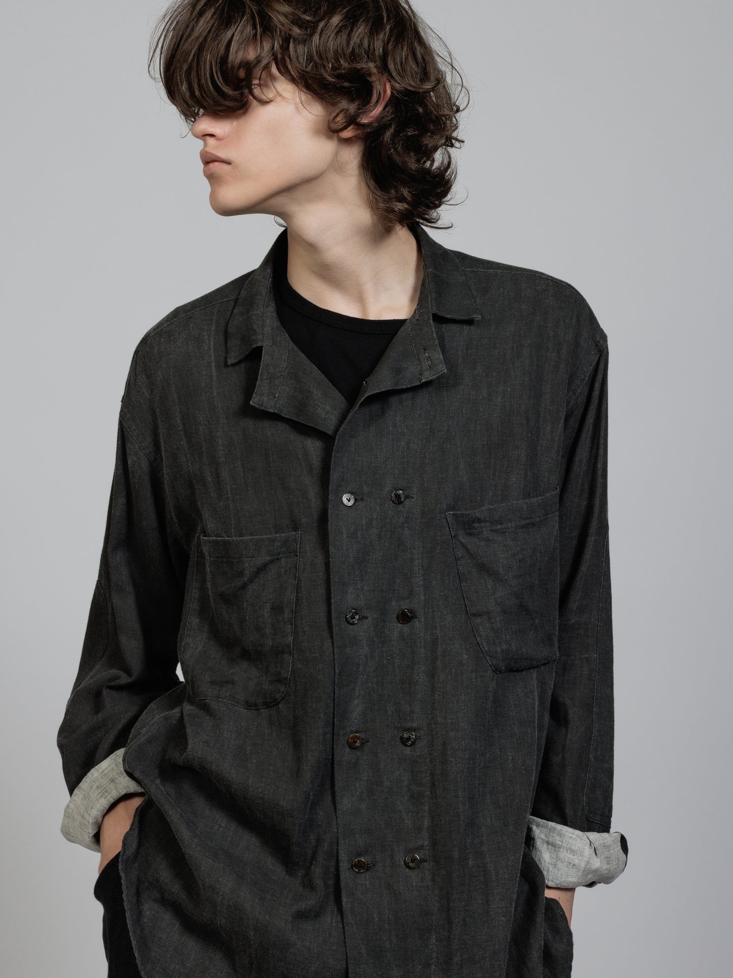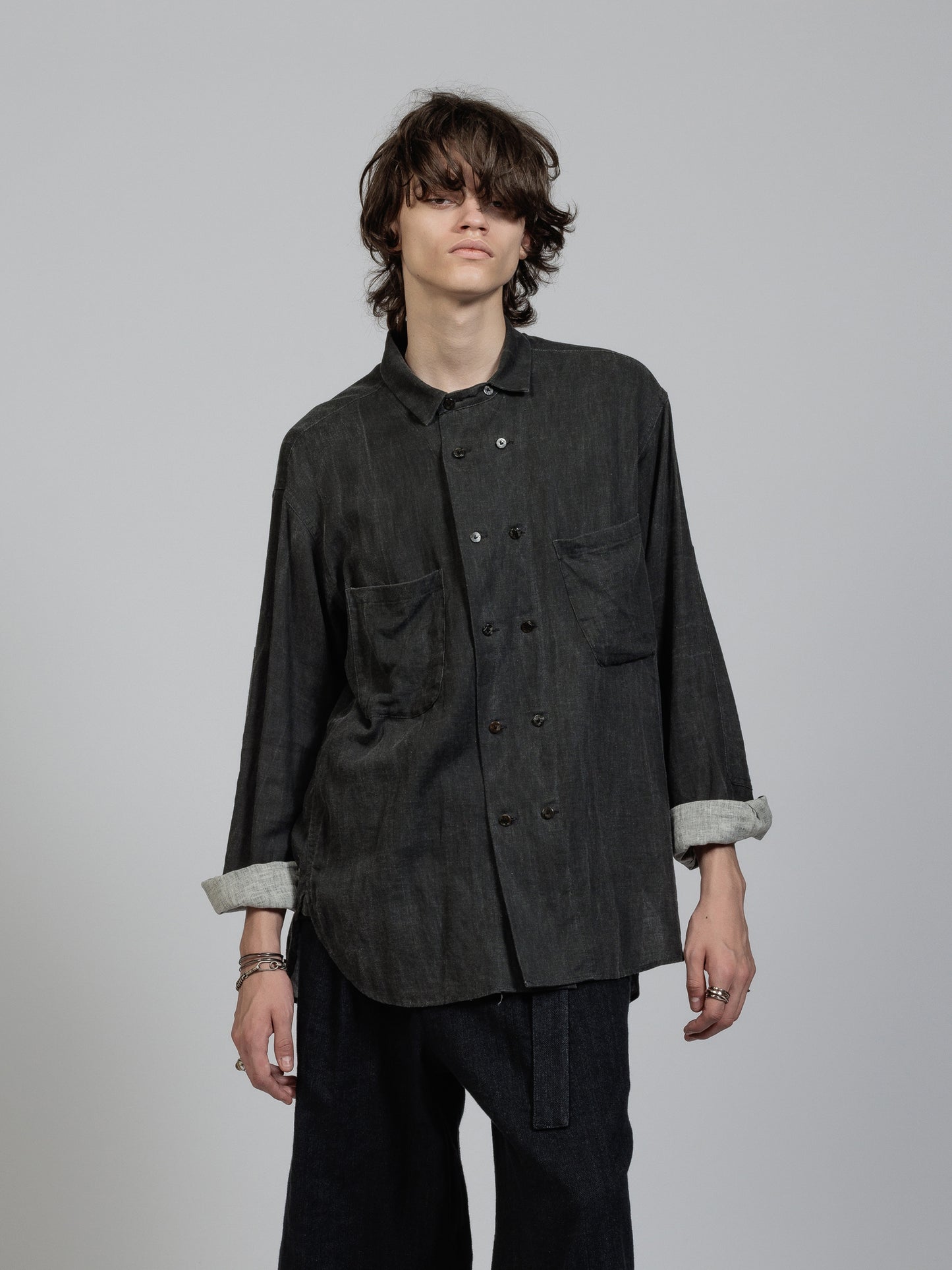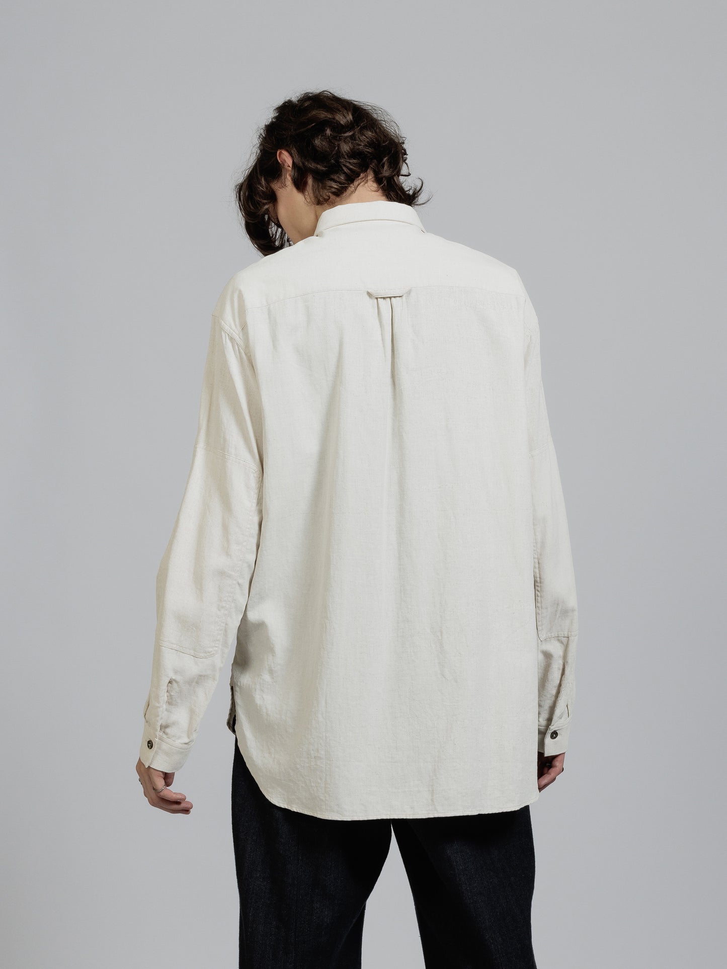 ピグメントプリントを施したコットンリネン生地を使用した長袖シャツ。