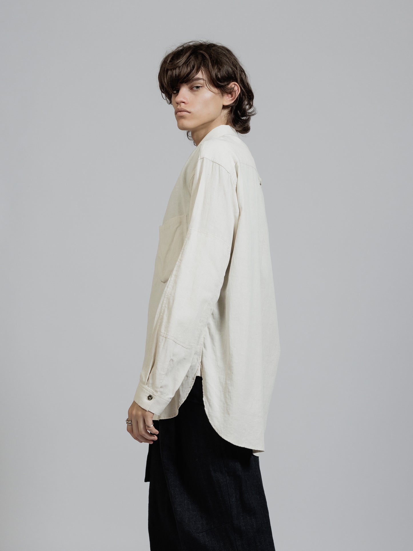 裾に前後差のあるややゆったりとしたリラックスシルエット。