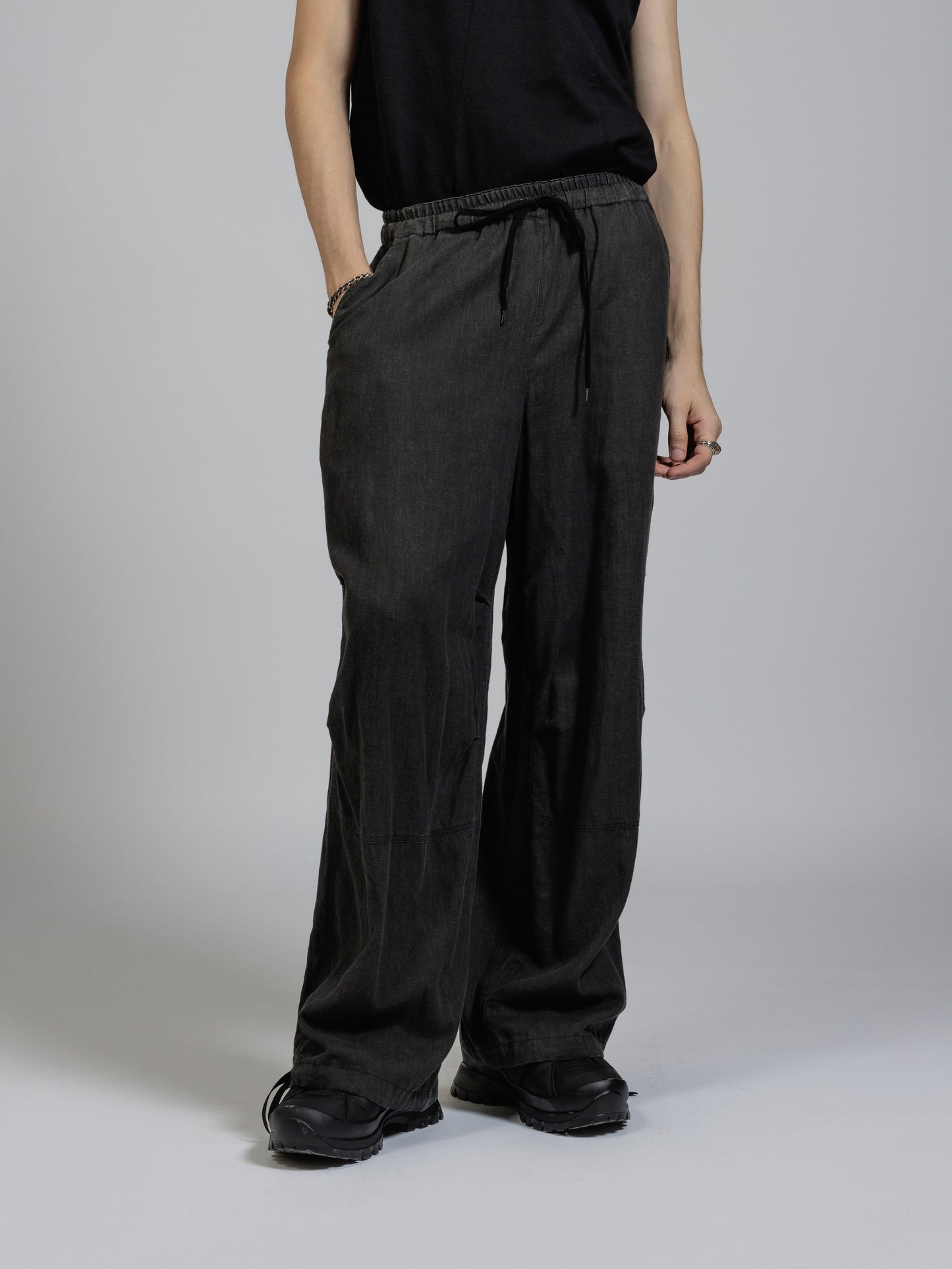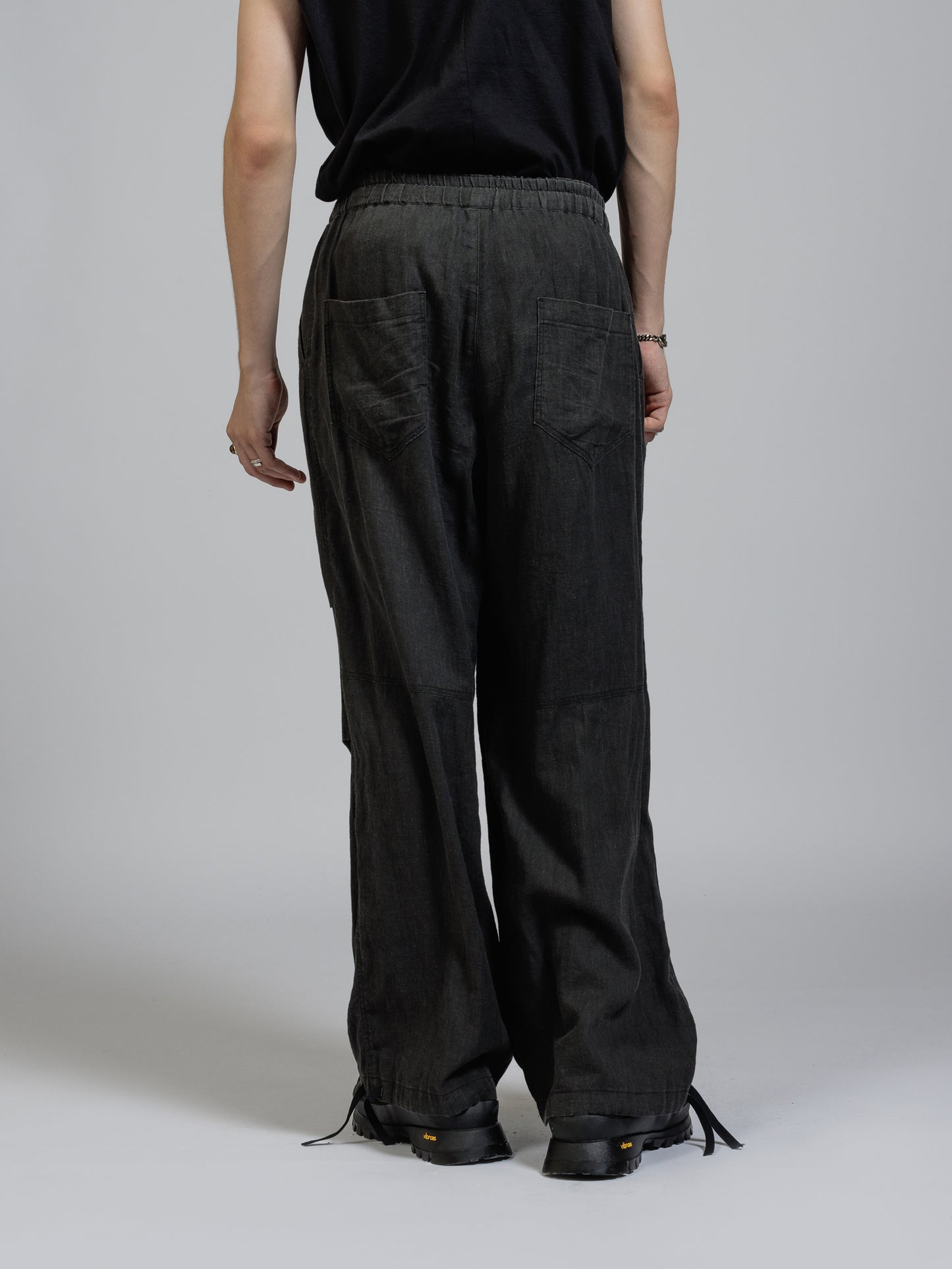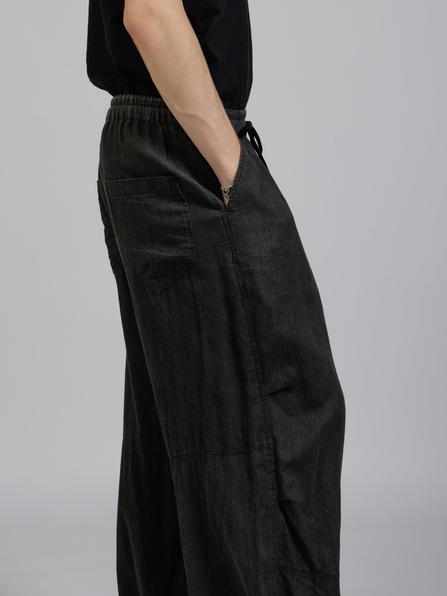 ピグメントプリントを施したコットンリネン生地を使用したワイドパンツ。