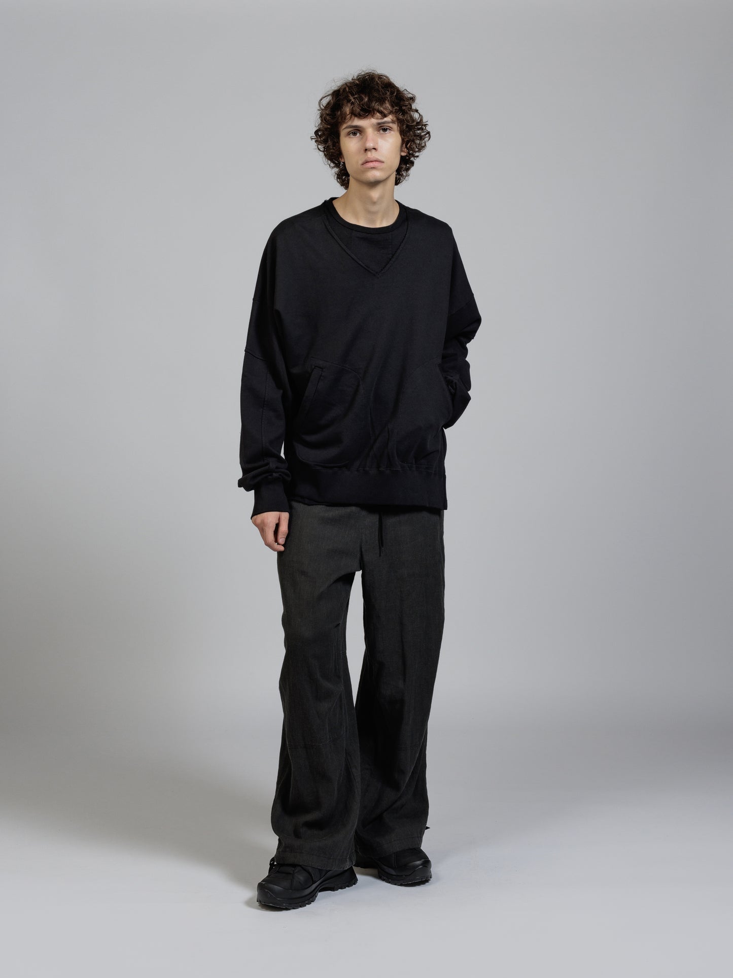 軽量で肌触りの良い裏毛素材を使用したVネックのプルオーバースウェット。