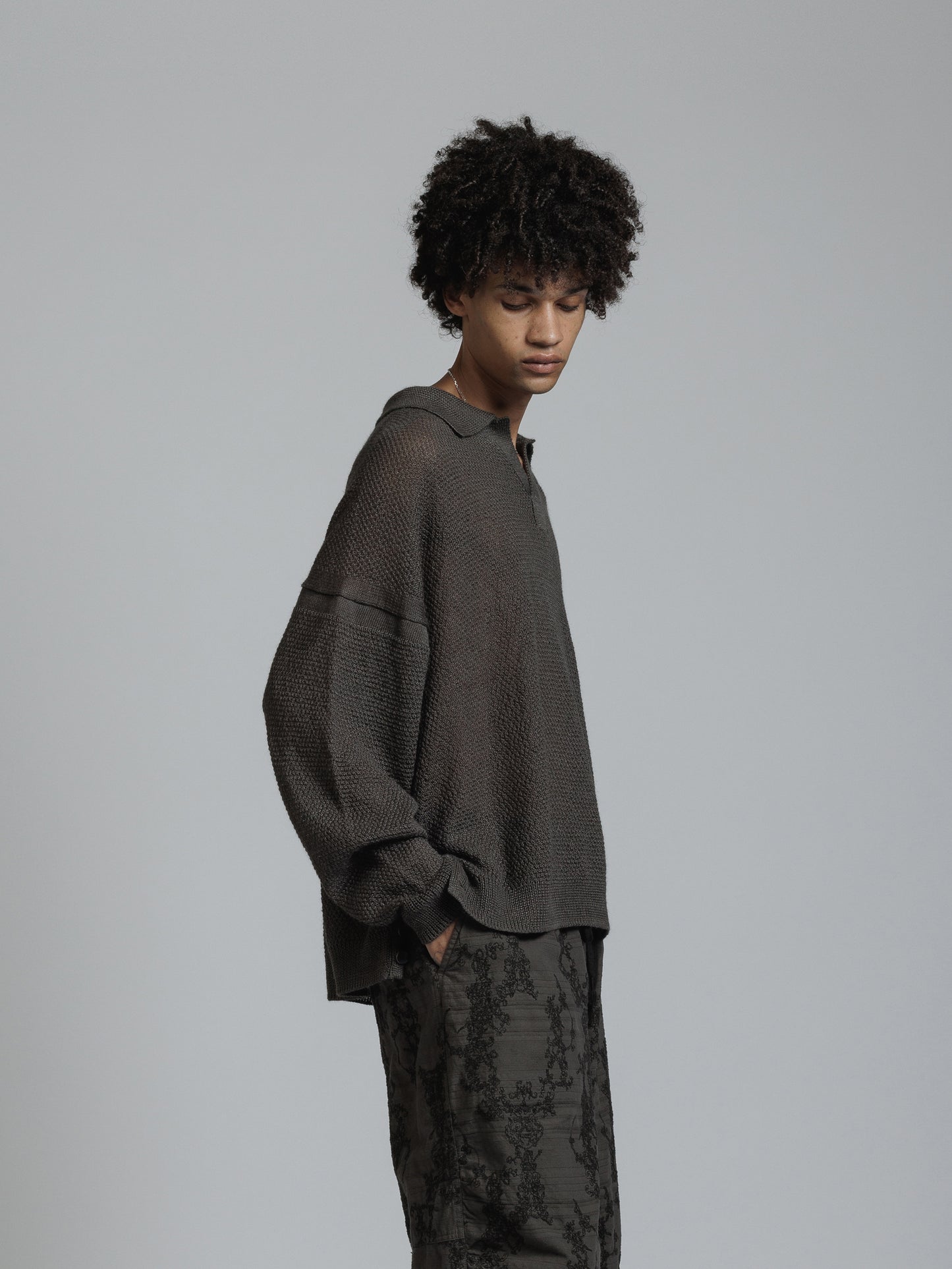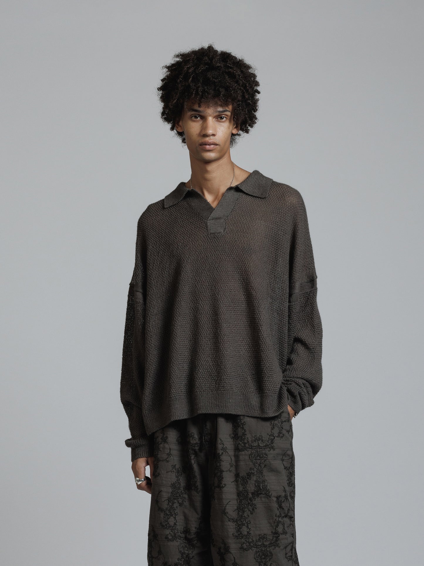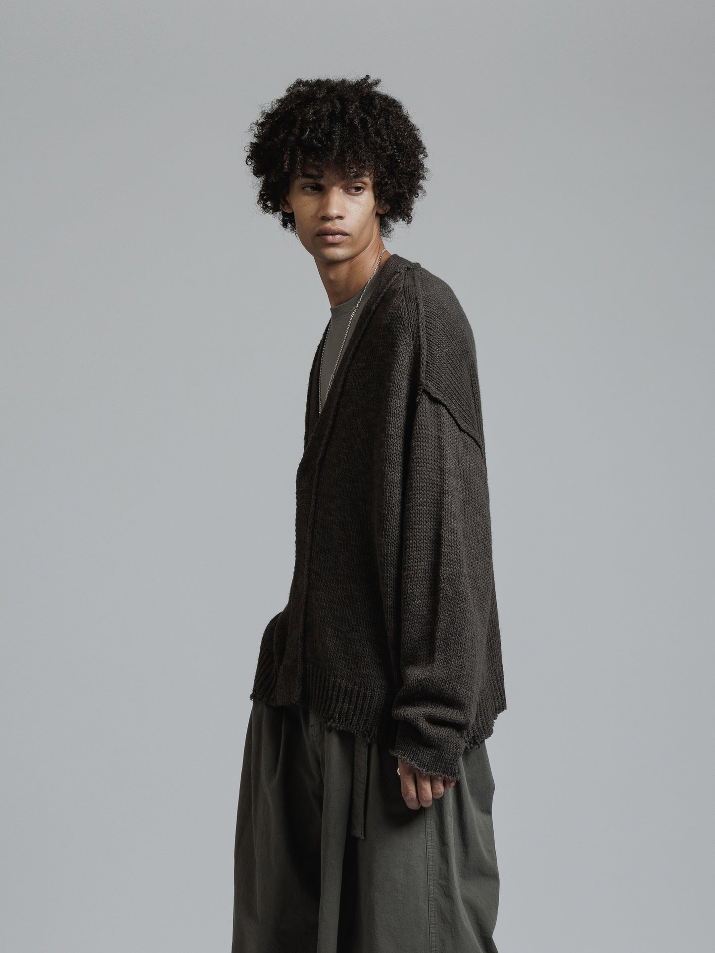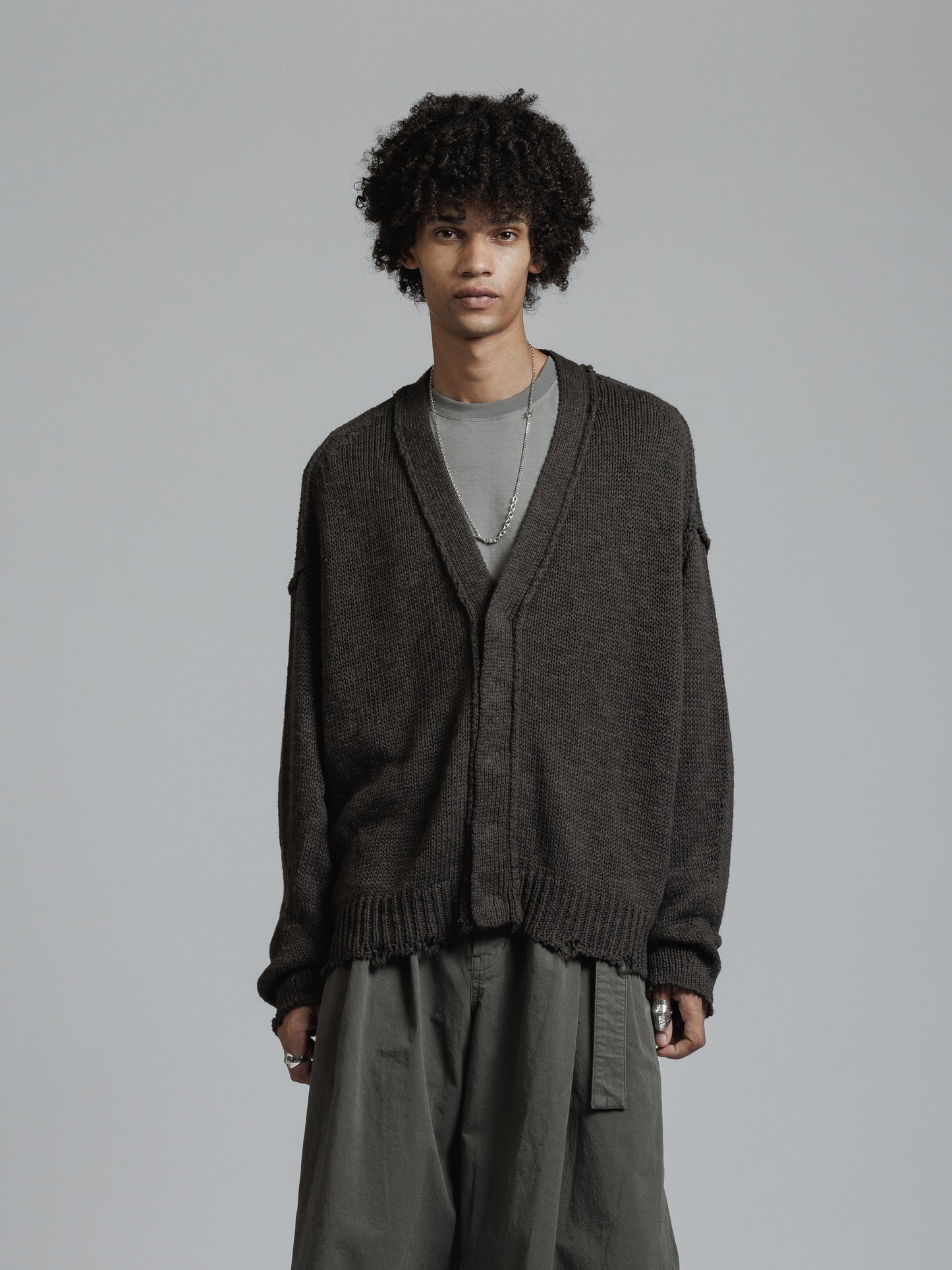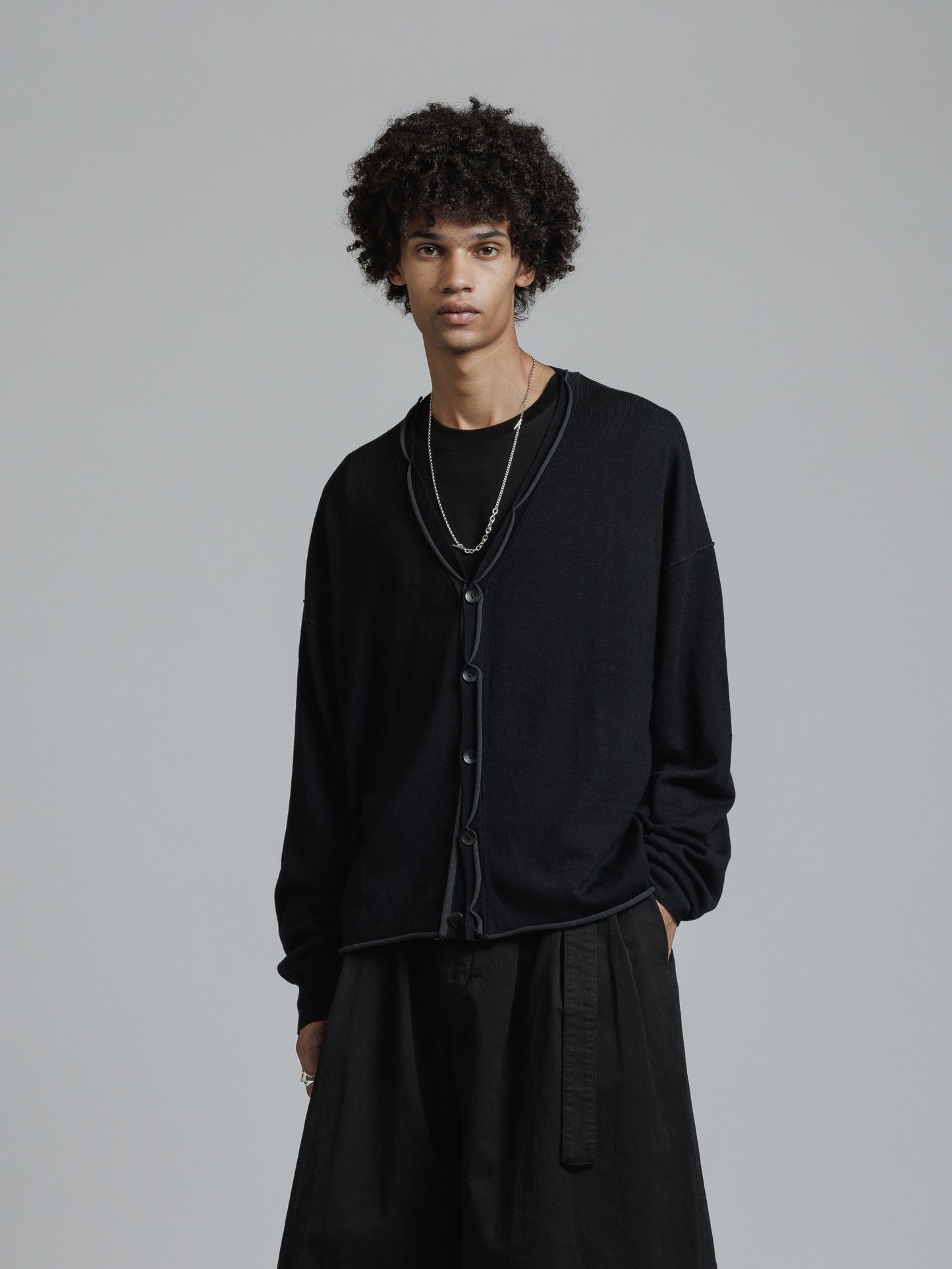 WOOL/COTTON PLATING KNIT CARDIGAN