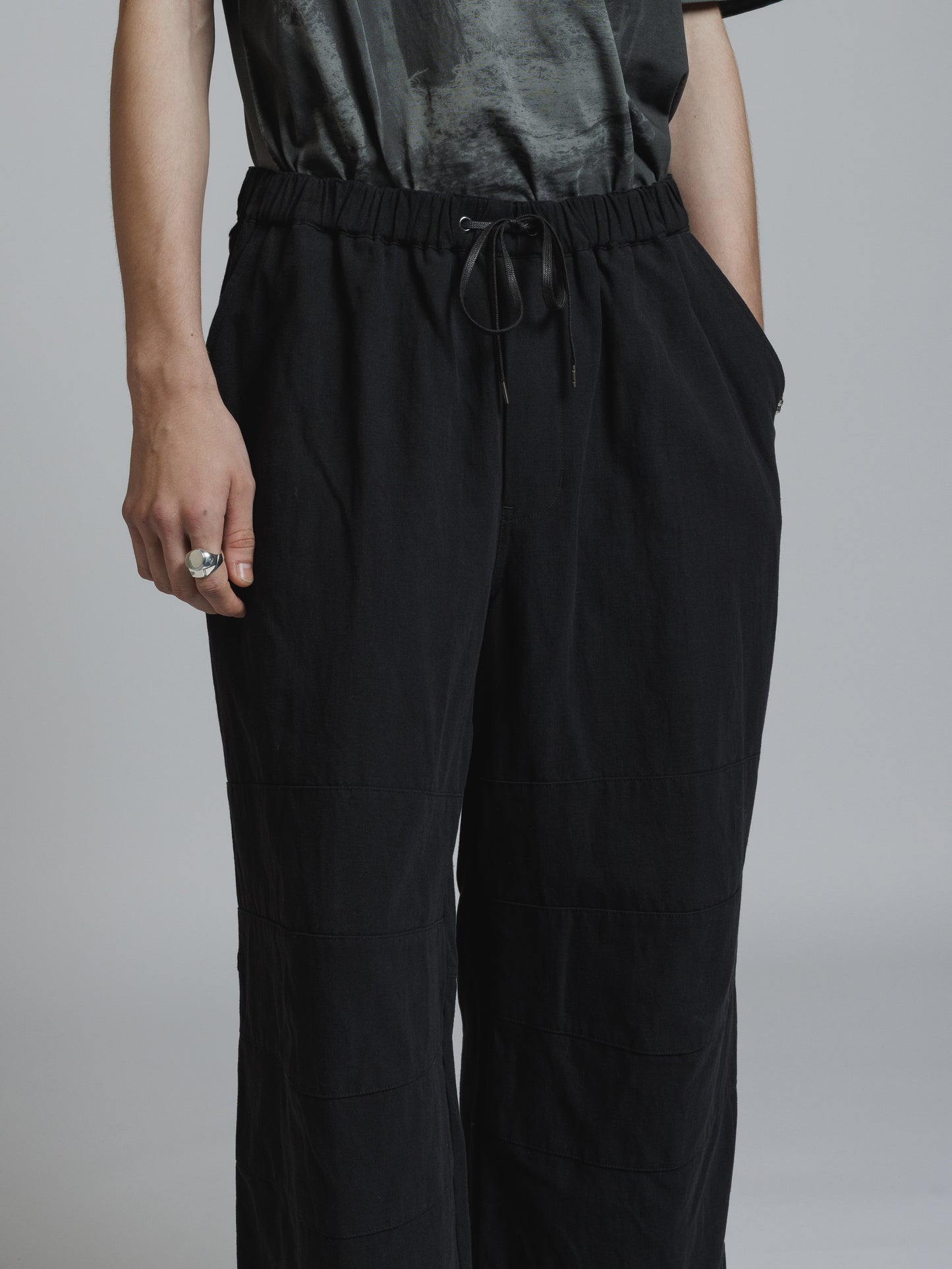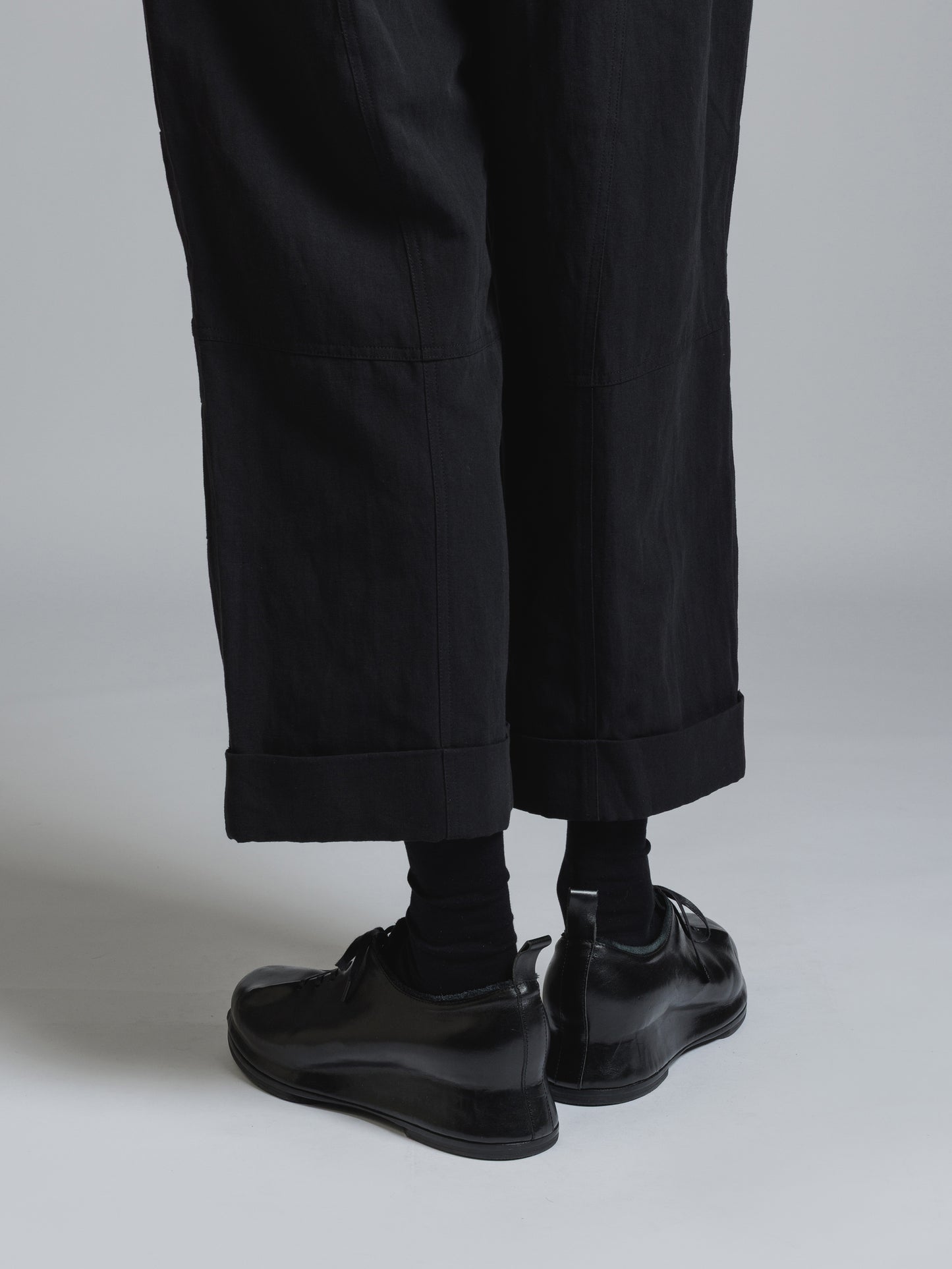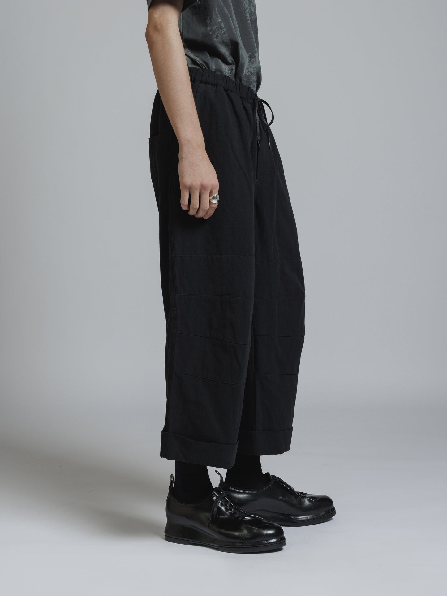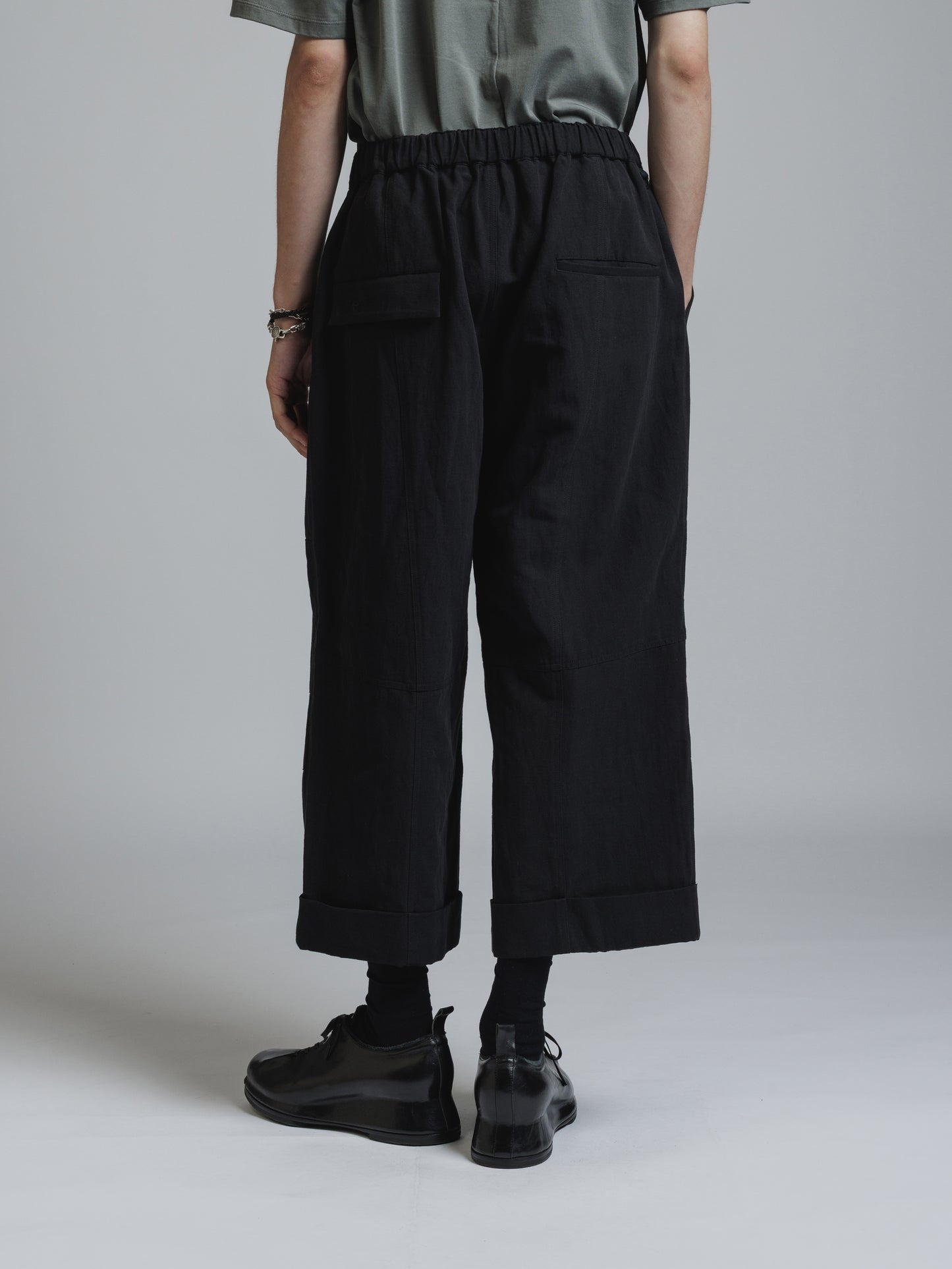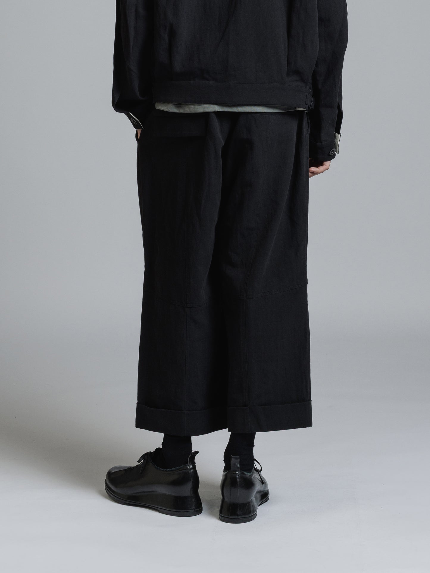 ・ドライな質感のコットンリネン生地を使用したクロップドパンツ
