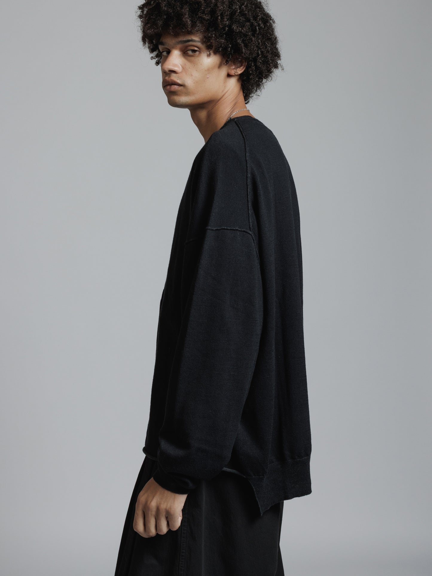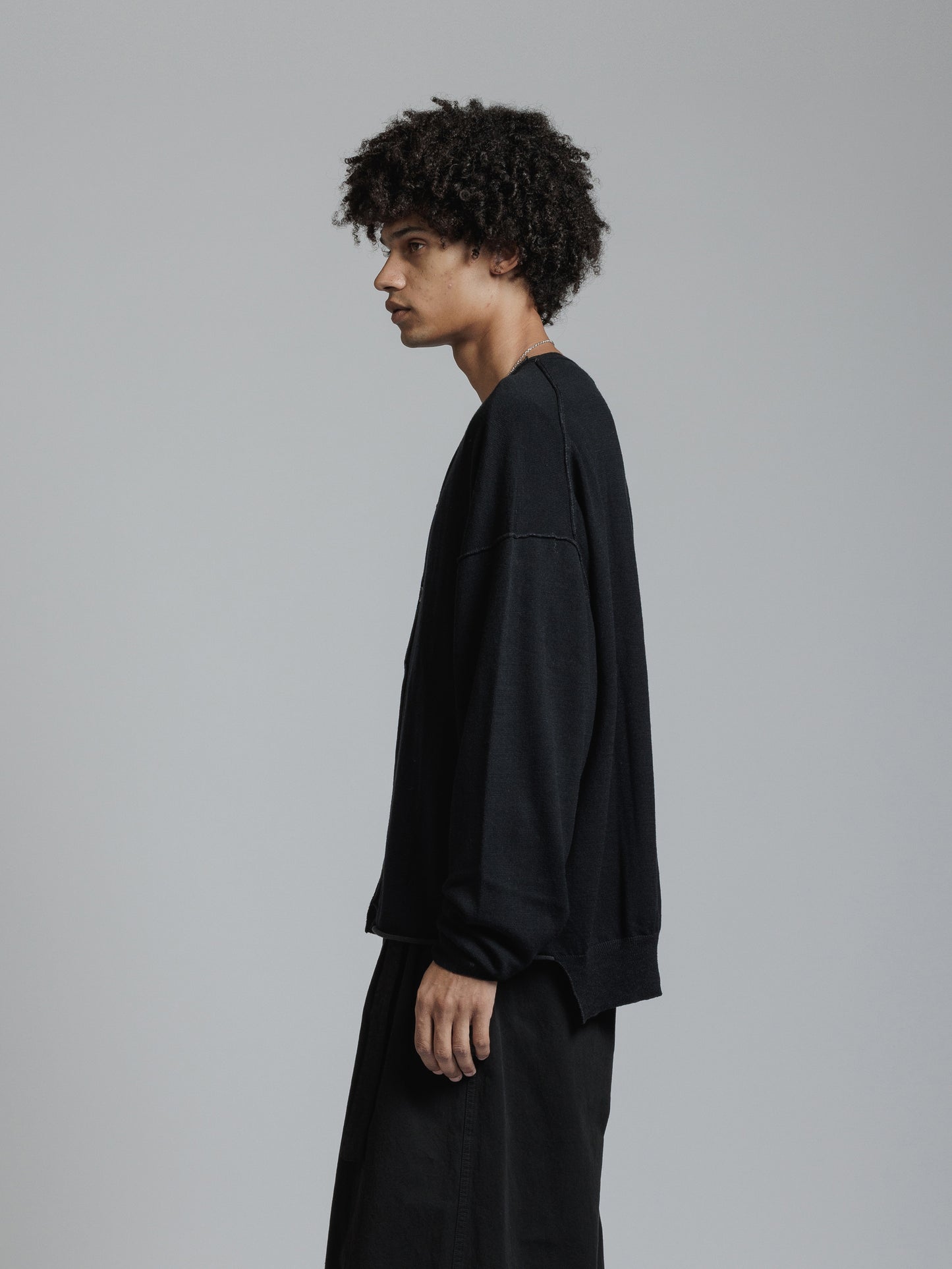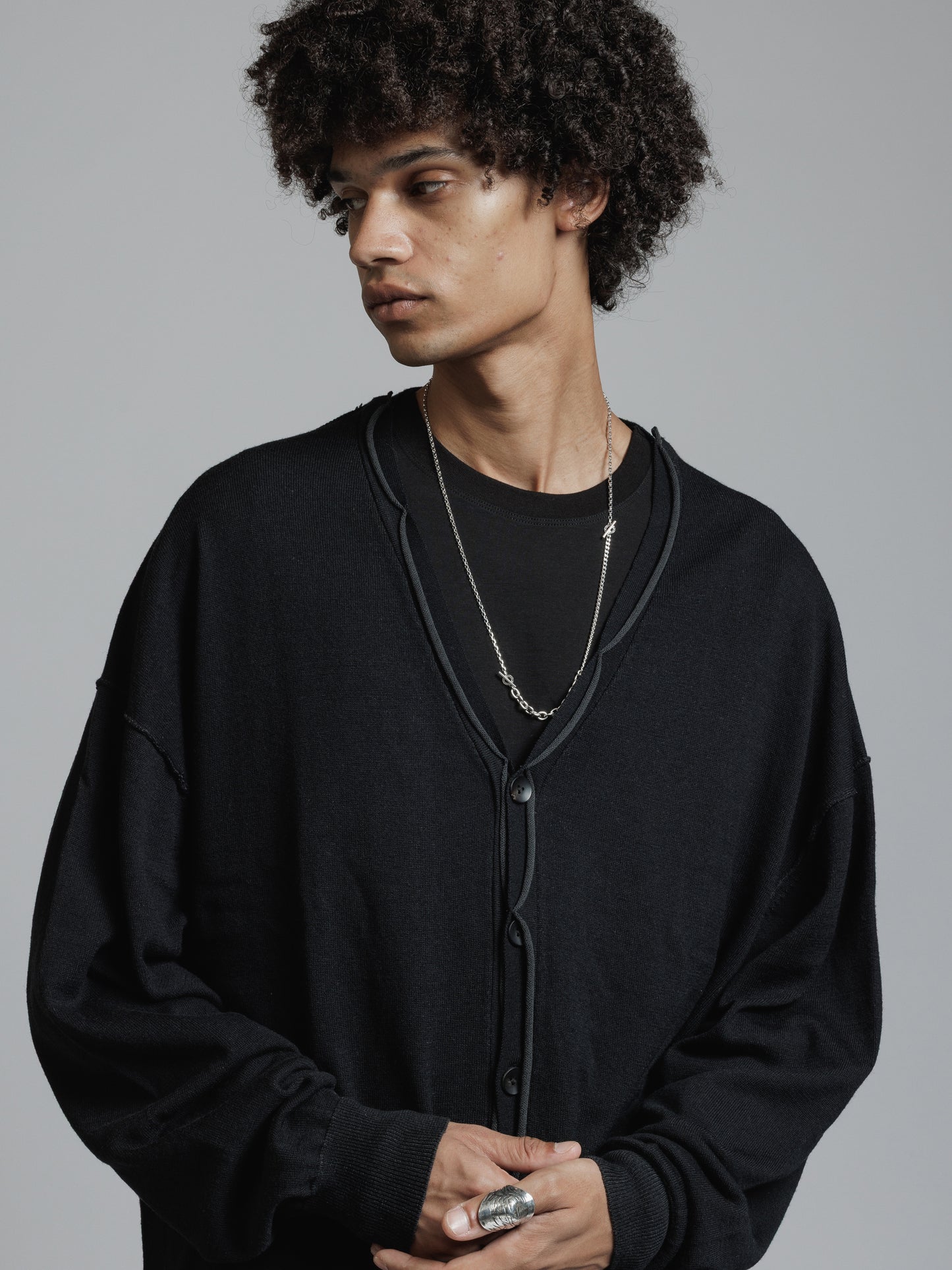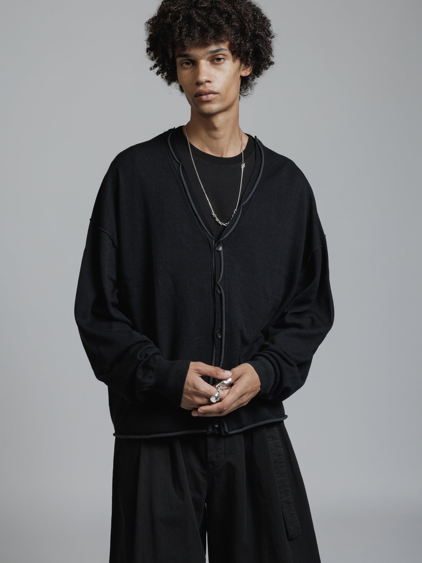 WOOL/COTTON PLATING KNIT CARDIGAN