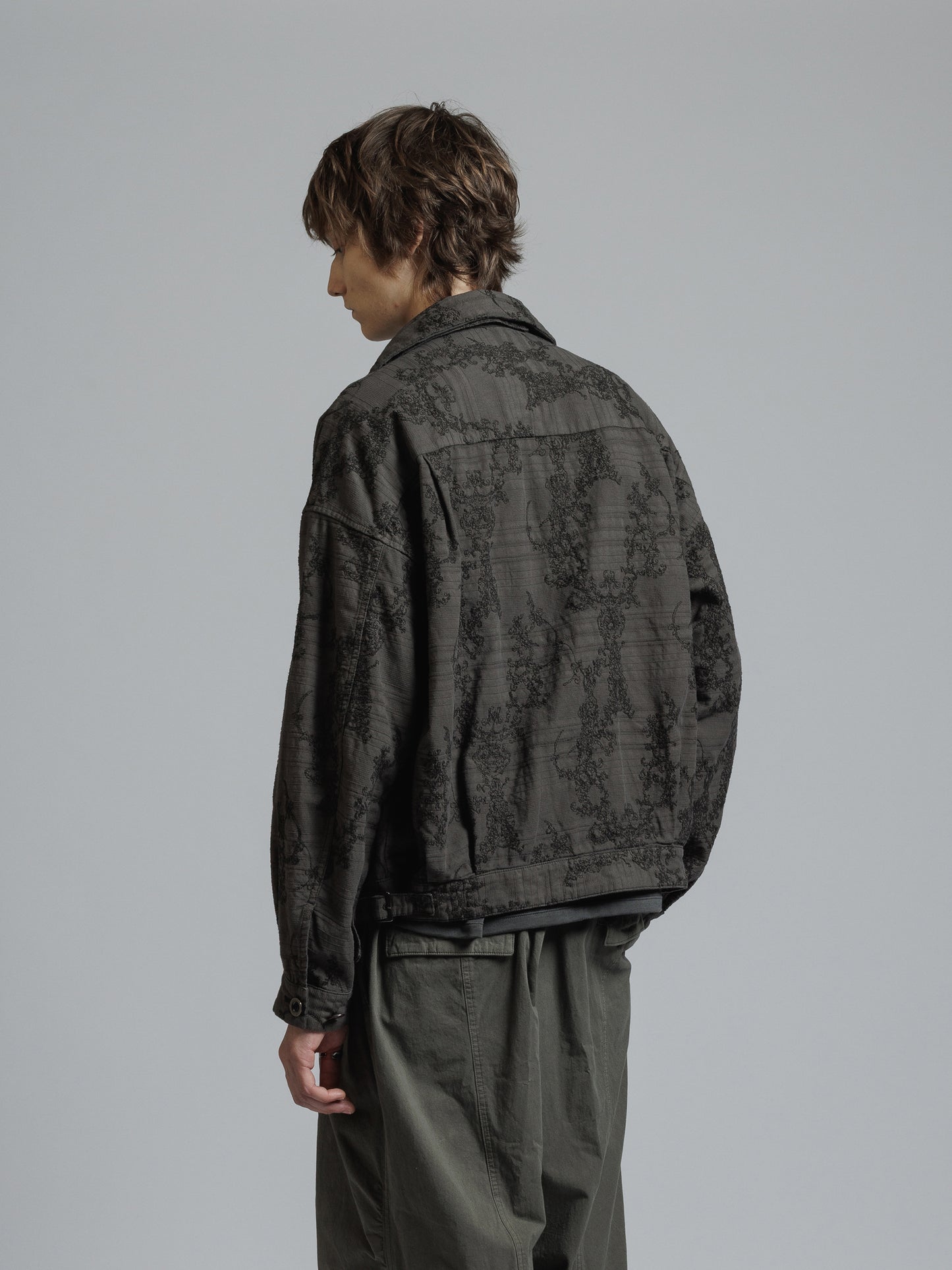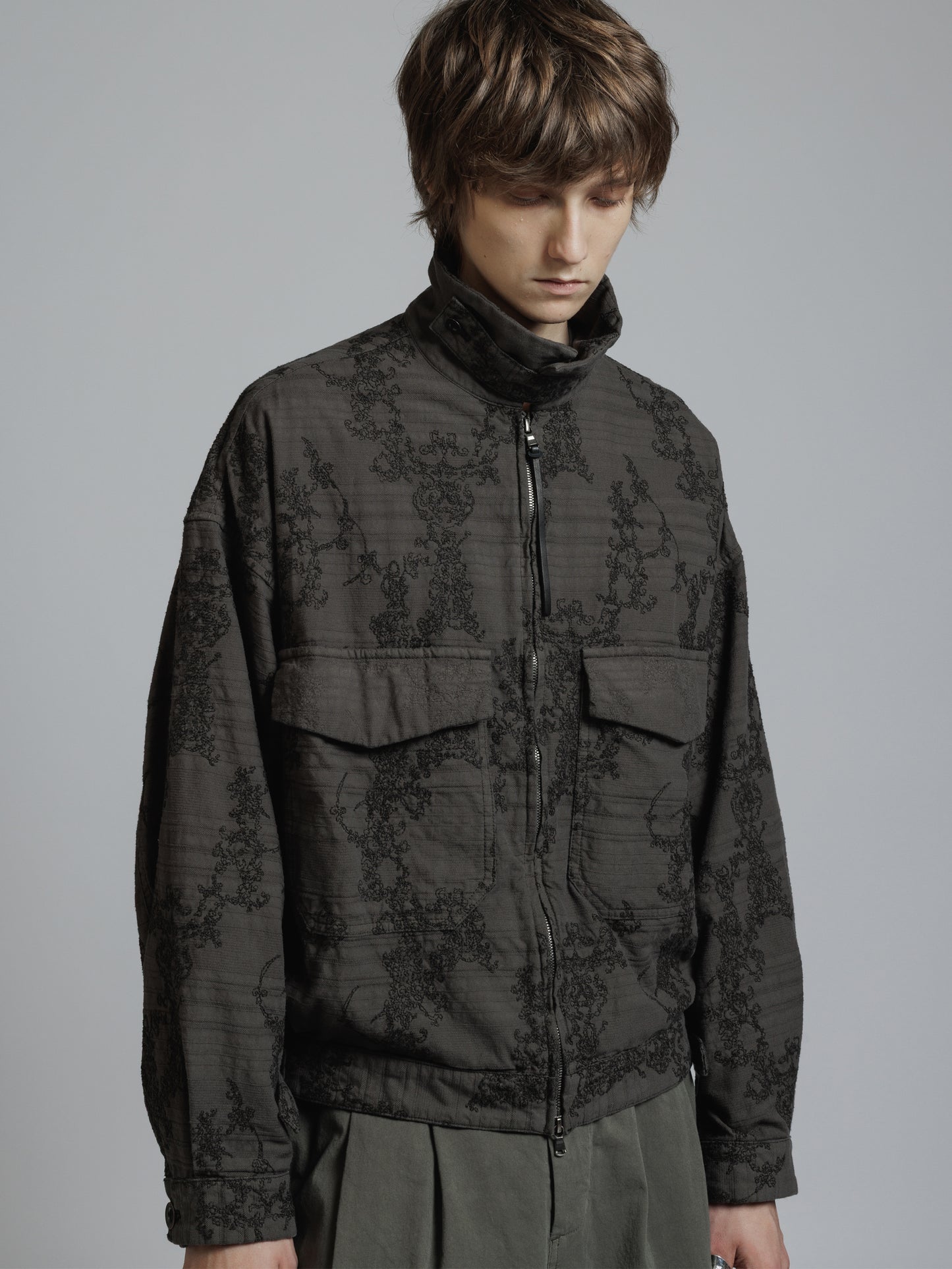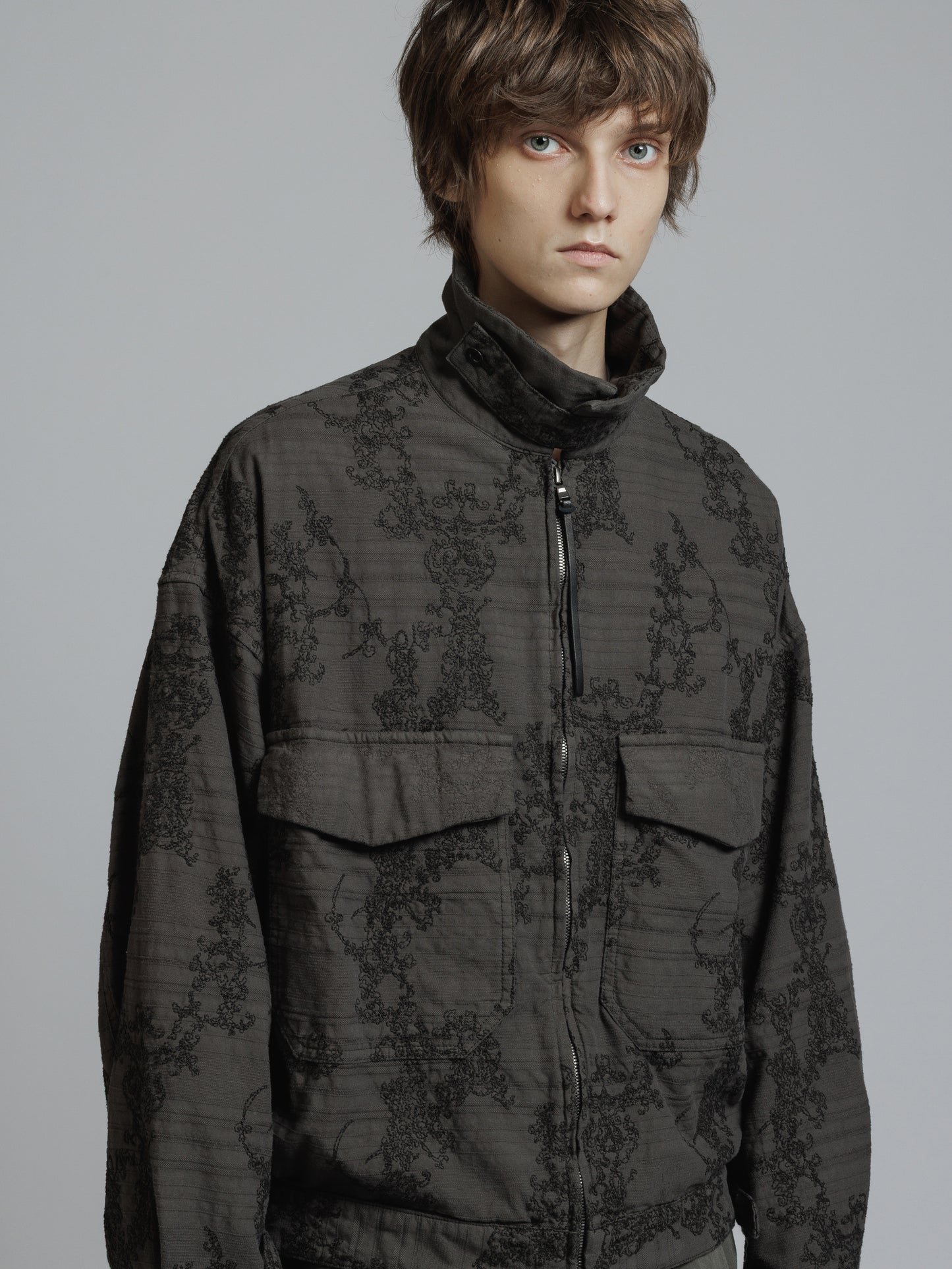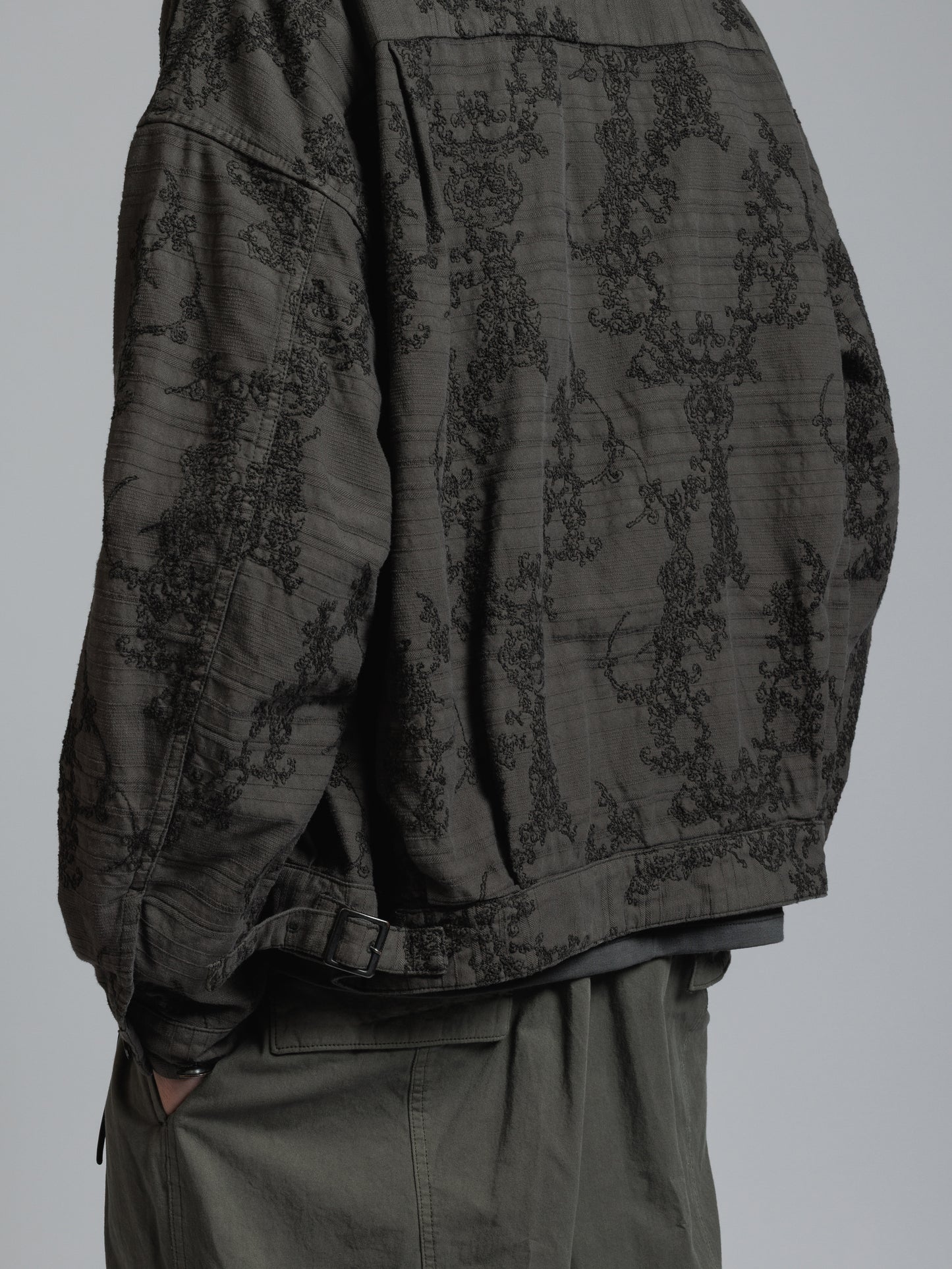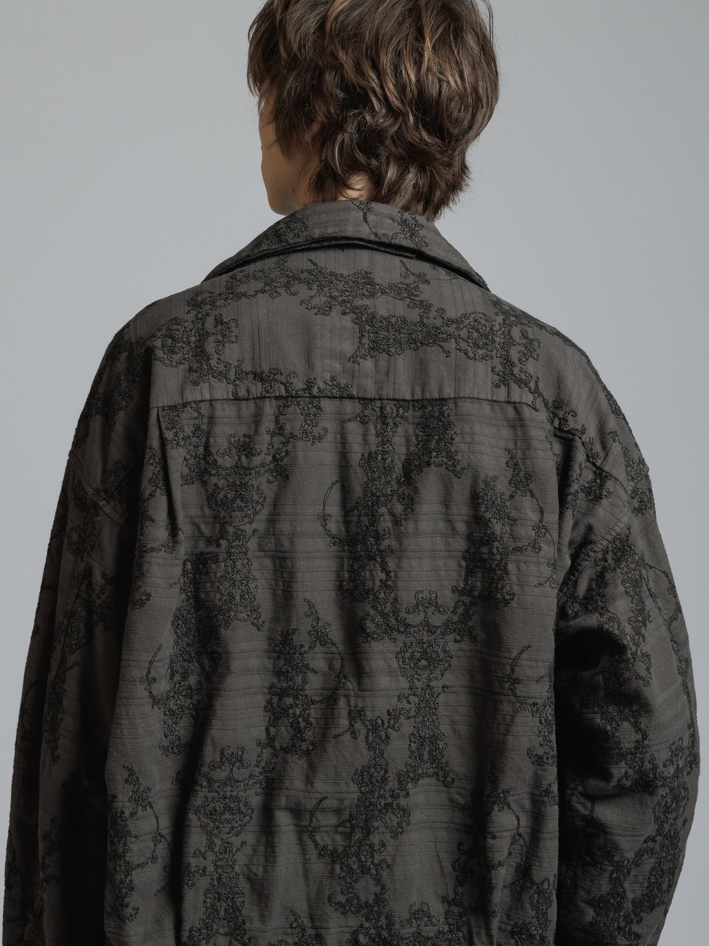 ・ドビーストライプ地にアールヌーボー調の抽象的な柄を全面刺繍