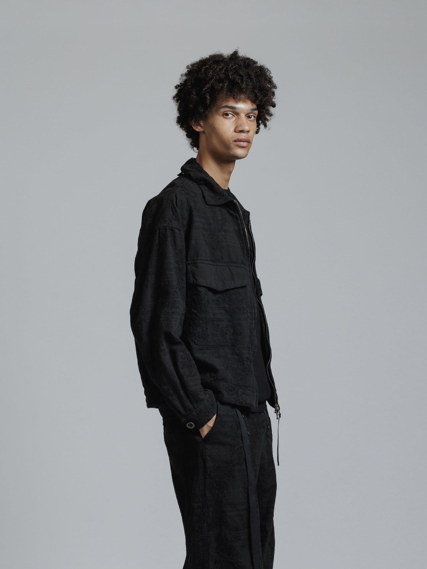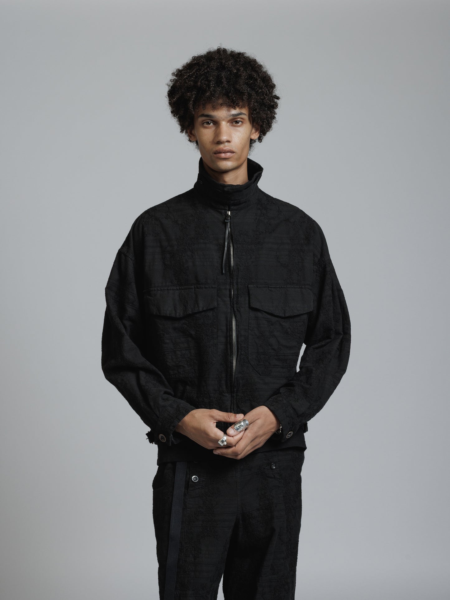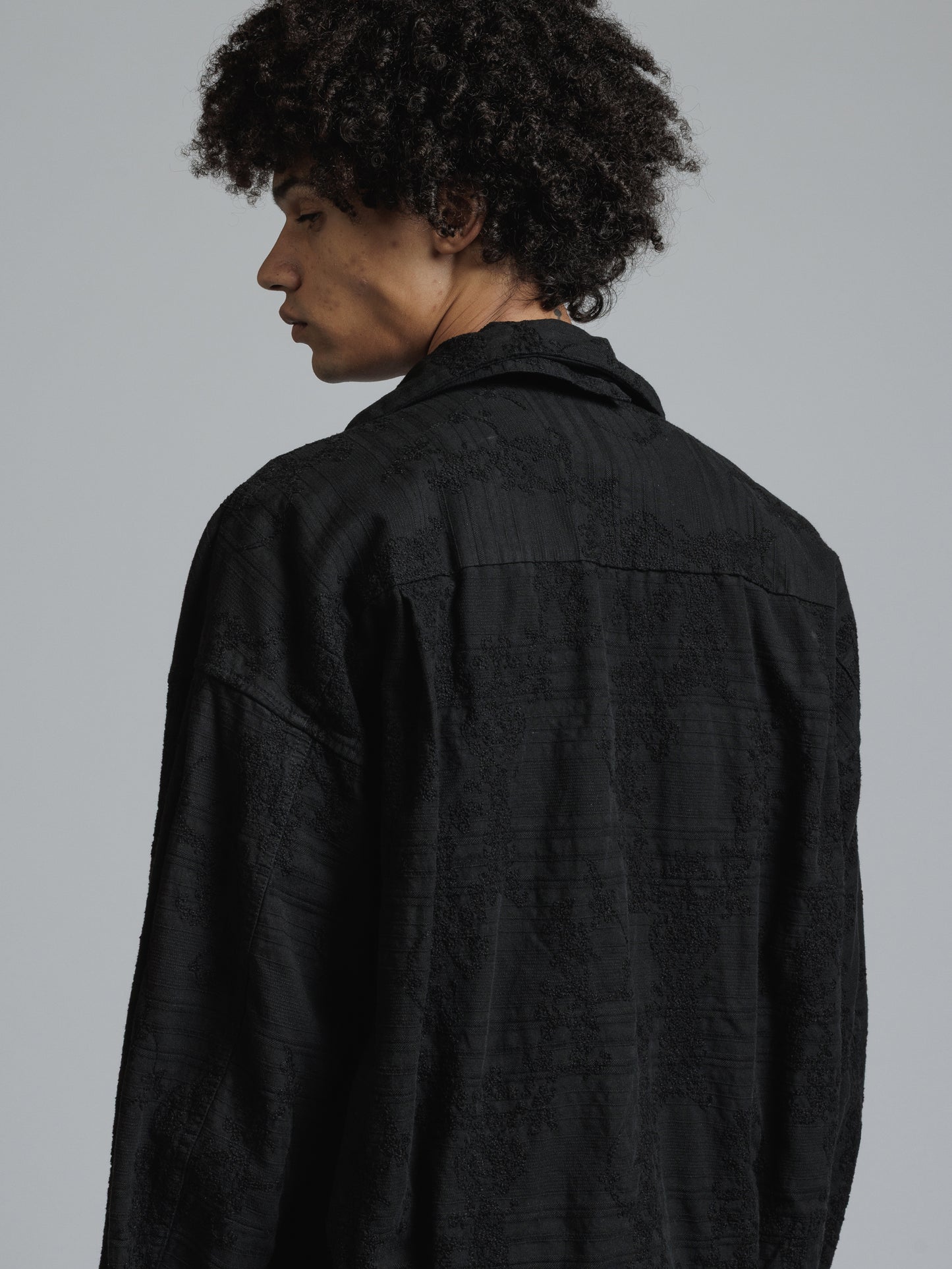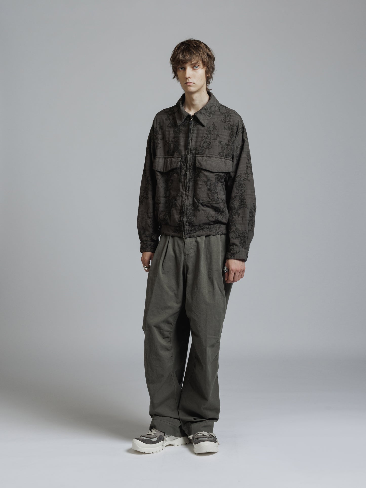 ・ドビーストライプ地にアールヌーボー調の抽象的な柄を全面刺繍