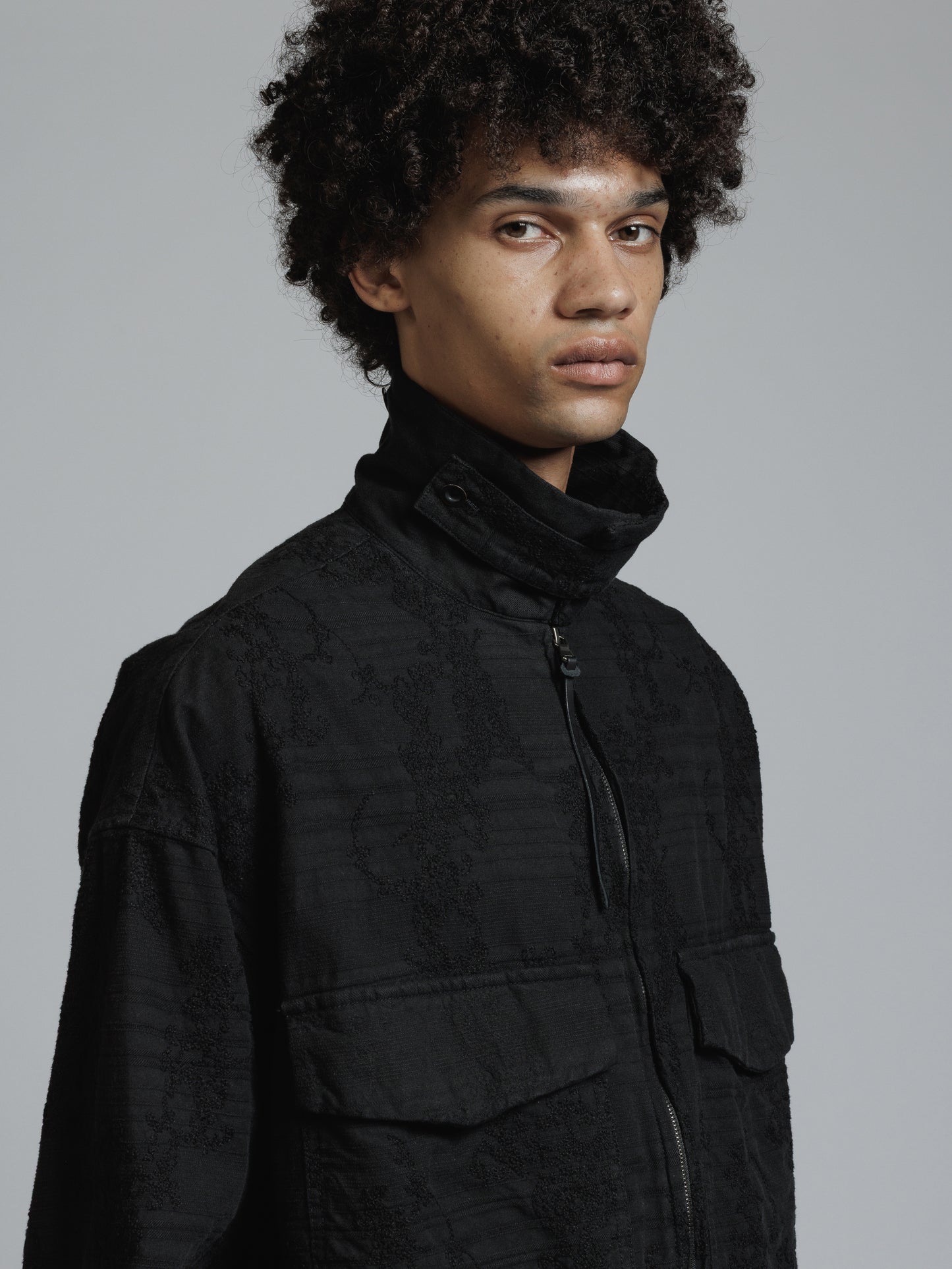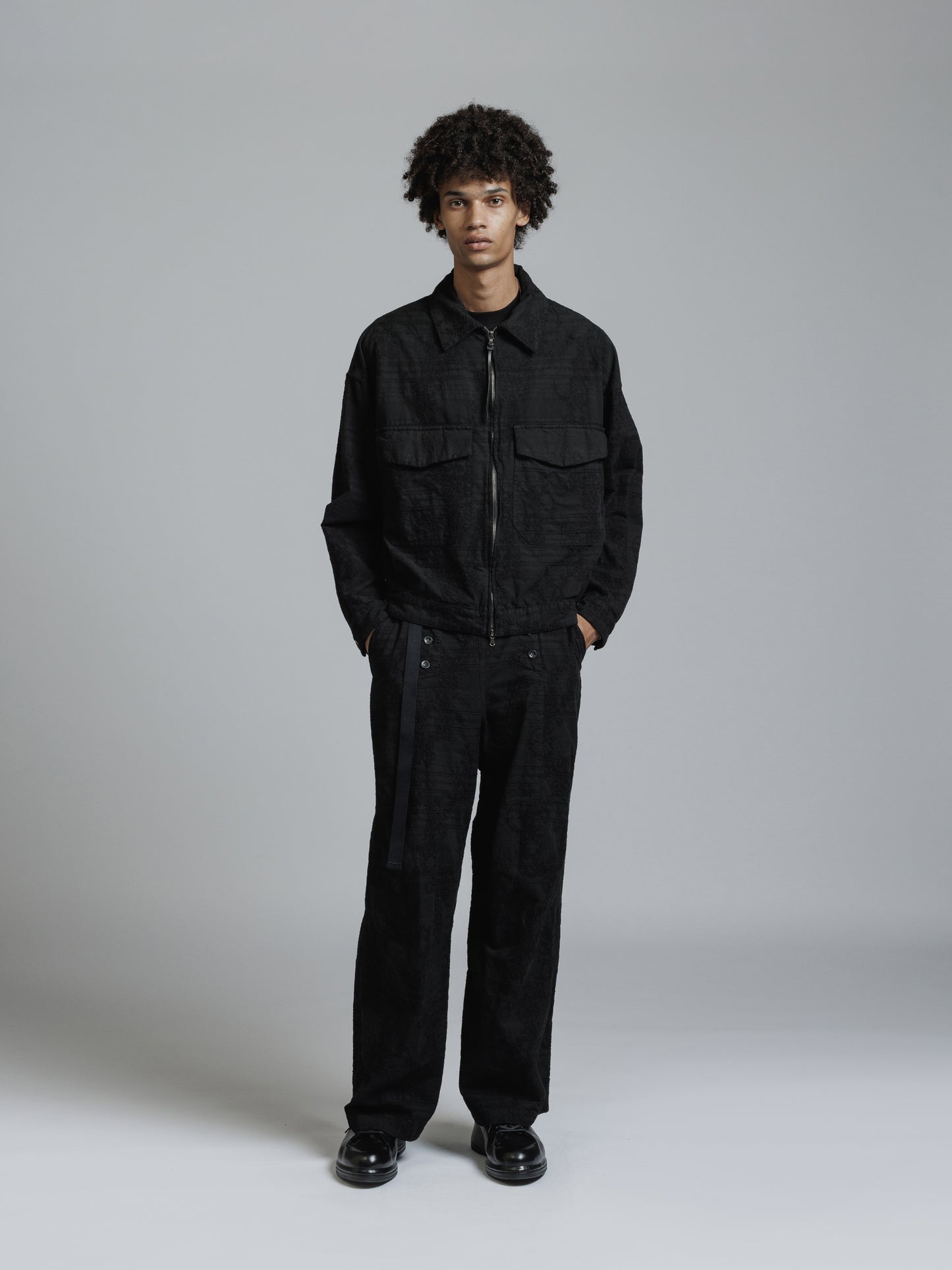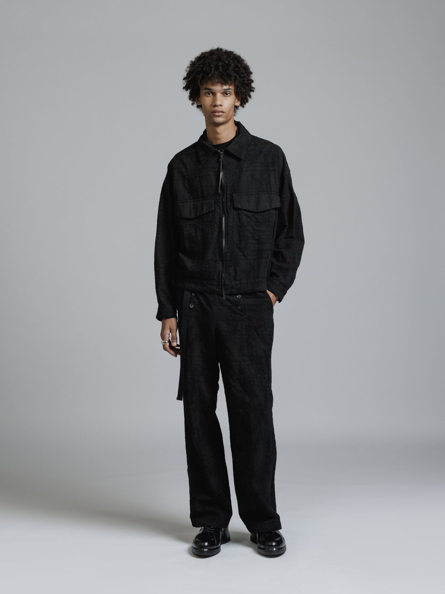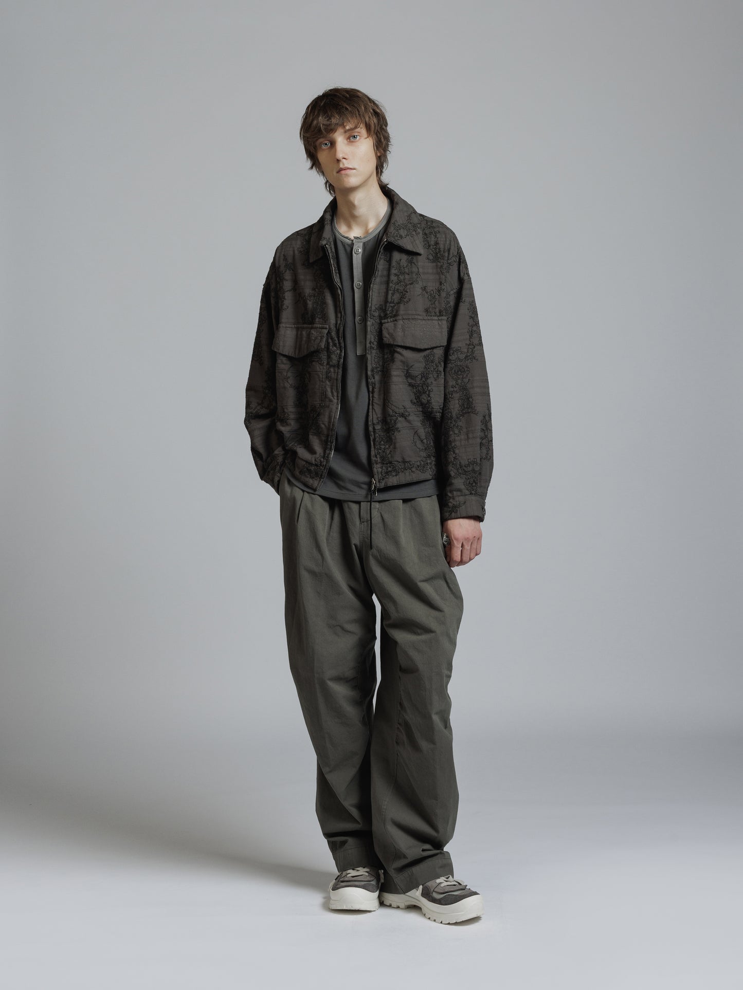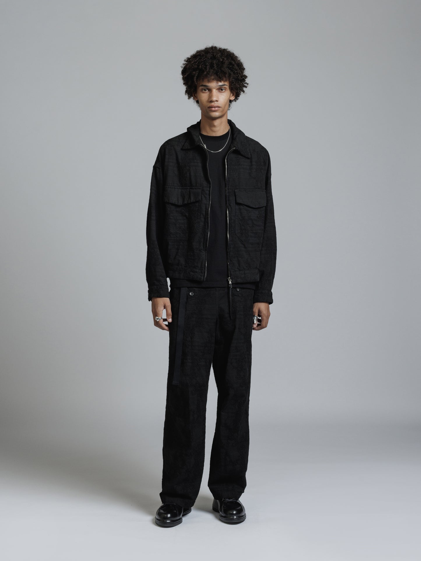 ・ドビーストライプ地にアールヌーボー調の抽象的な柄を全面刺繍