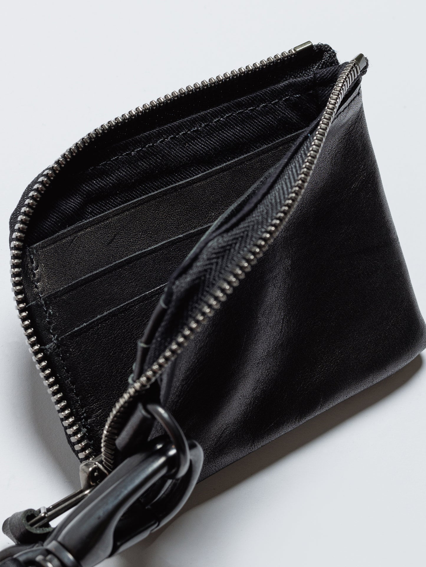 ファスナー明き仕様で同時にお札や小銭なども収納可能なミニウォレットです。