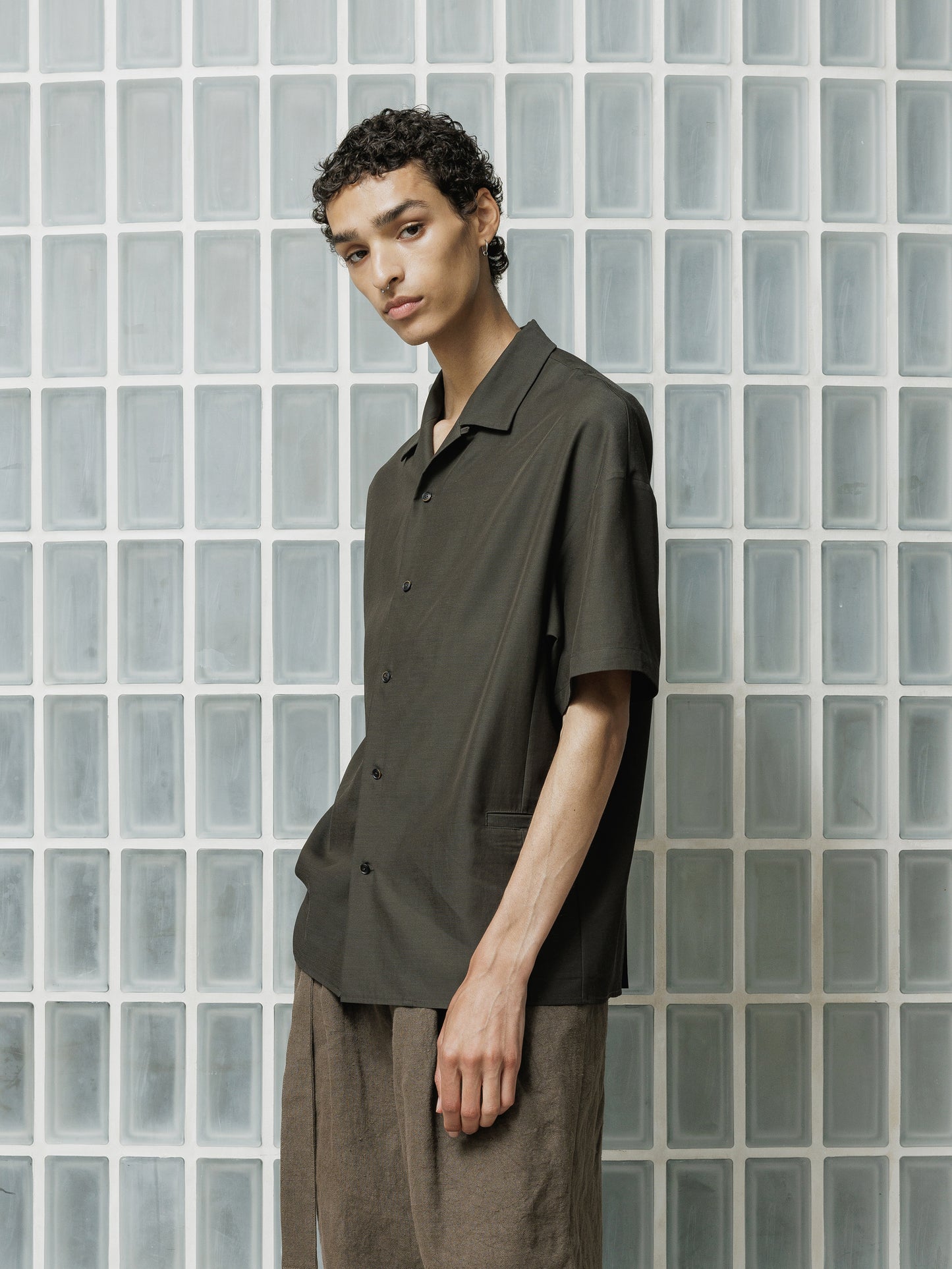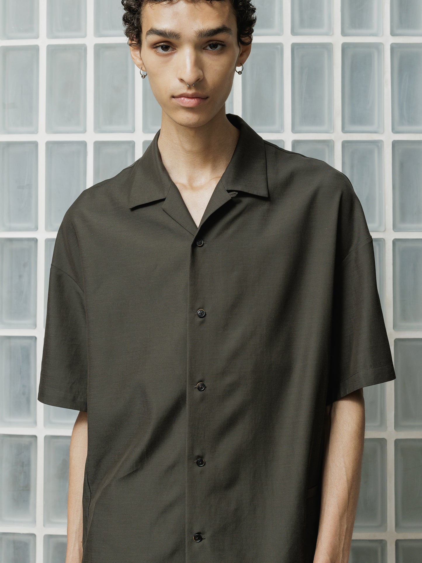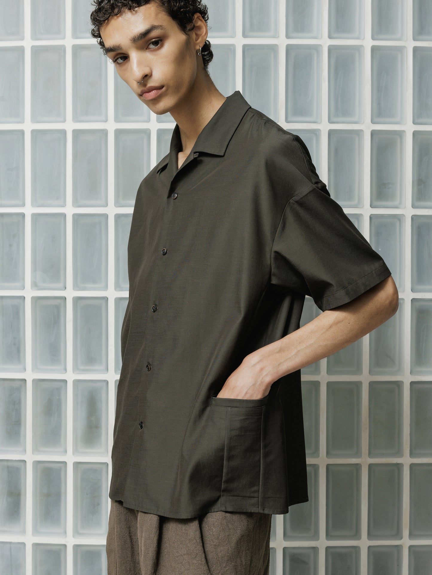 軽量で落ち感のある素材を使用した開襟シャツ。