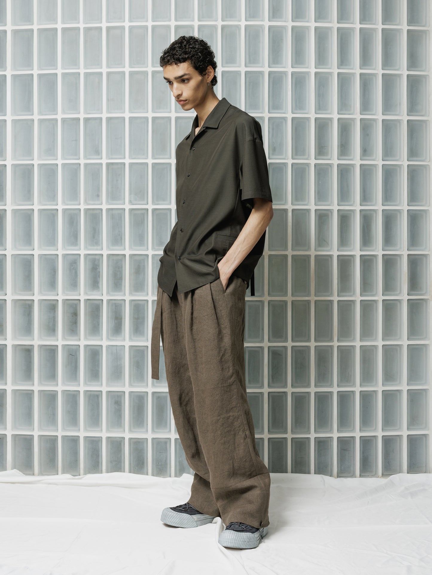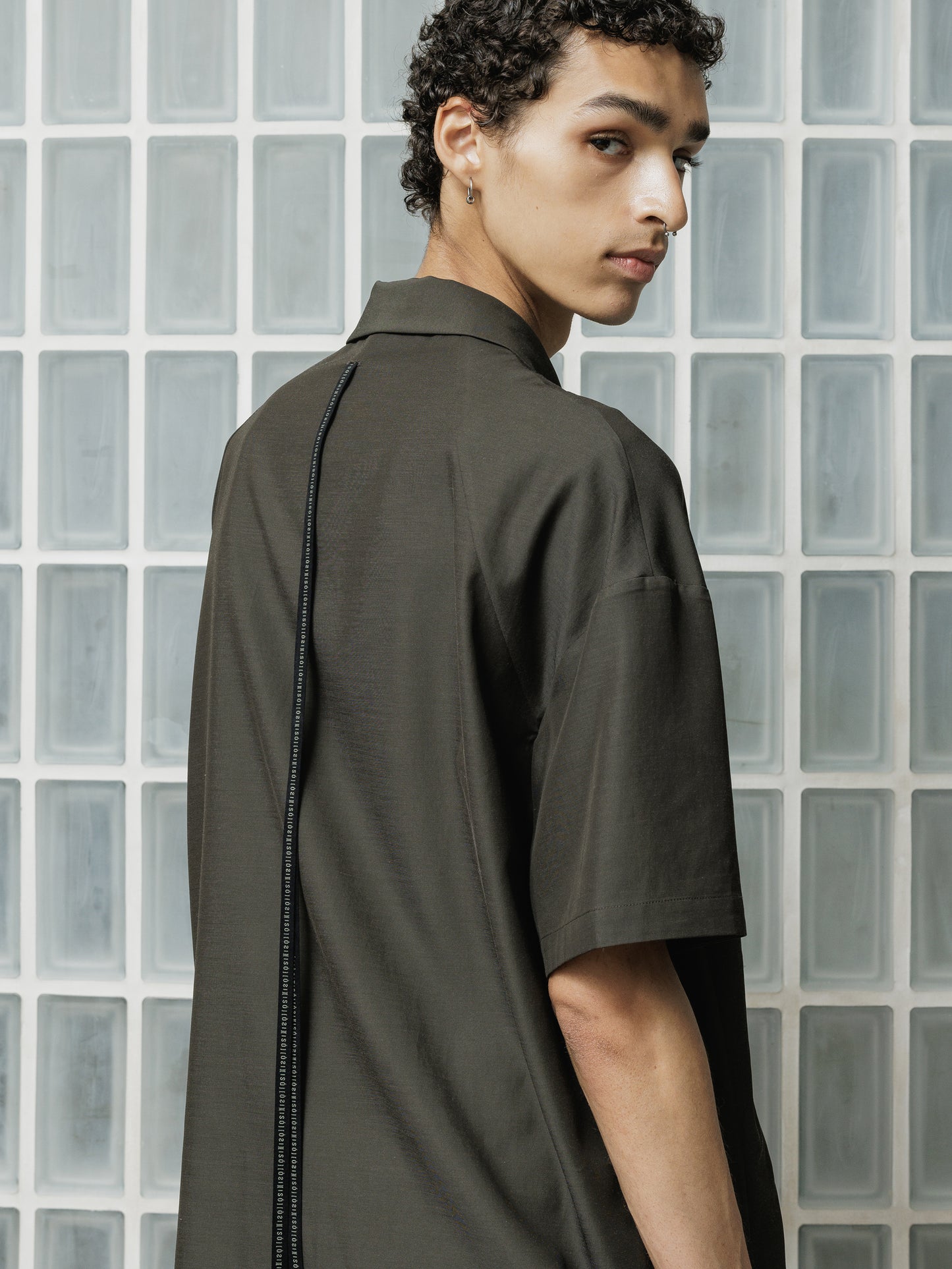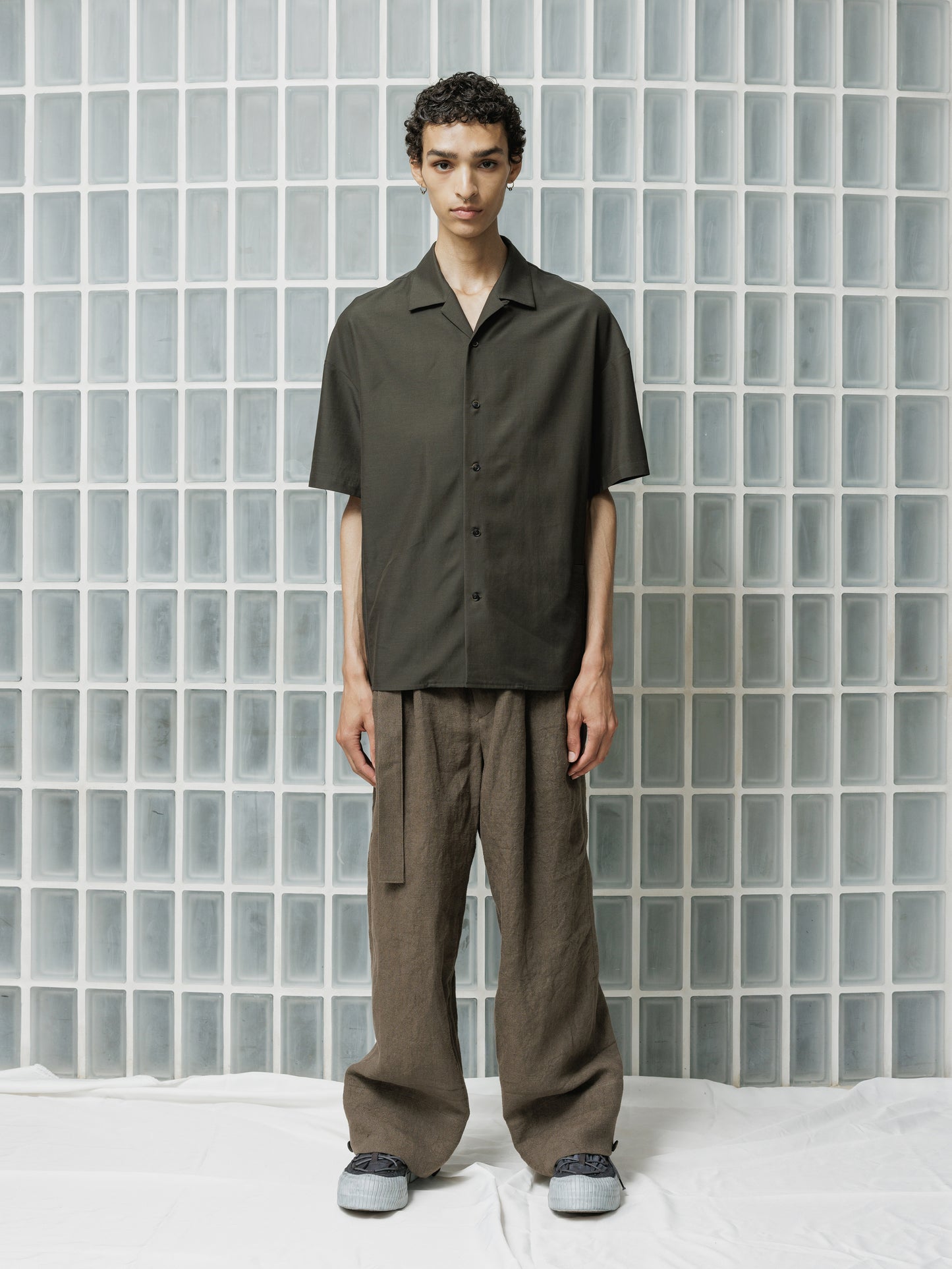 軽量で落ち感のある素材を使用した開襟シャツ。