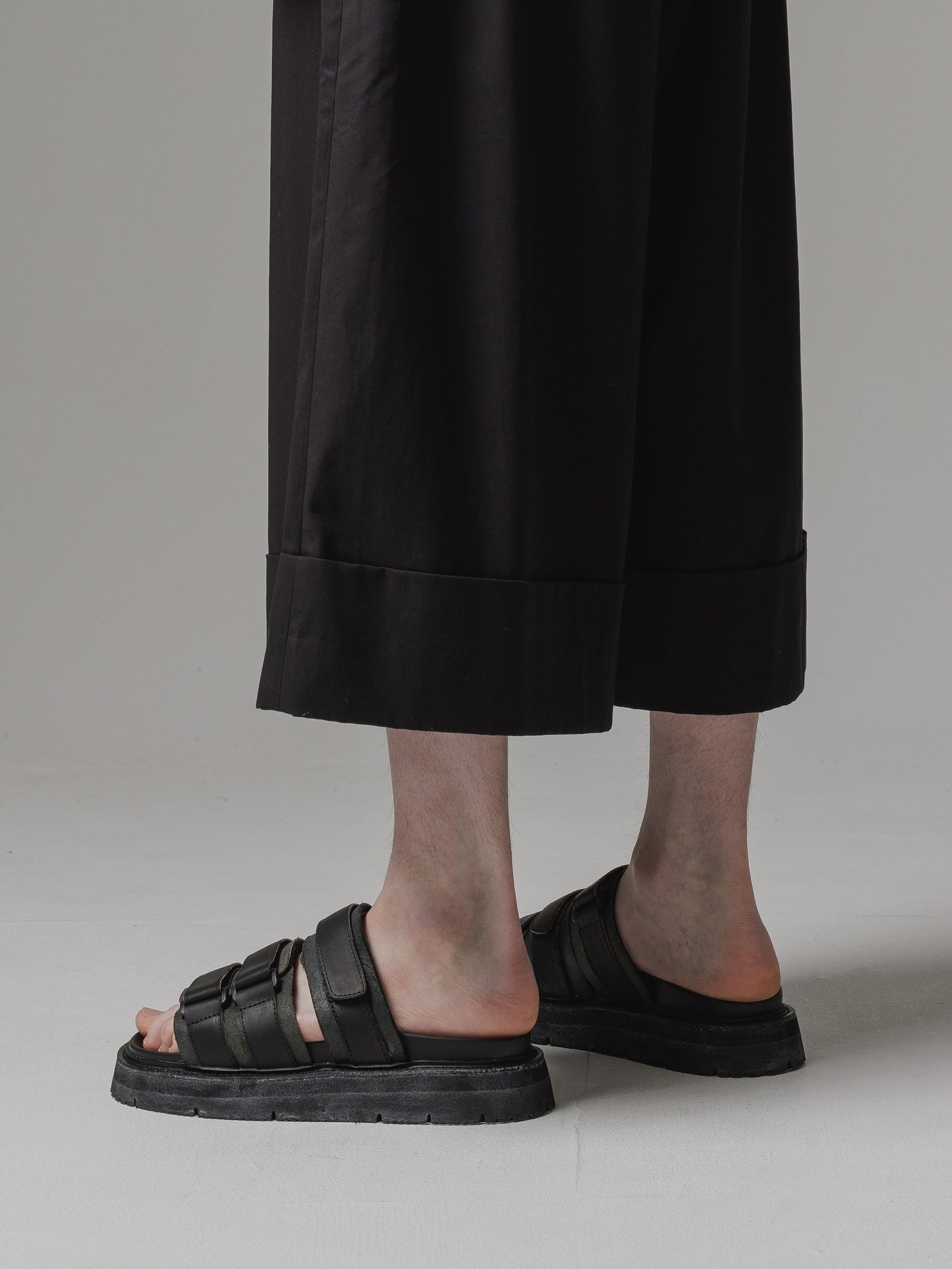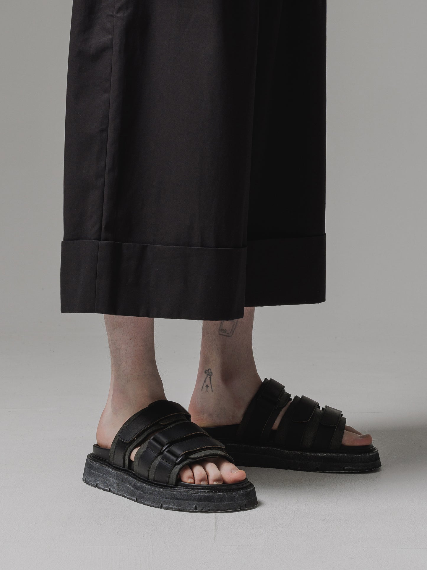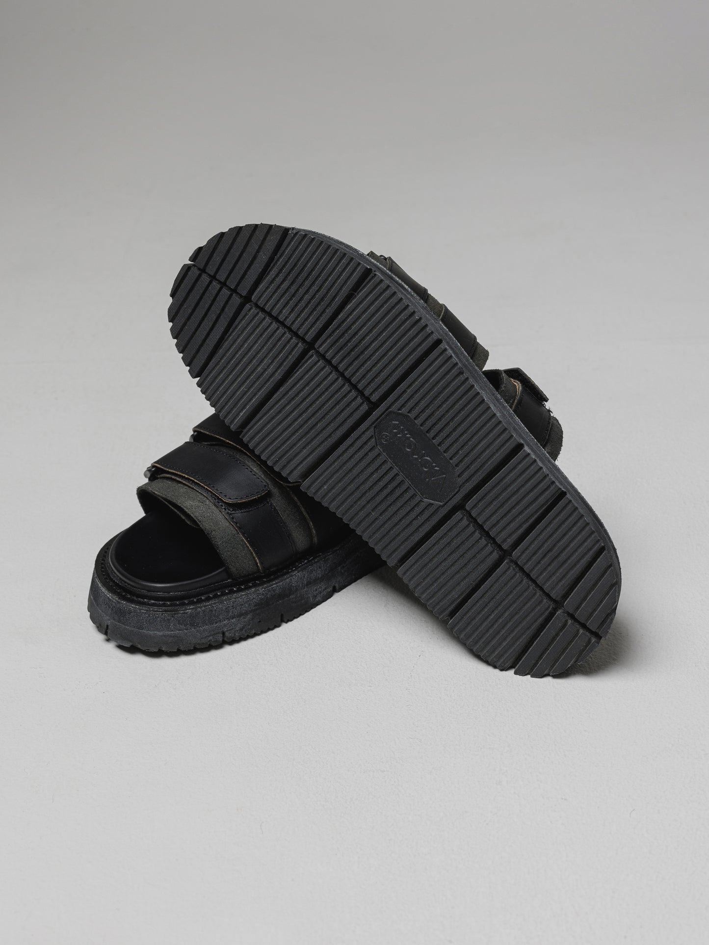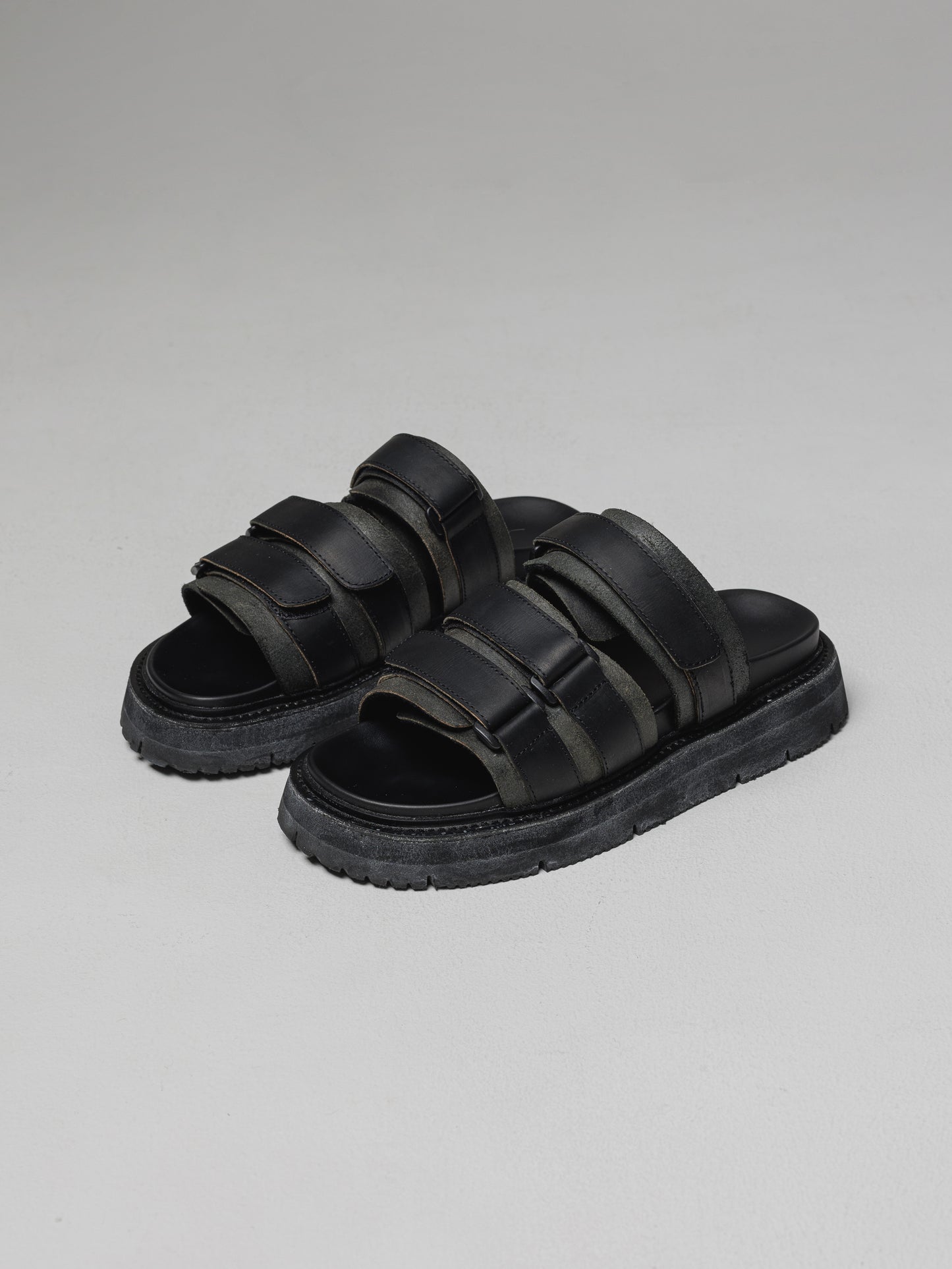 アッパー部分ベルクロ仕様のレザーサンダル。