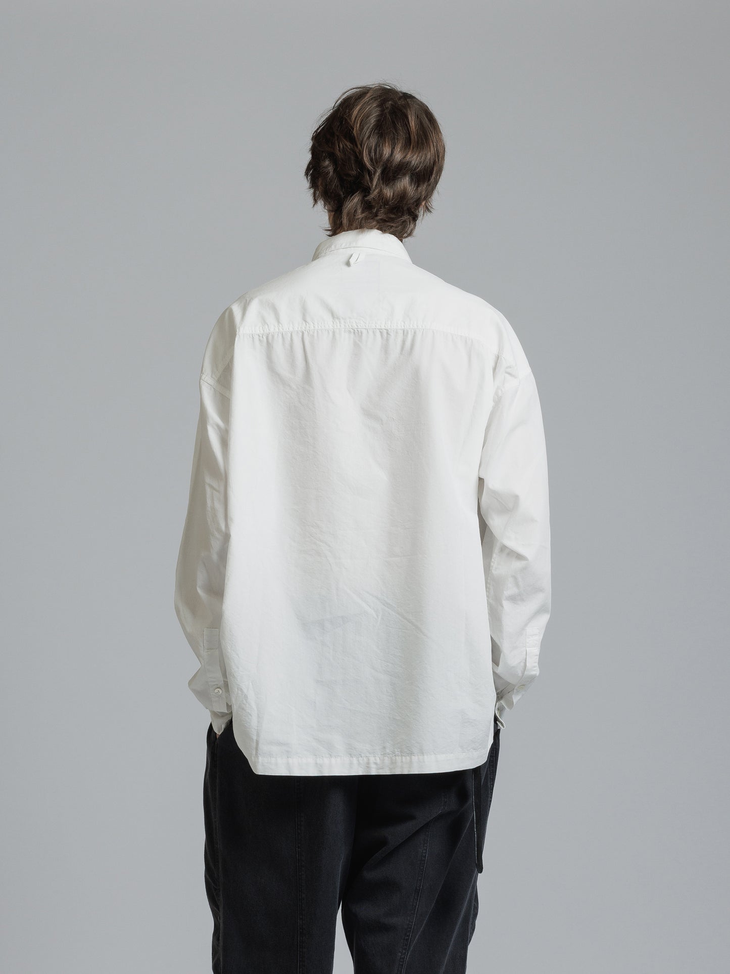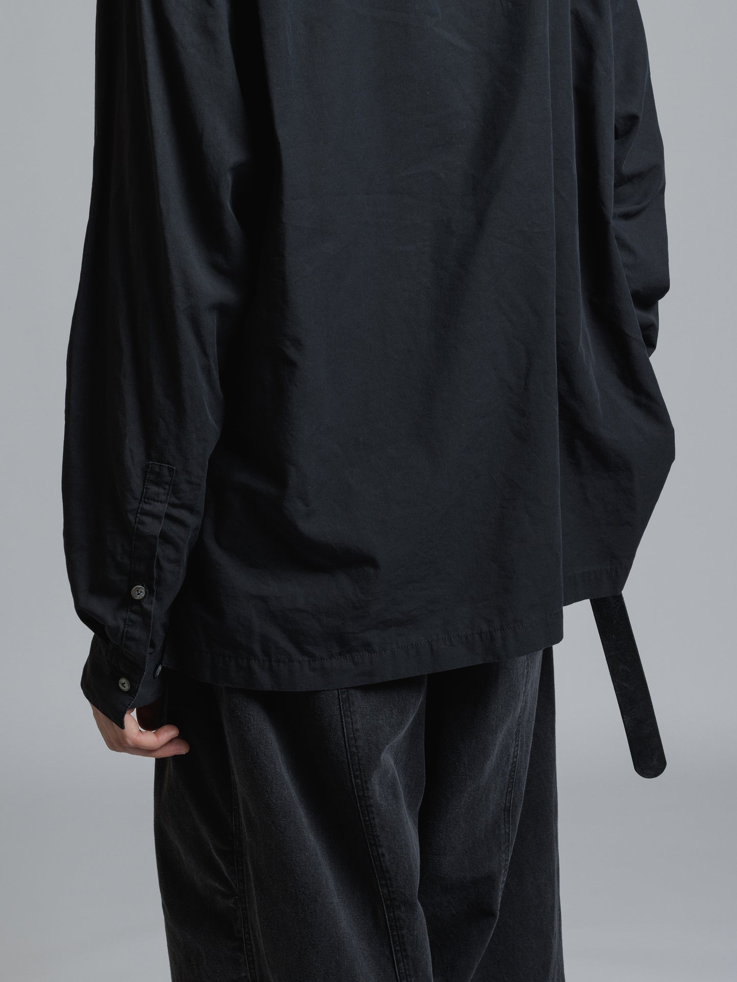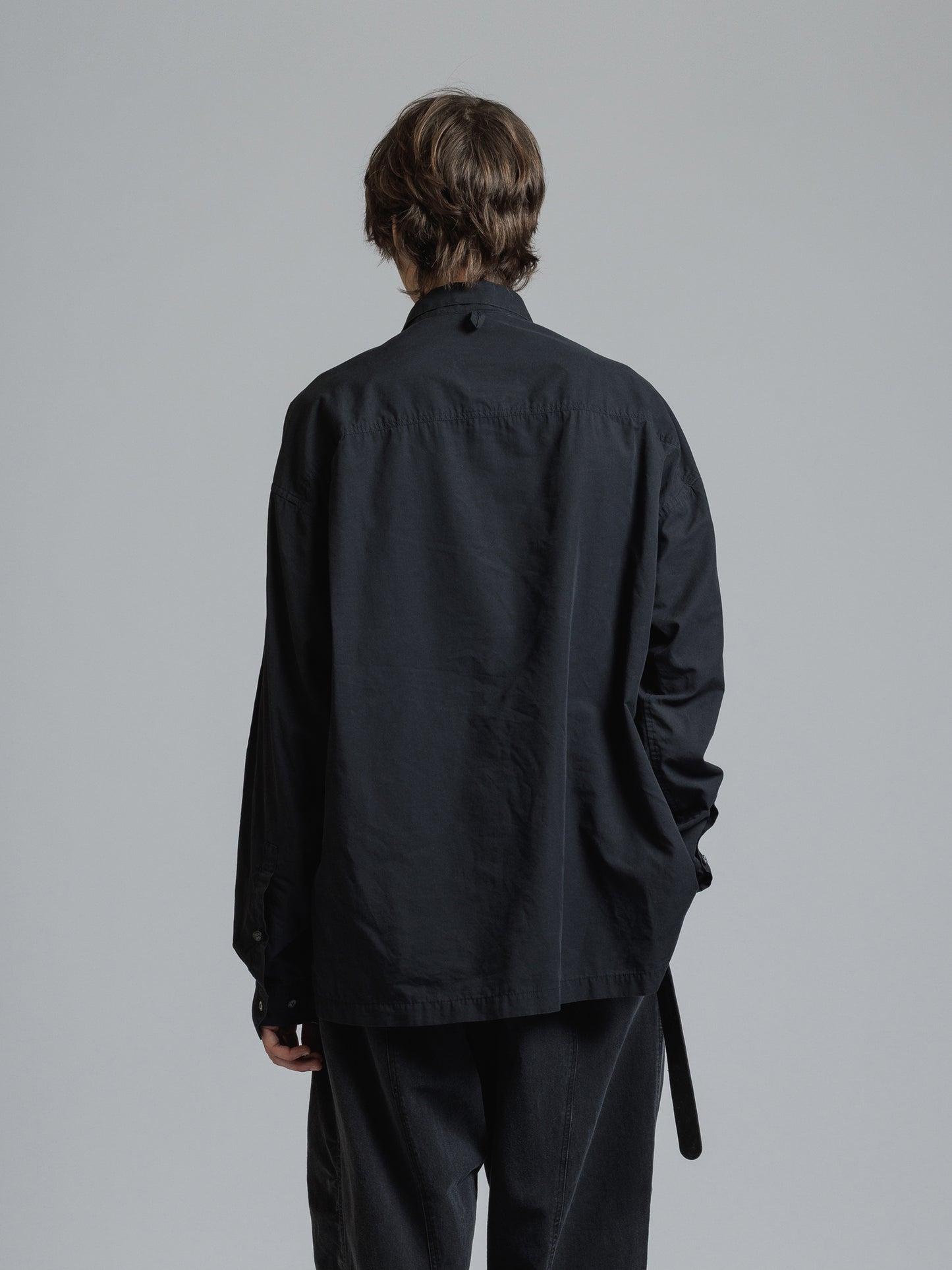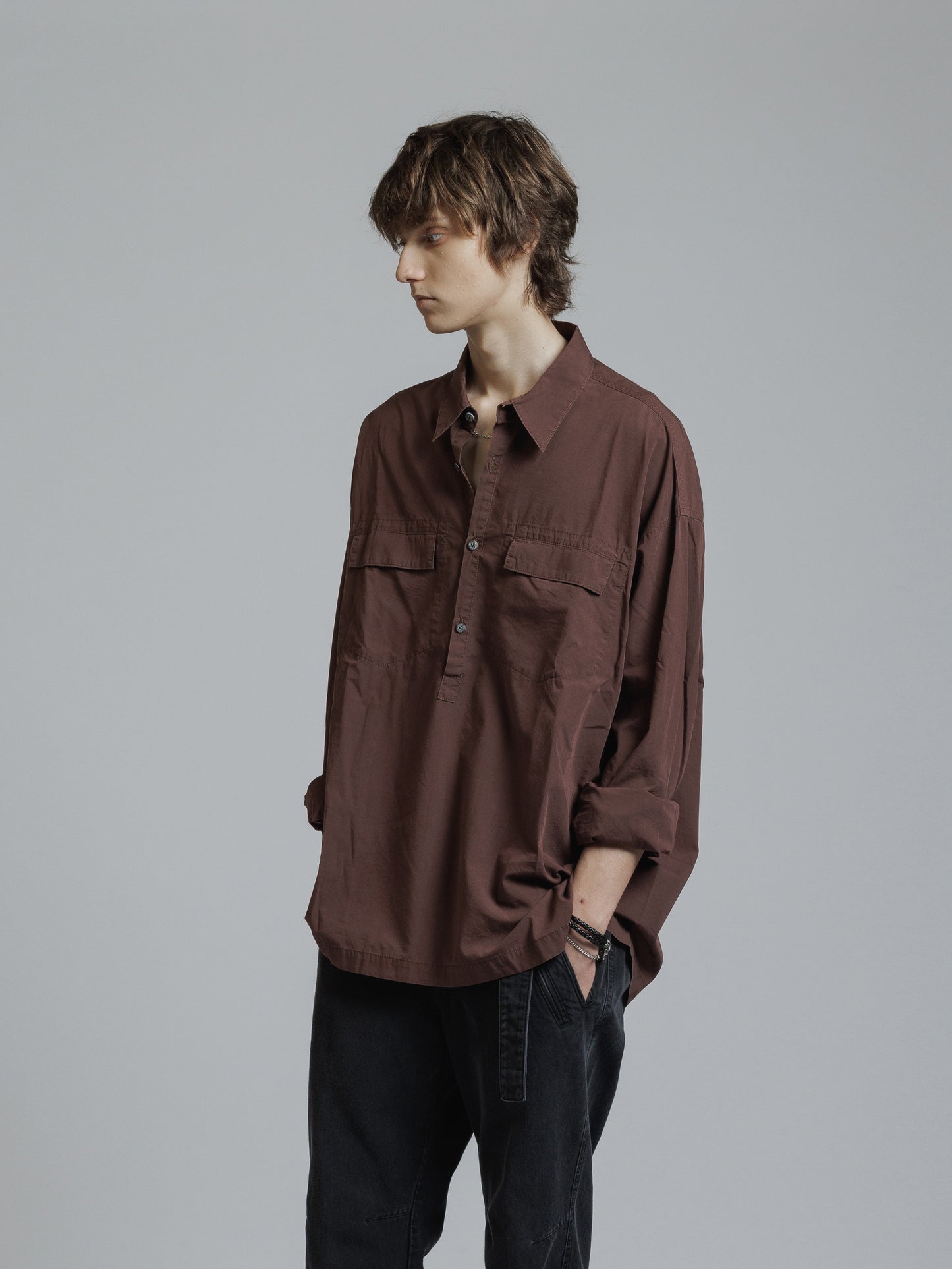 ・フロント上部釦明きの長袖シャツ
