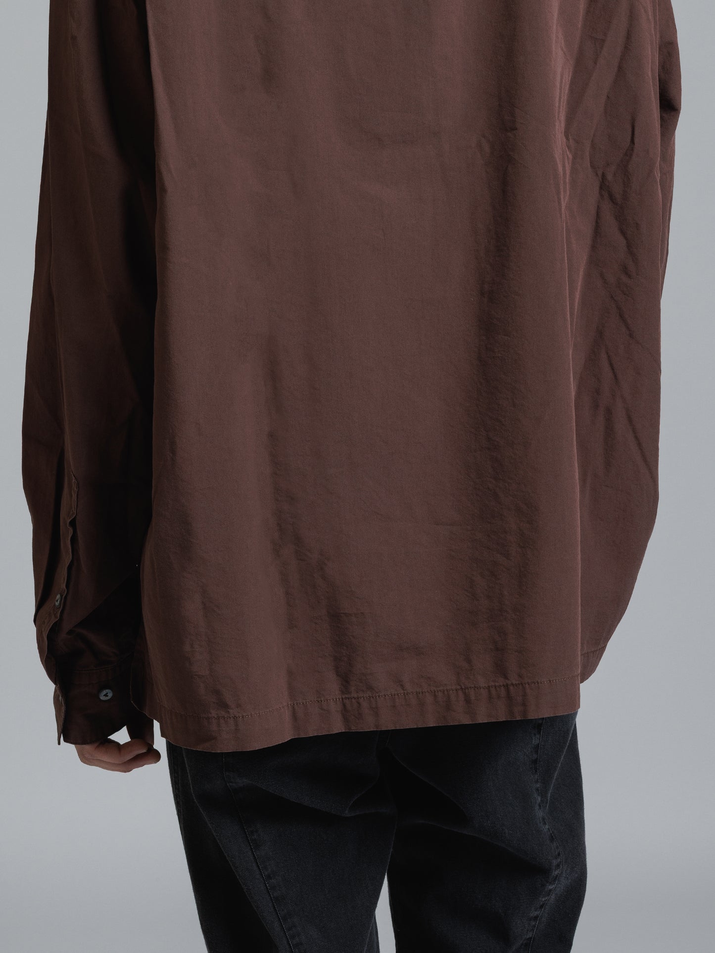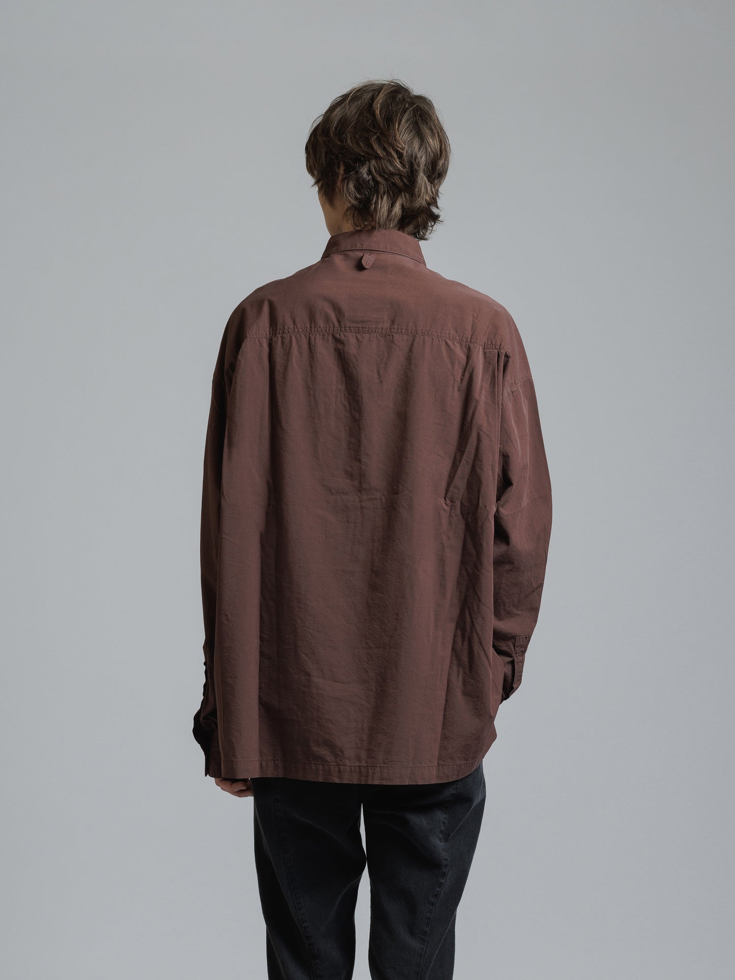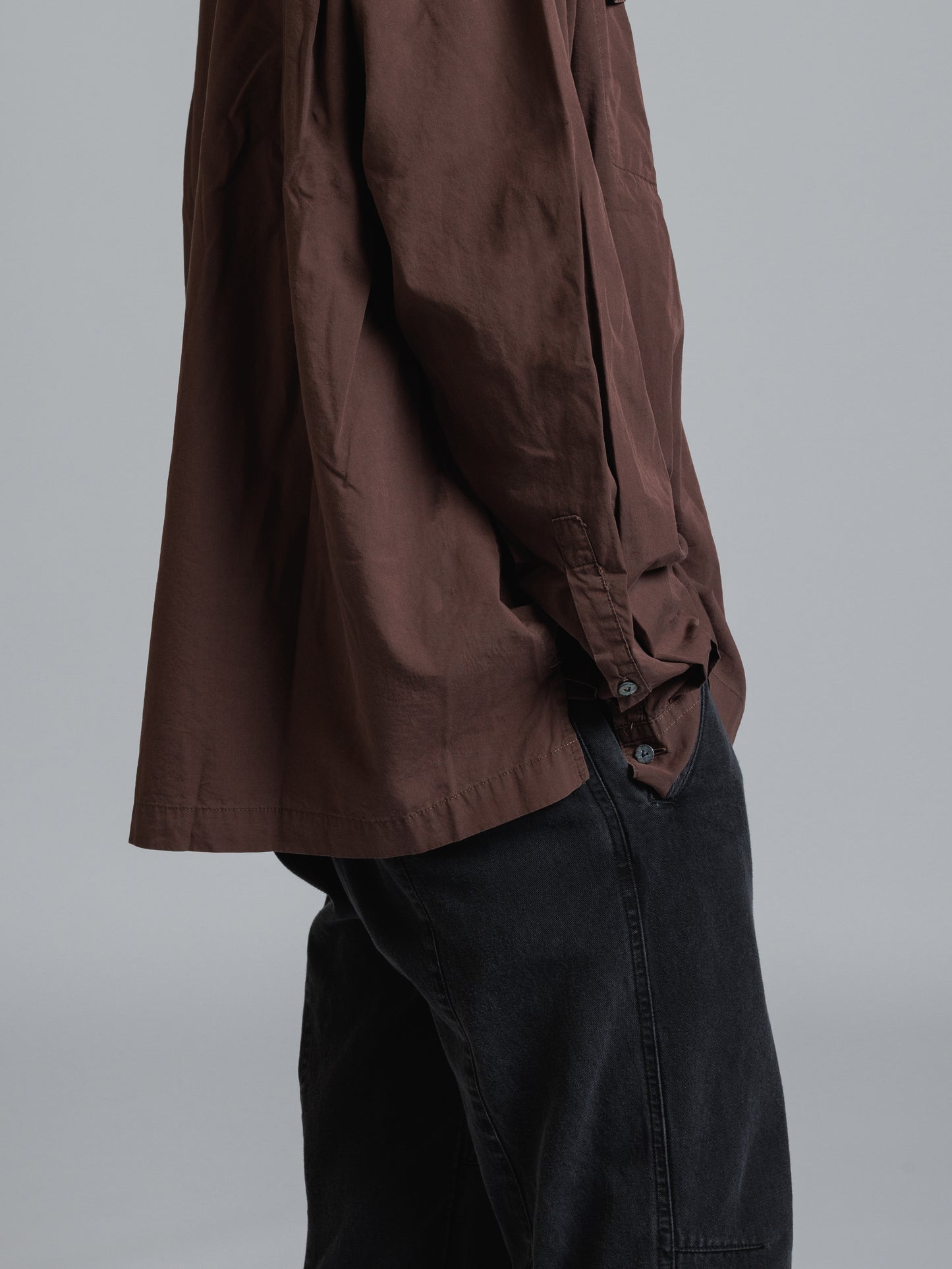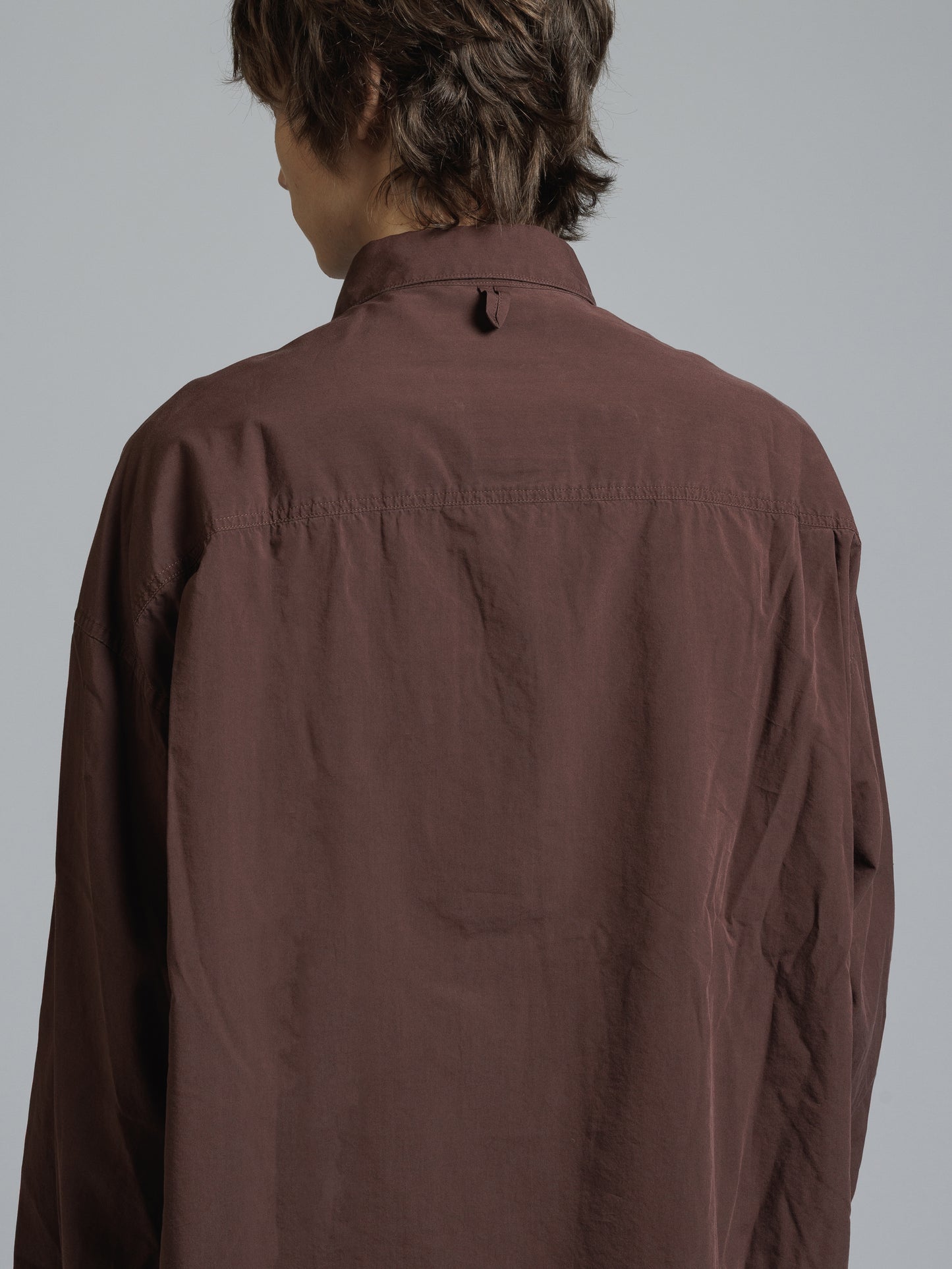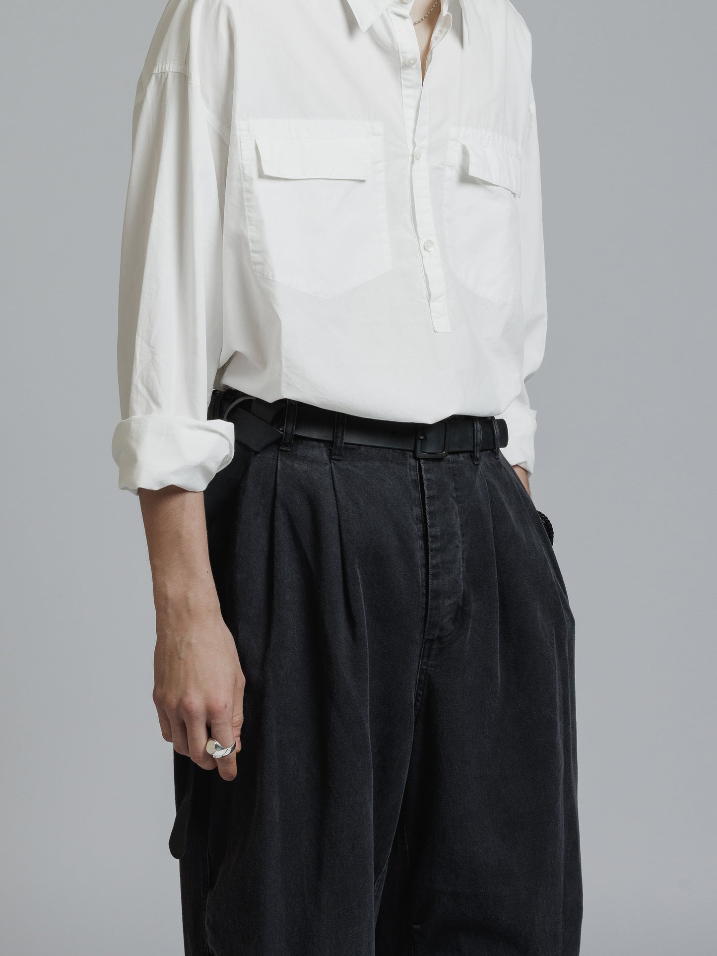 ・フロント上部釦明きの長袖シャツ