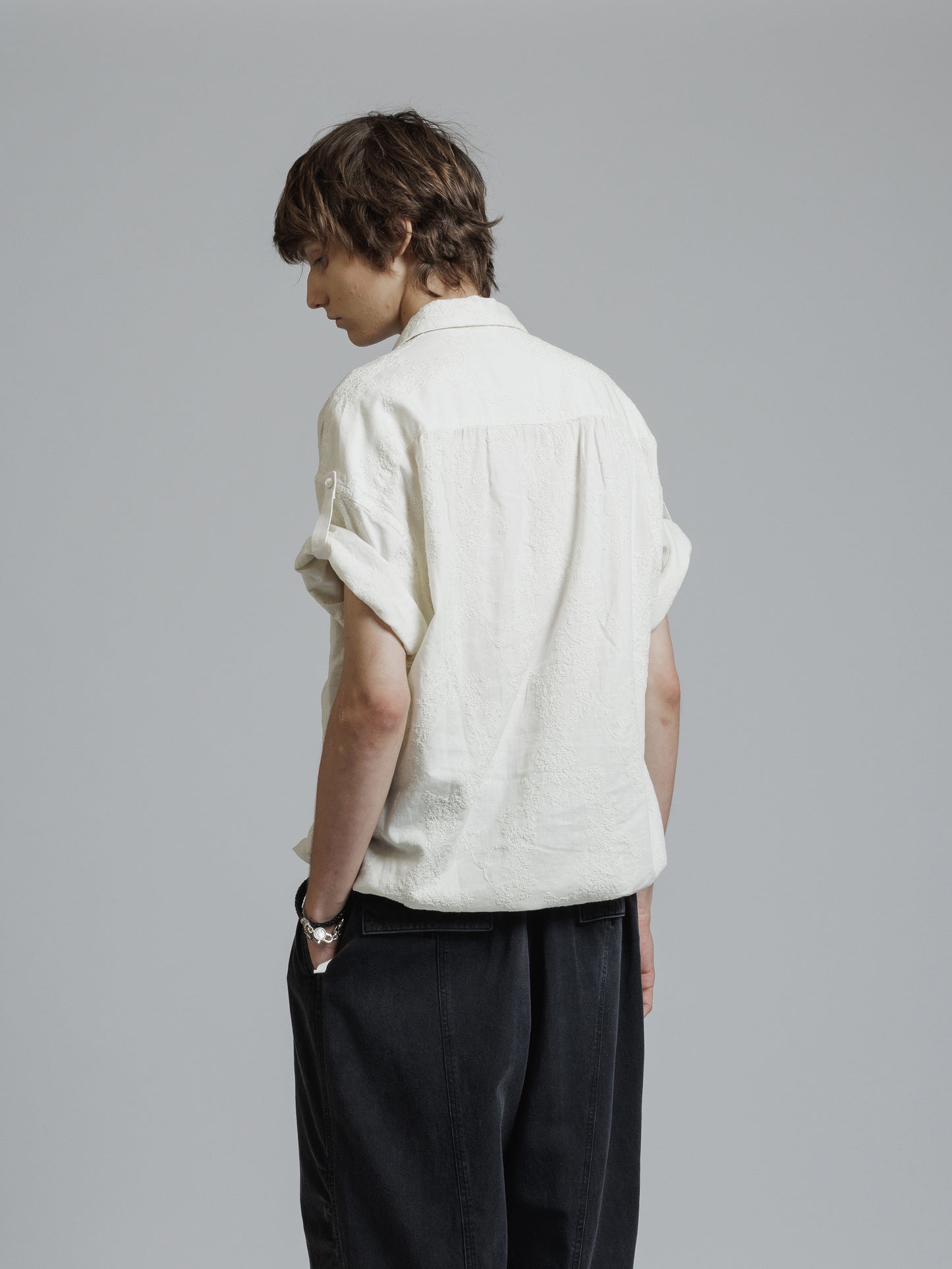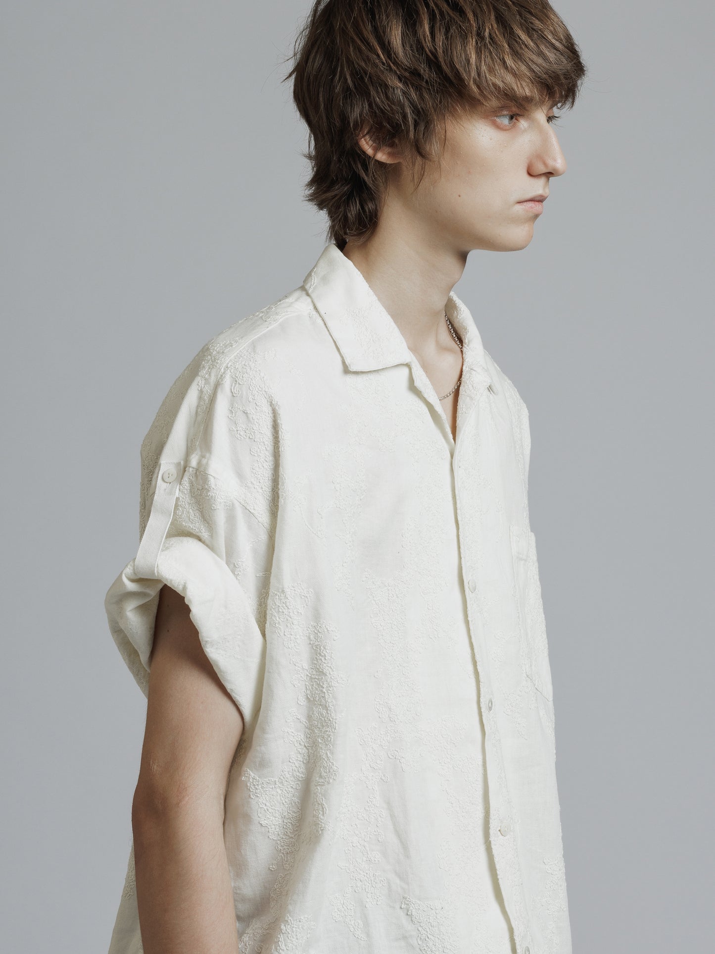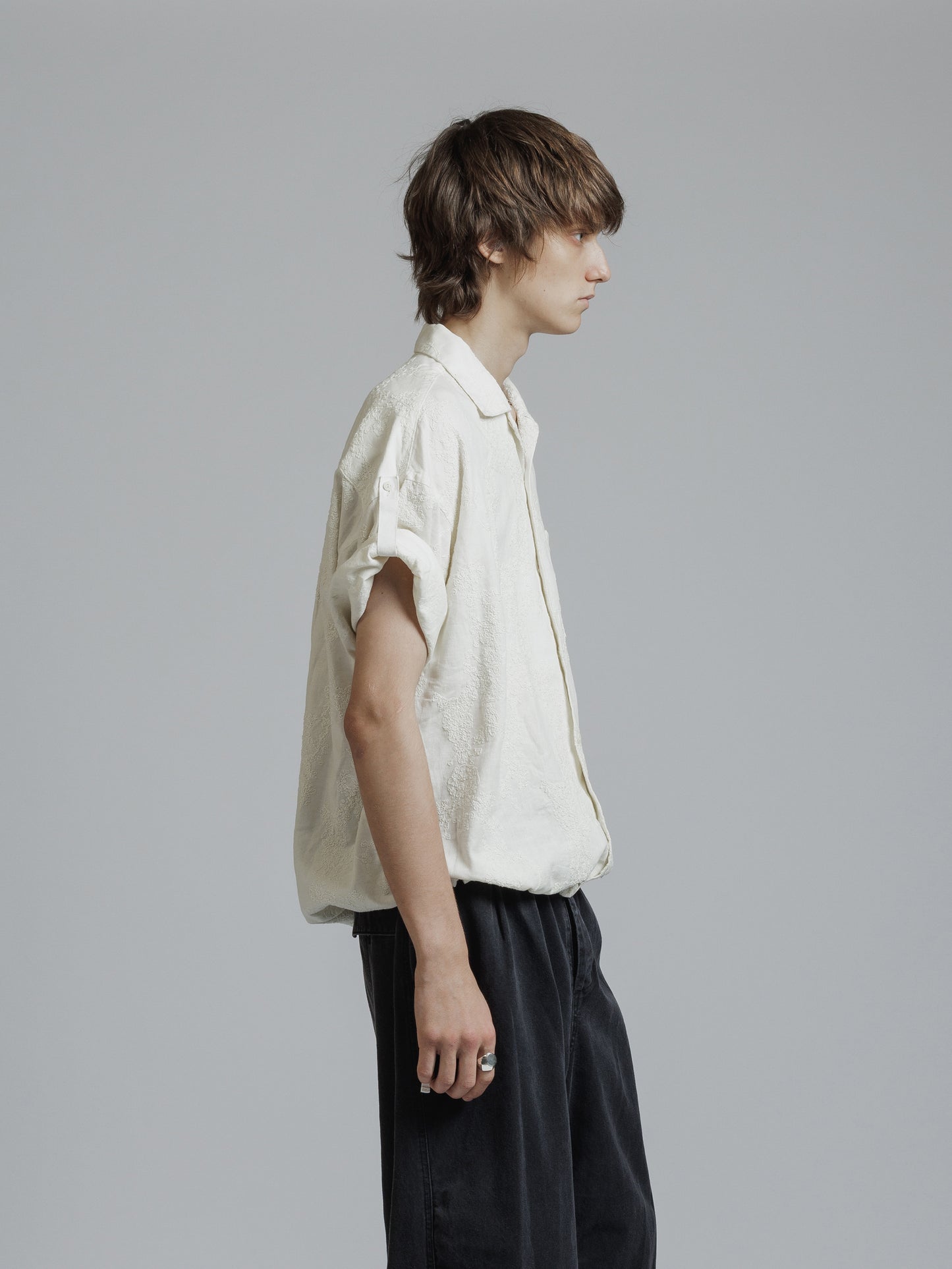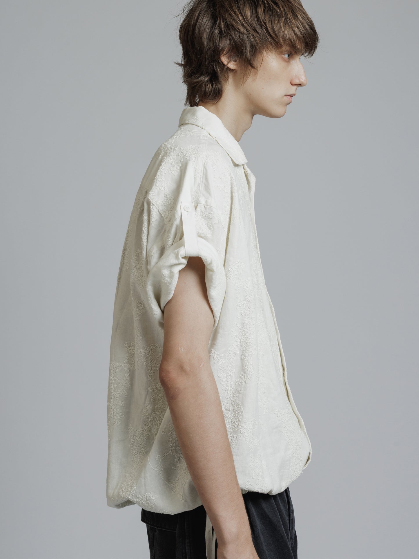 ・ドロップショルダーの五分袖シャツ