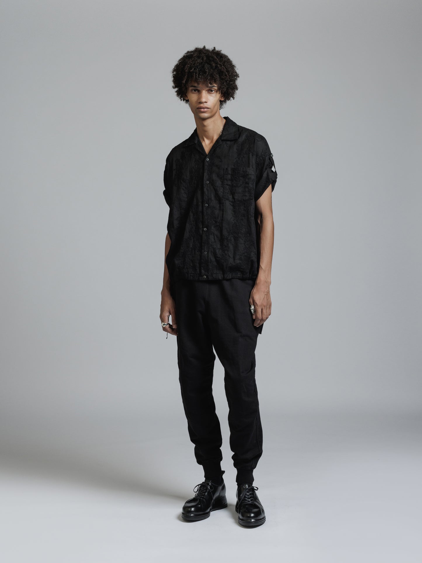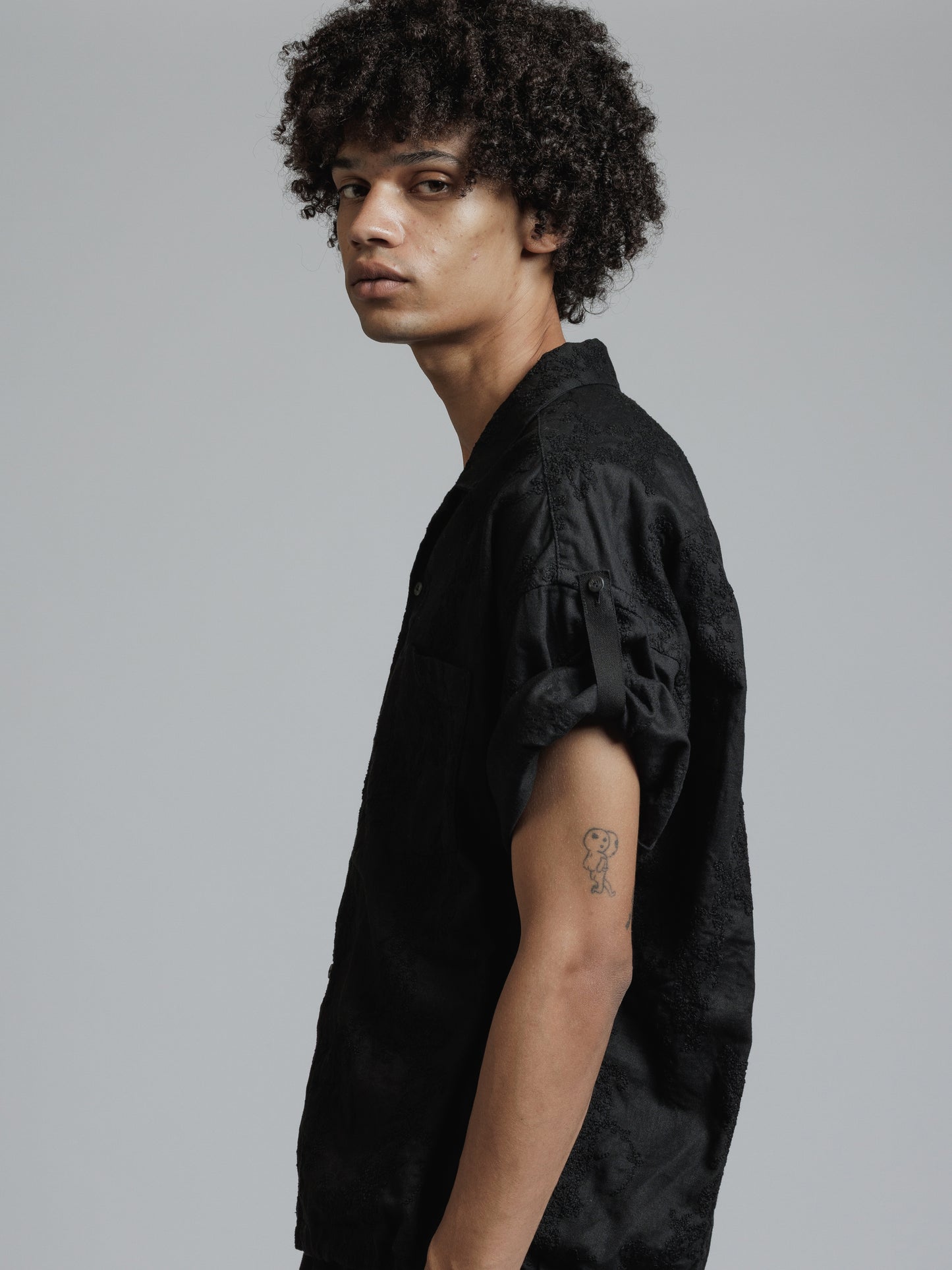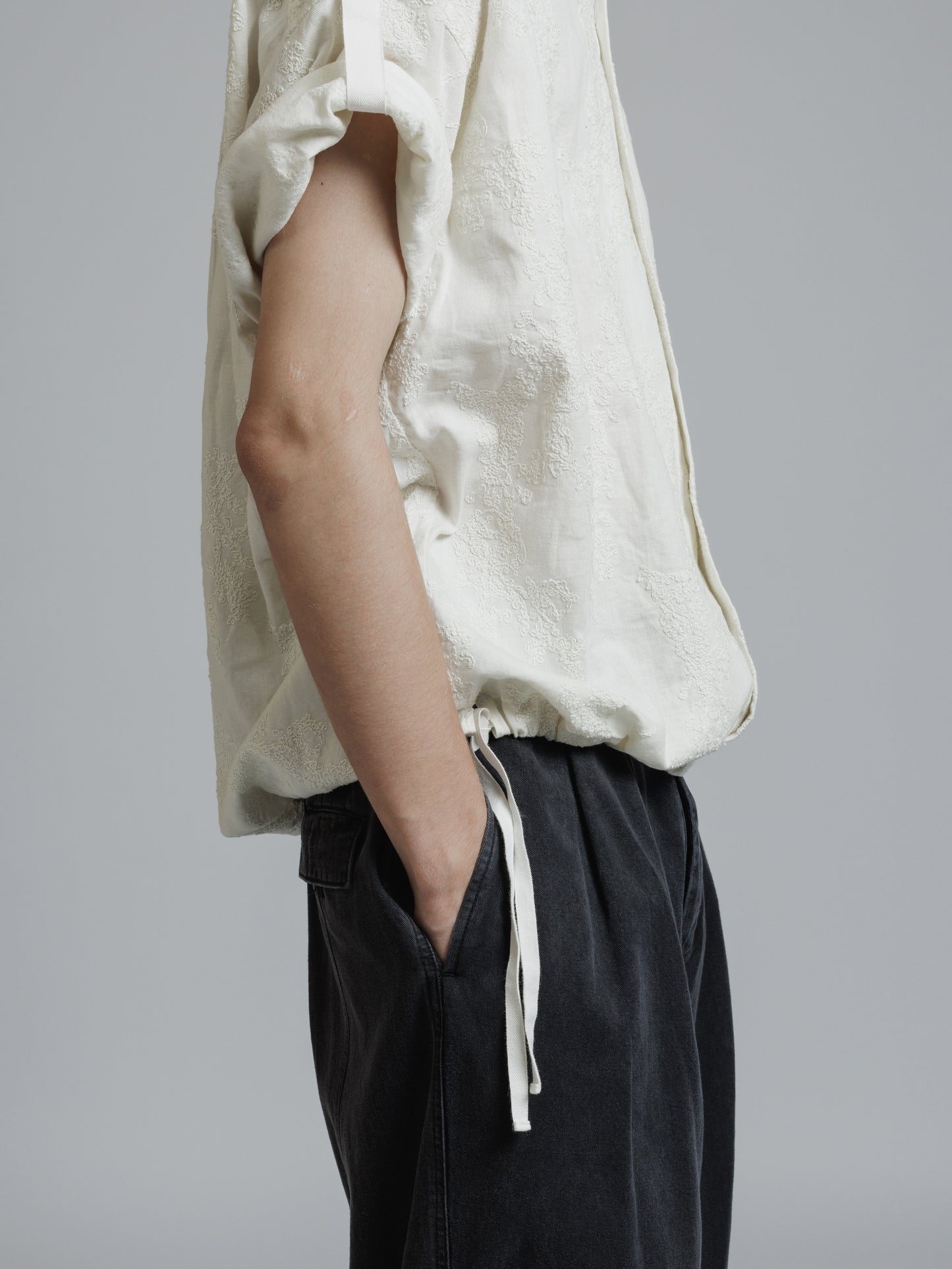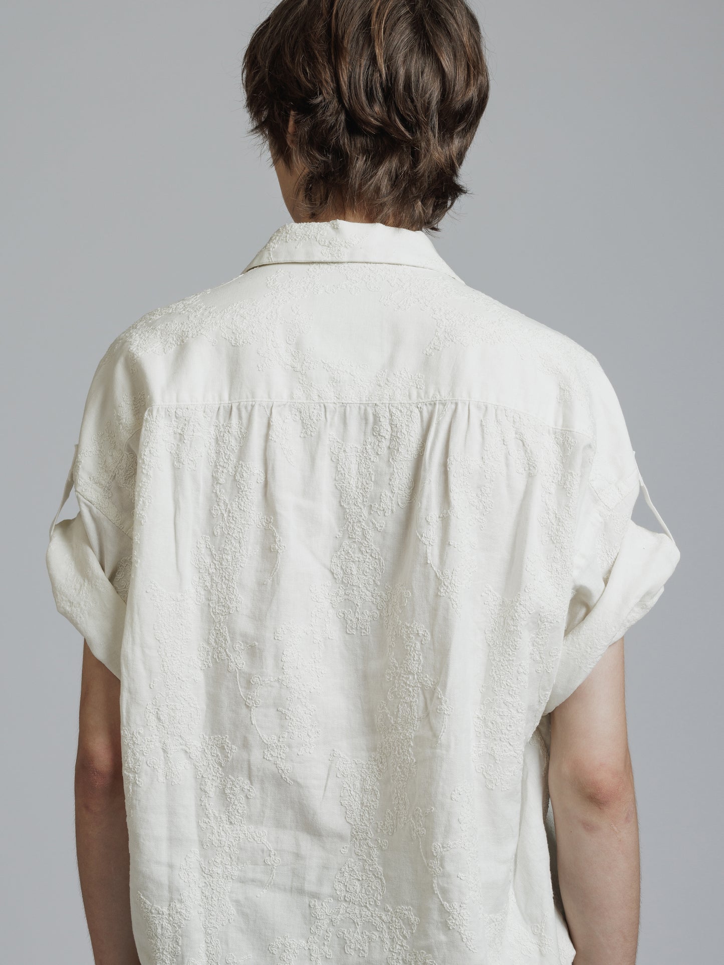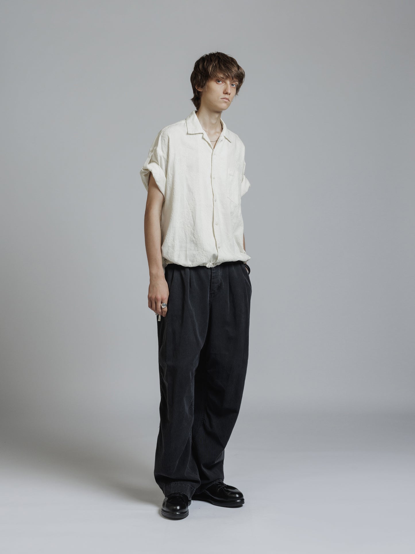 ・ドロップショルダーの五分袖シャツ