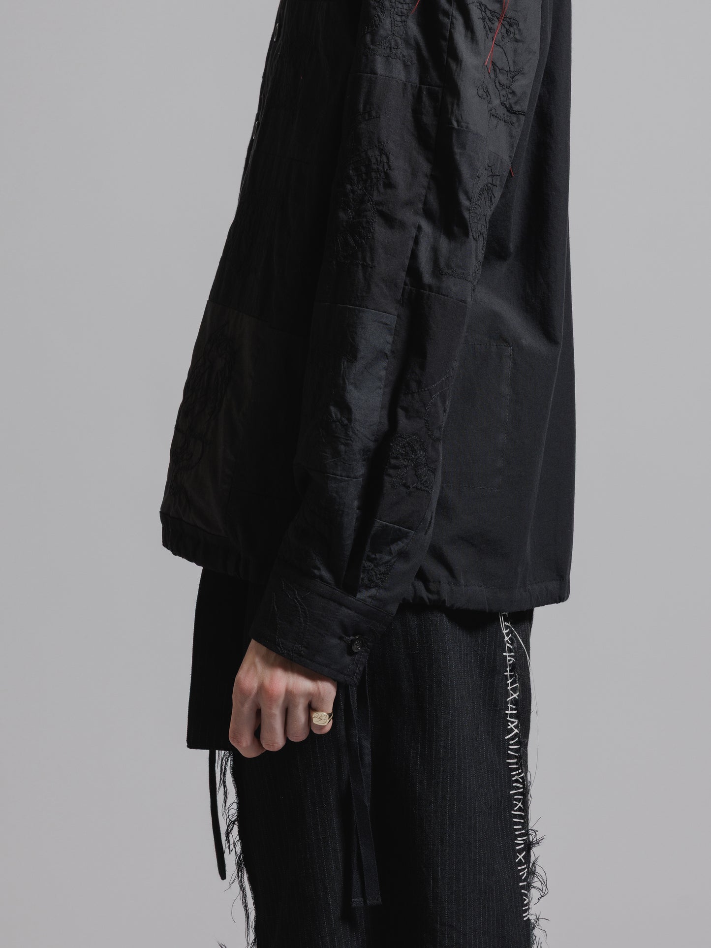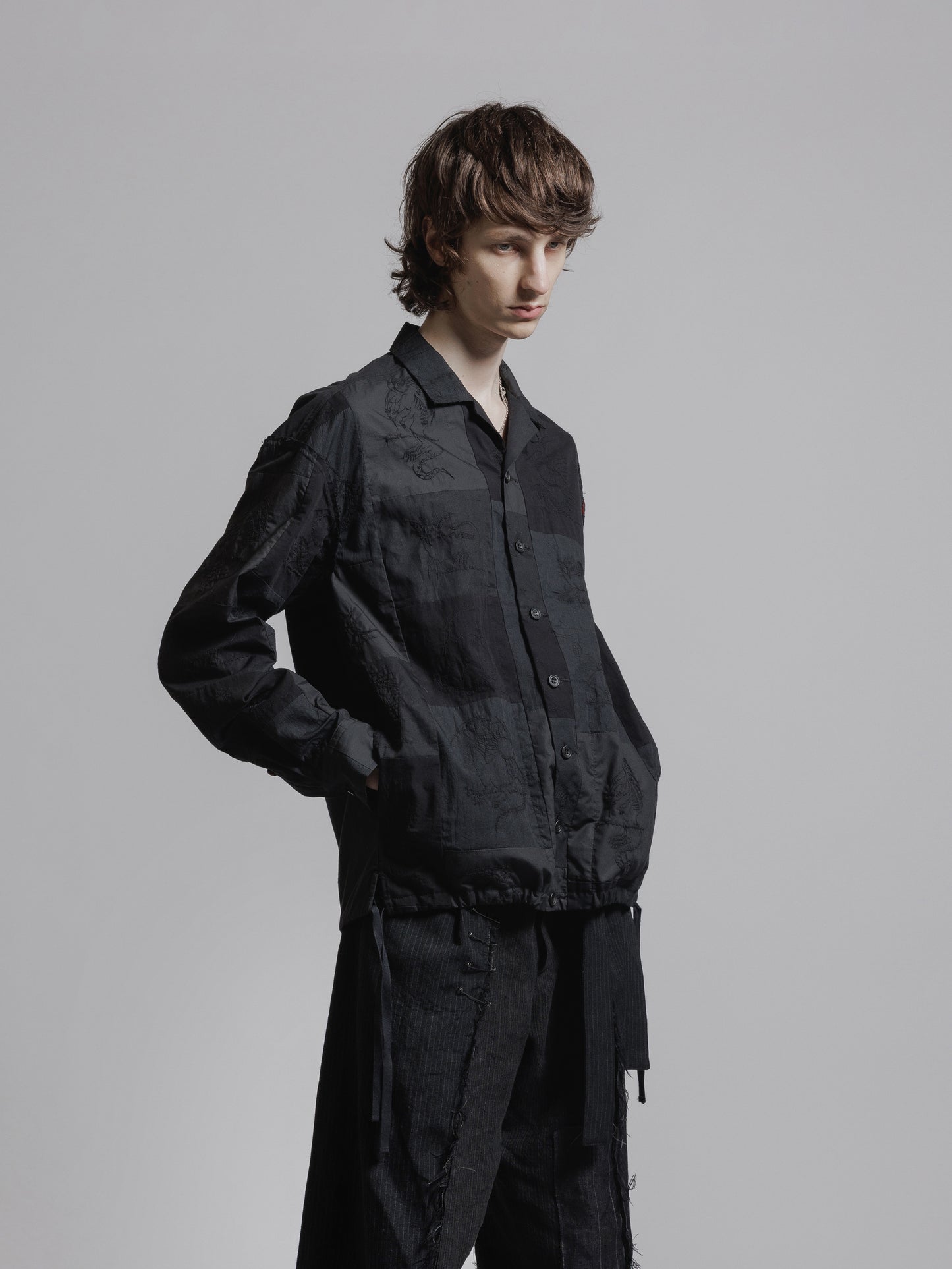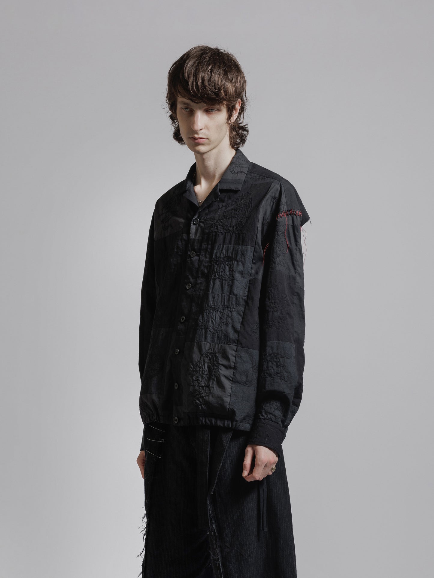 ・キルトのようにパッチワークが施されたシャツジャケット